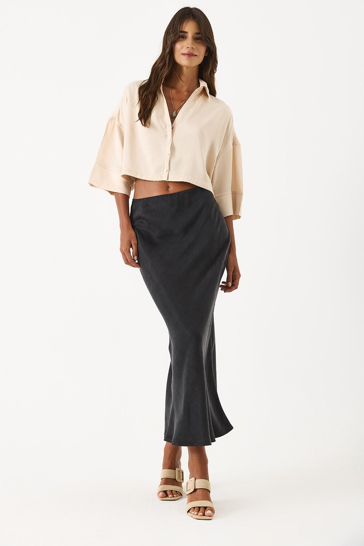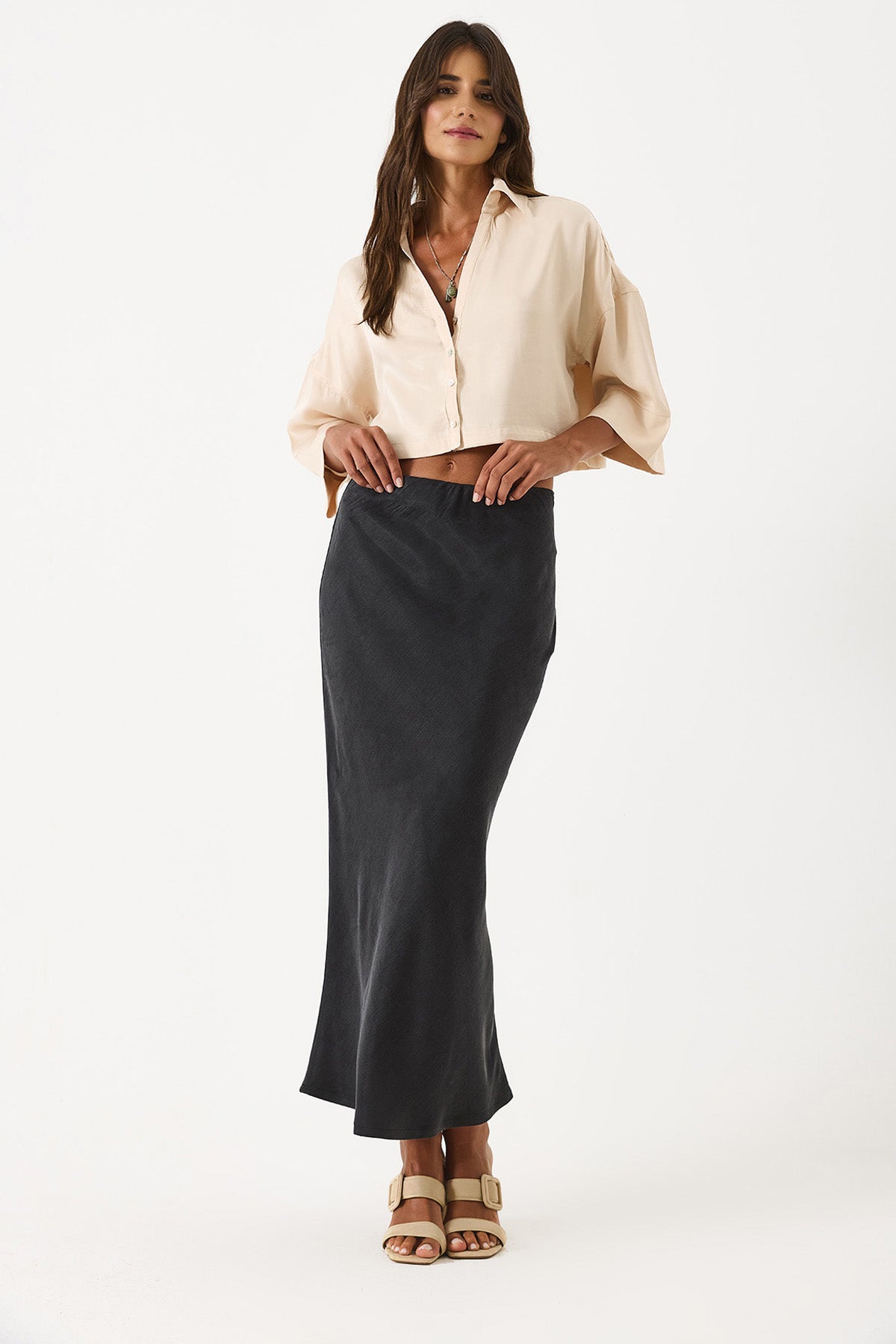 Zarif dokunuşlarla şıklığı yakalayın. Lyocell ve viskon karışımından oluşan bu saten midi etek, %52 viskon ve %48 Lyocell (Tencel)™ içeriği sayesinde yumuşak, akışkan ve hafif bir yapıya sahip. Günlük kullanımdan özel davetlere kadar rahatlıkla tercih edilebilir. Zarif midi boyu ve saten dokusuyla her adımda şıklığı hissettirir. %52 Viskon. %48 Lyocell (Tencel)™. Saten dokulu kumaş. Midi boy. Akışkan ve hafif yapı. Şık ve rahat kalıp