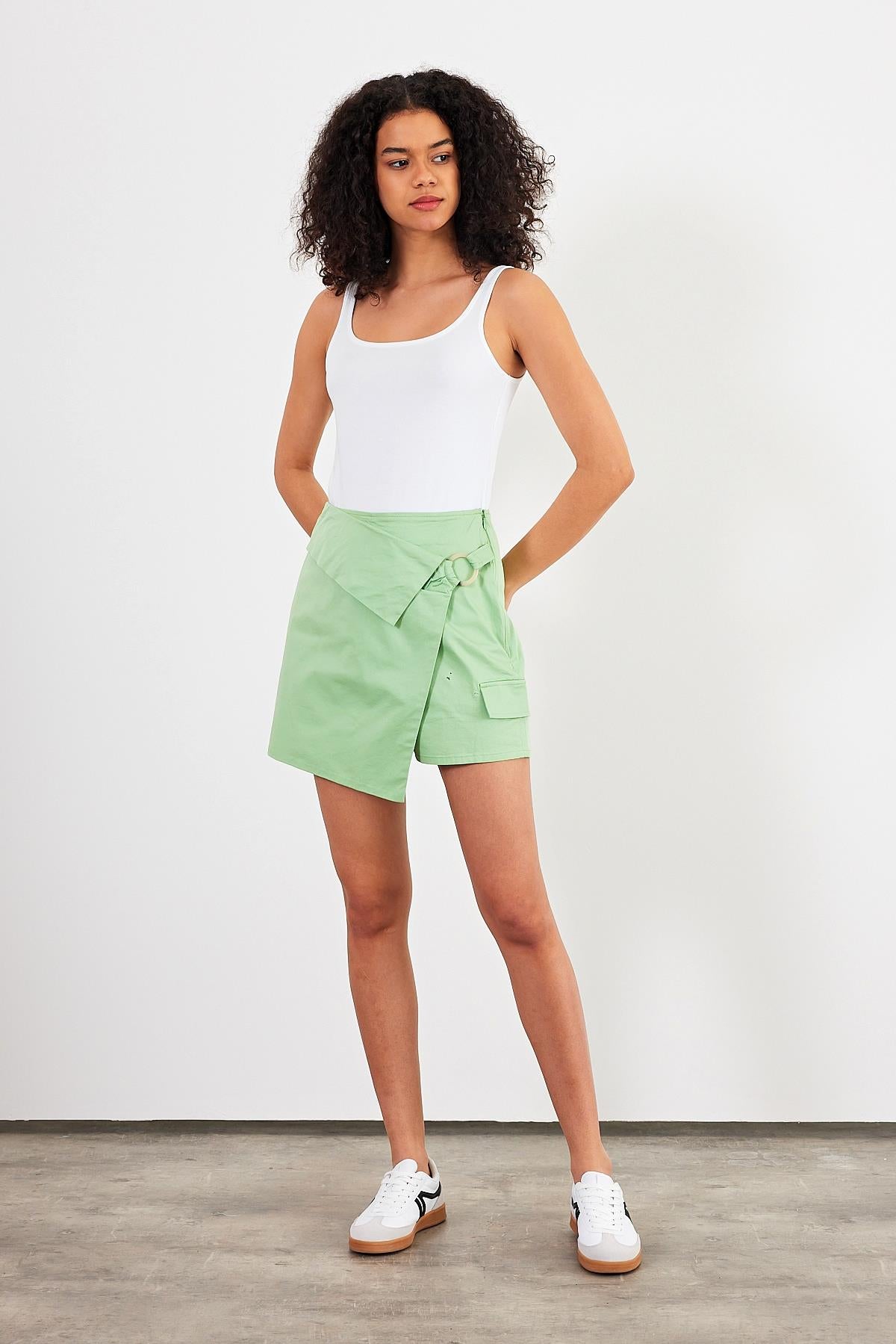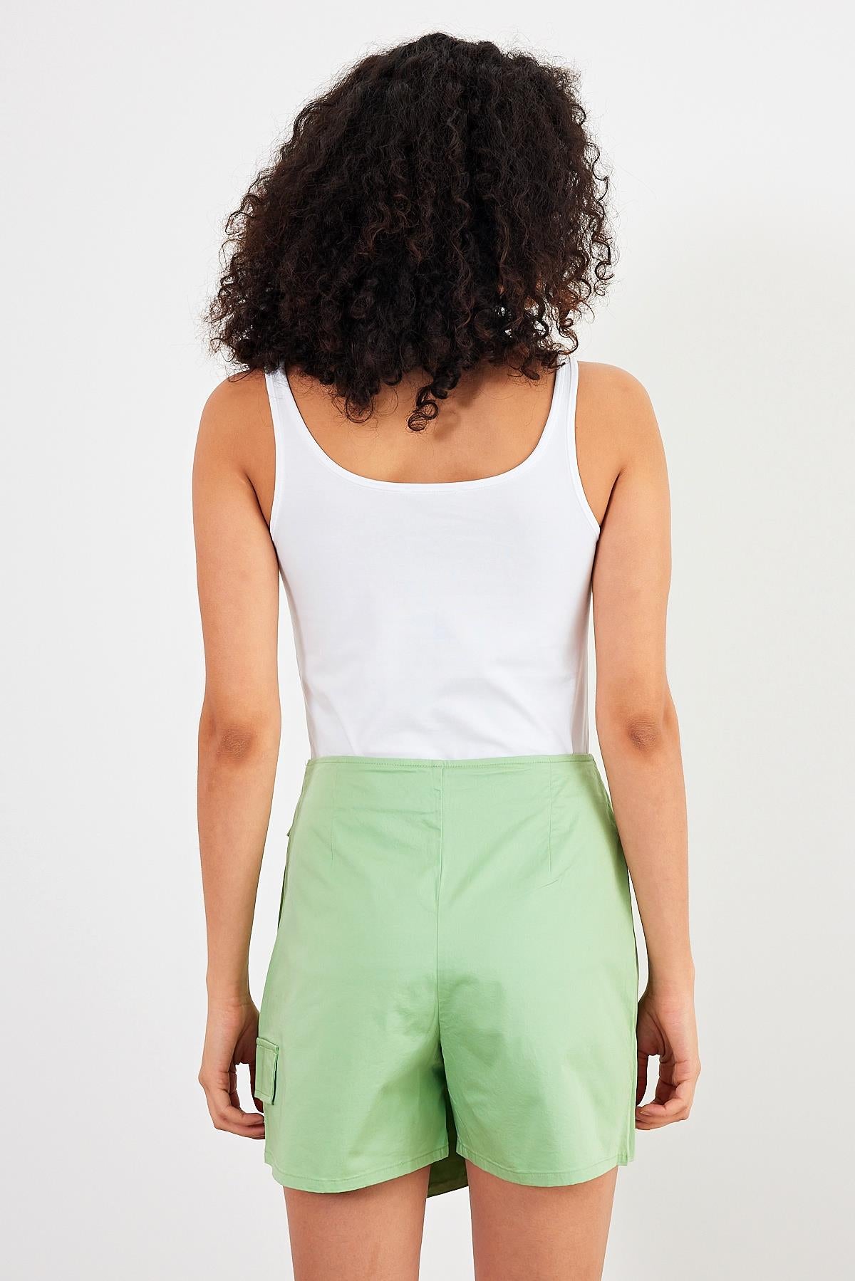 Modelin ölçüleri: Boy: 180 cm, Bel: 61 cm, Göğüs: 80 cm, Kalça: 89 cm. Manken üzerindeki beden: S.