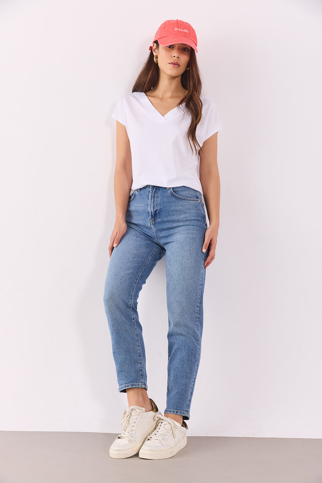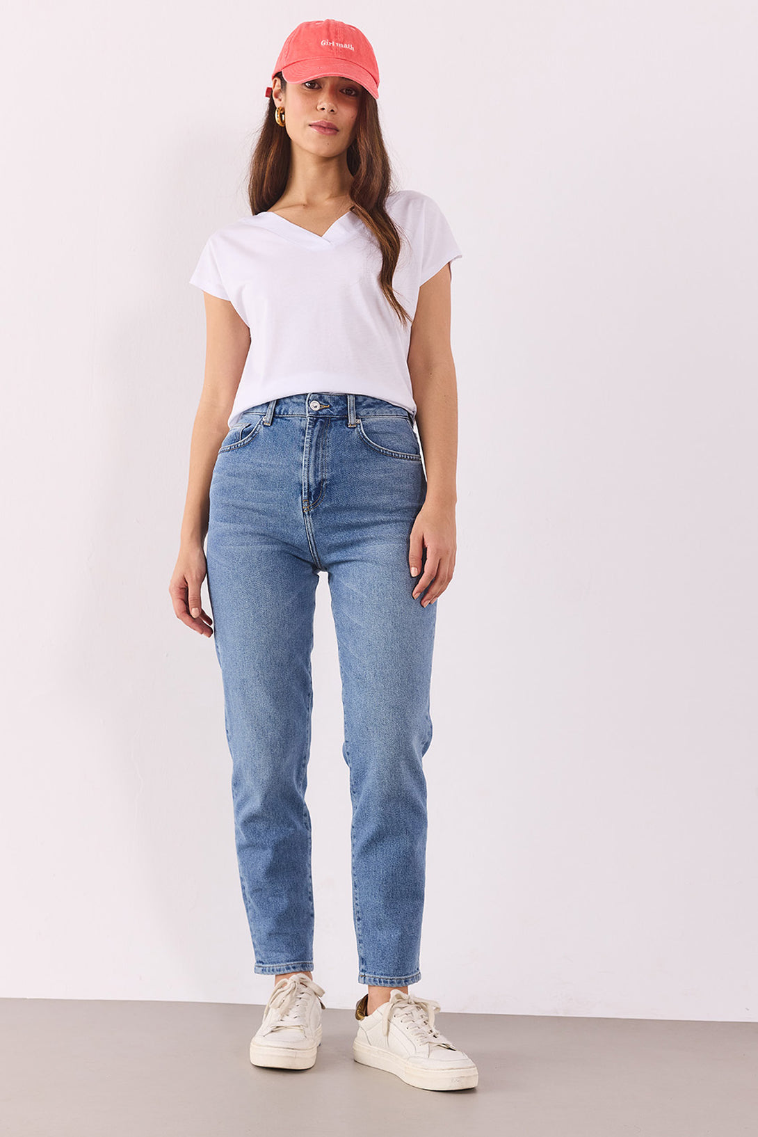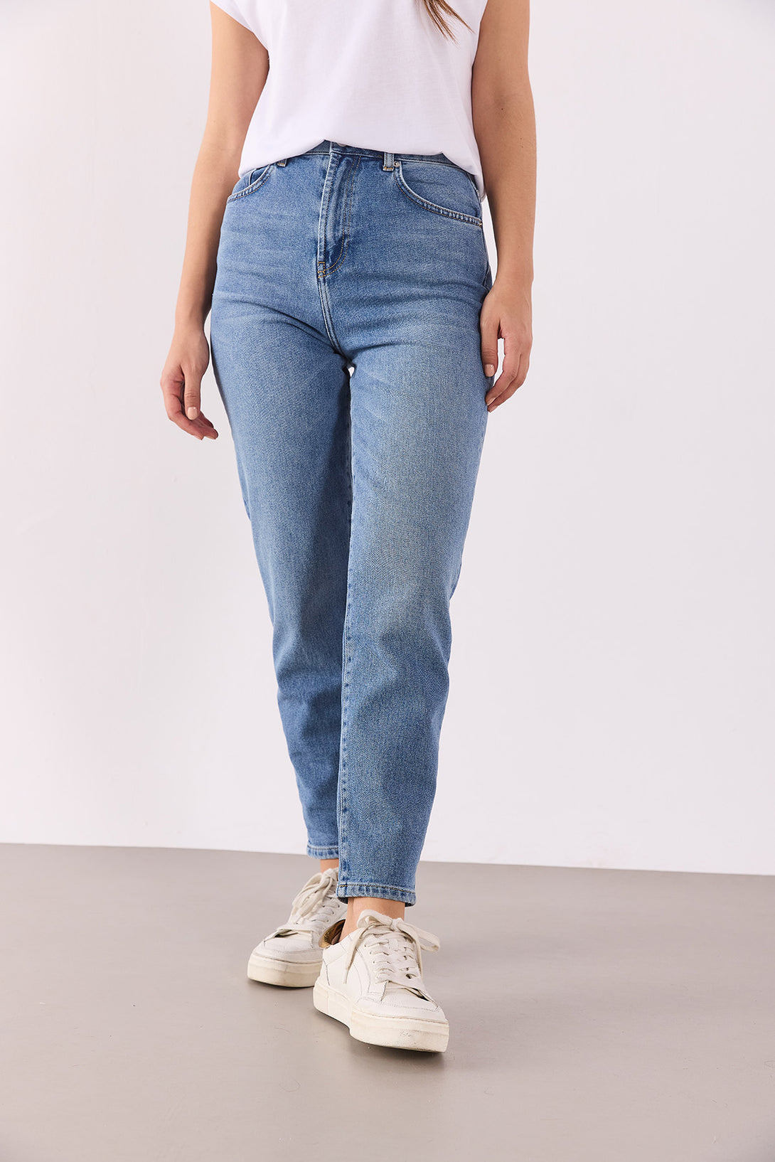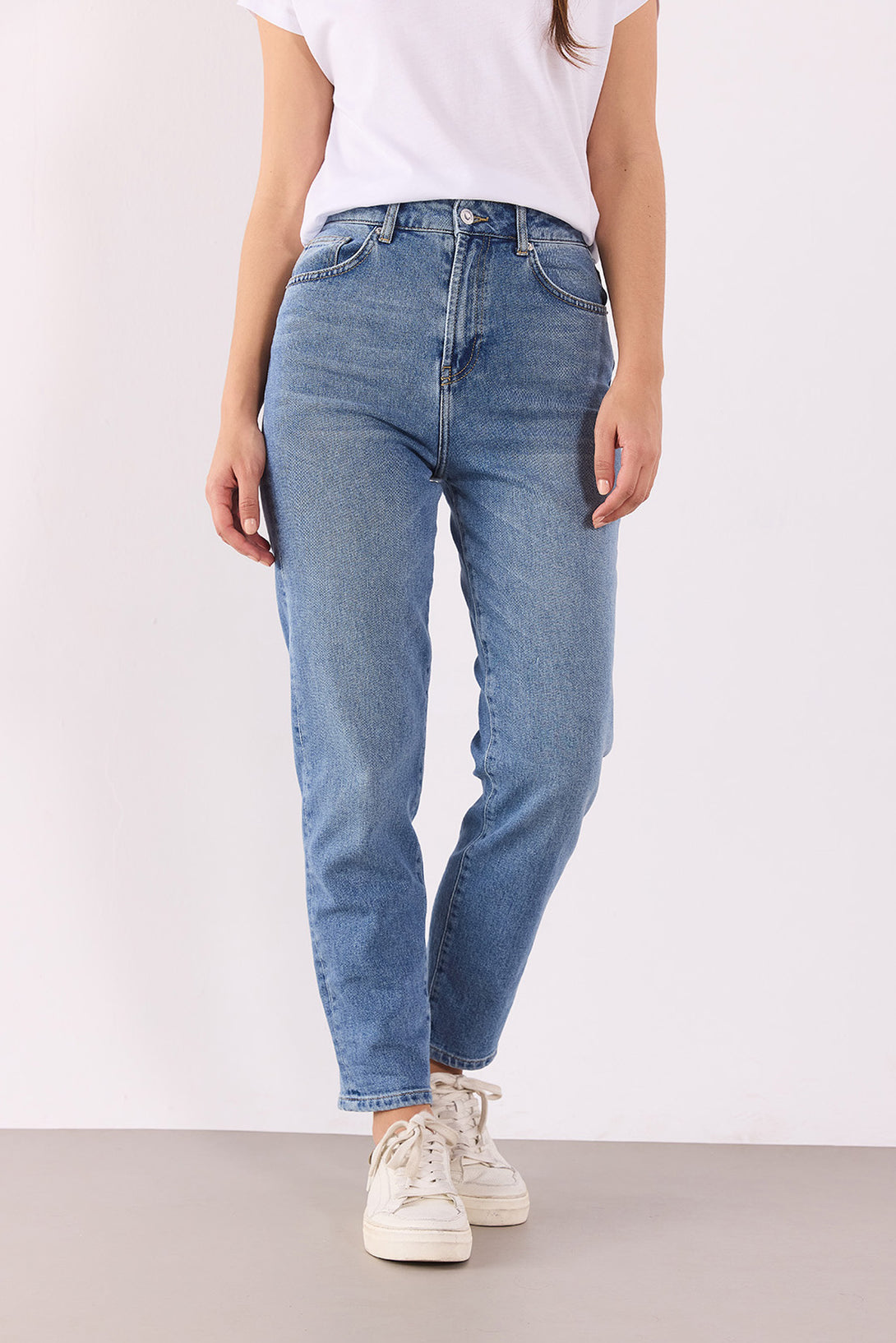 Maria Med Blue Slim Mom Jean Pantolon - MED BLUE