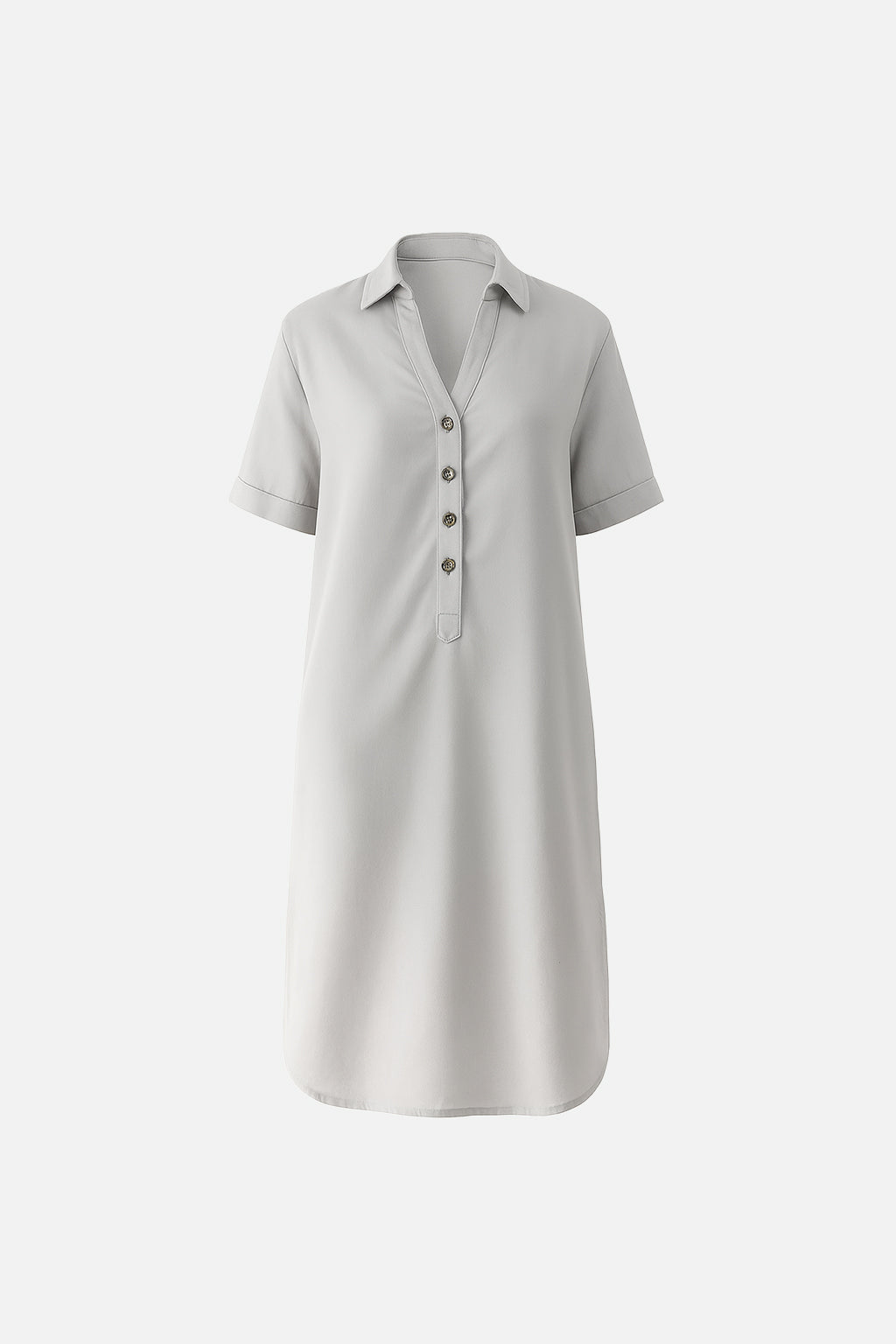 Kadın Marissa Önü Düğmeli Kısa Kollu Keten Elbise (TENCEL)™ - Gri