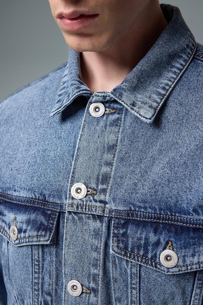 Erkek Mark Oversize Geniş Kesim Med Blue Jean Ceket %100 Pamuk - Med Blue