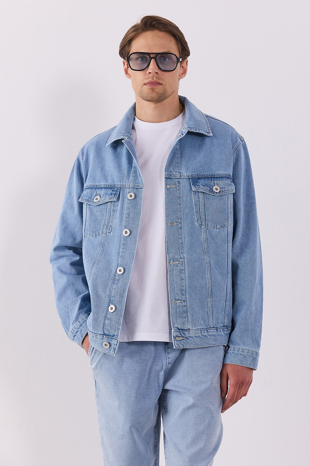 Mark Sky Blue Oversize Geniş Kesim Jean Ceket - SKY BLUE