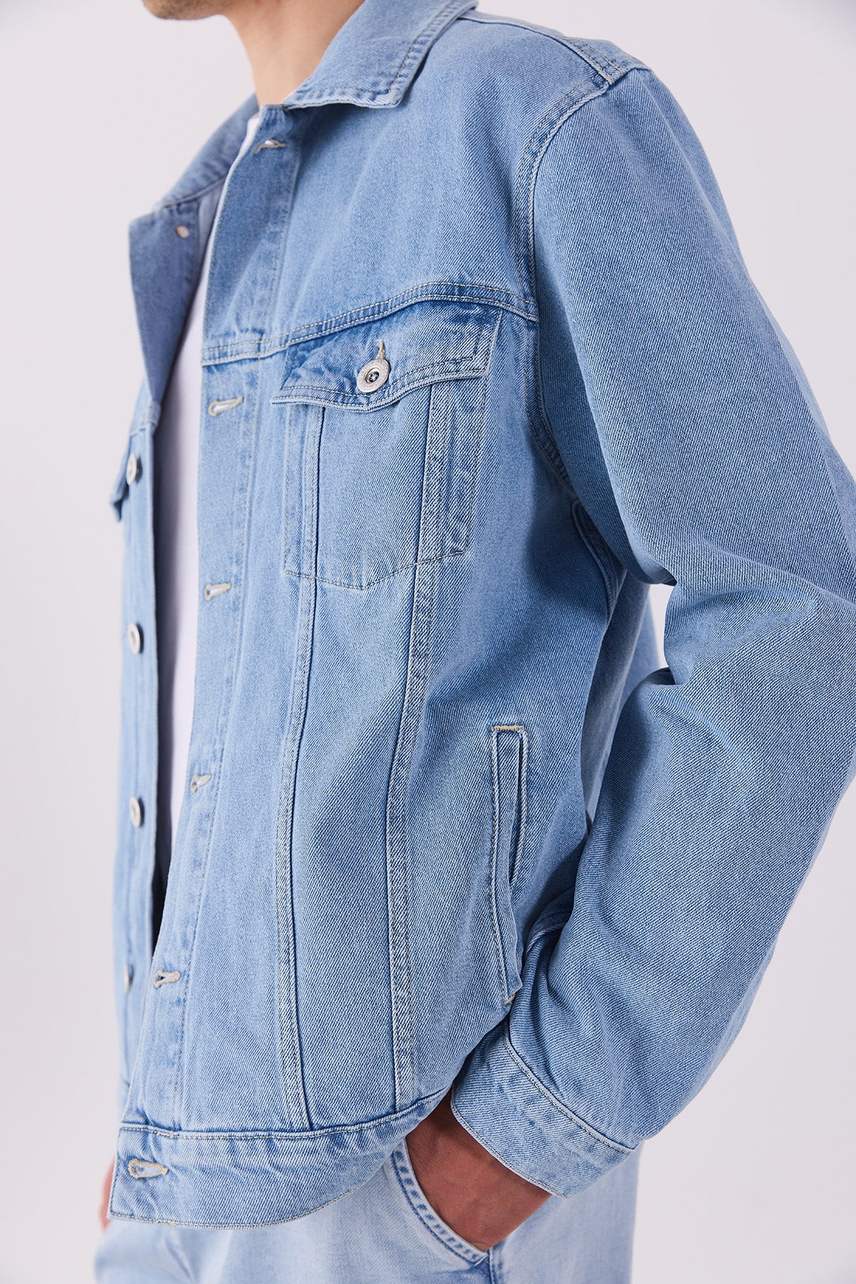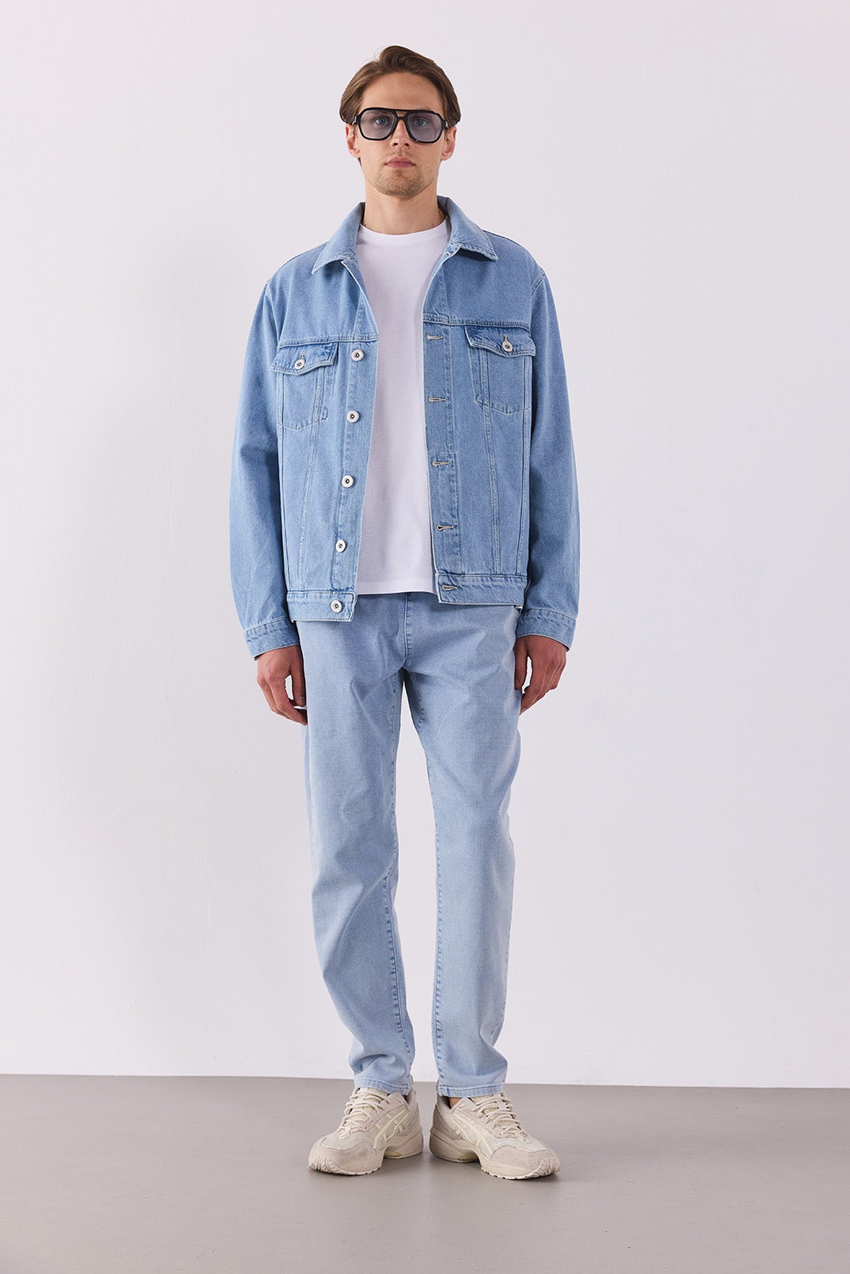 Erkek Mark Sky Blue Oversize Geniş Kesim Jean Ceket %100 Pamuk - Sky Blue