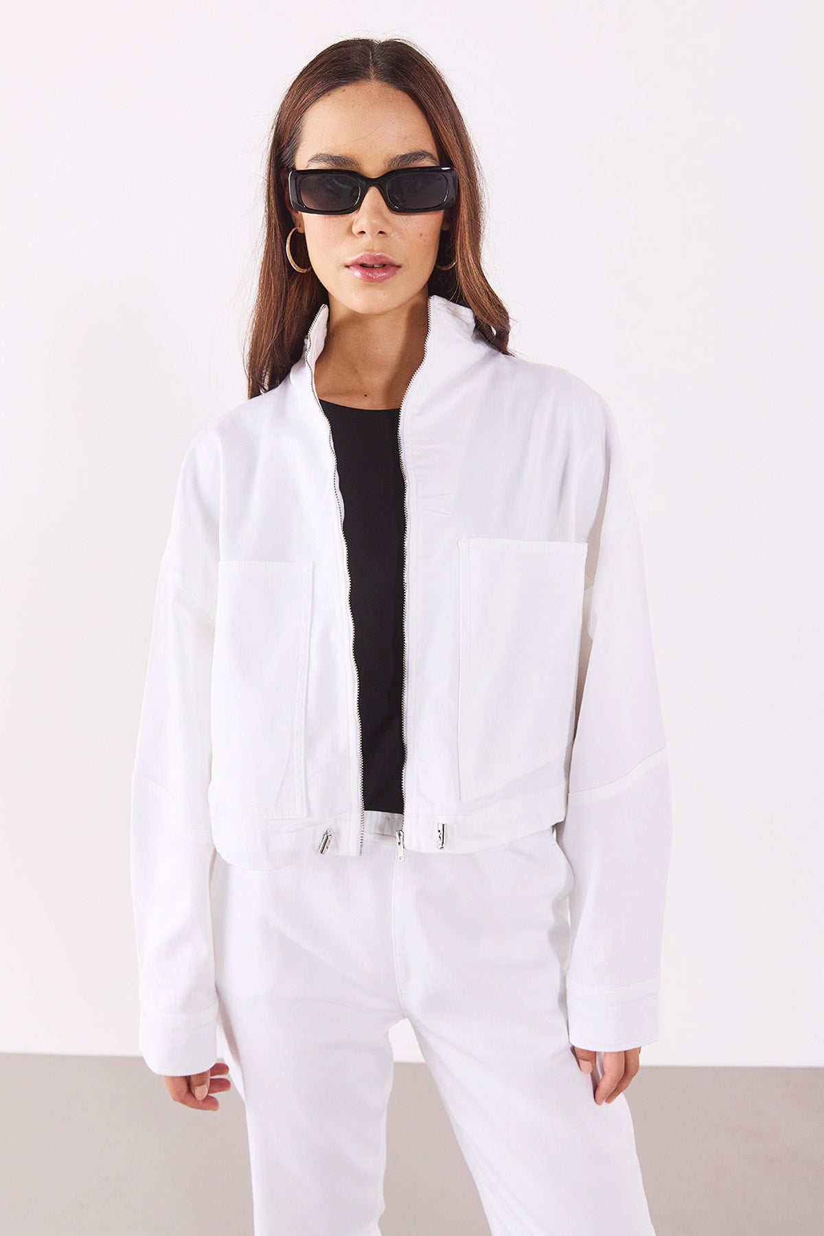 Kadın Marla Renkli Oversize Geniş Kesim Jean Ceket - Beyaz