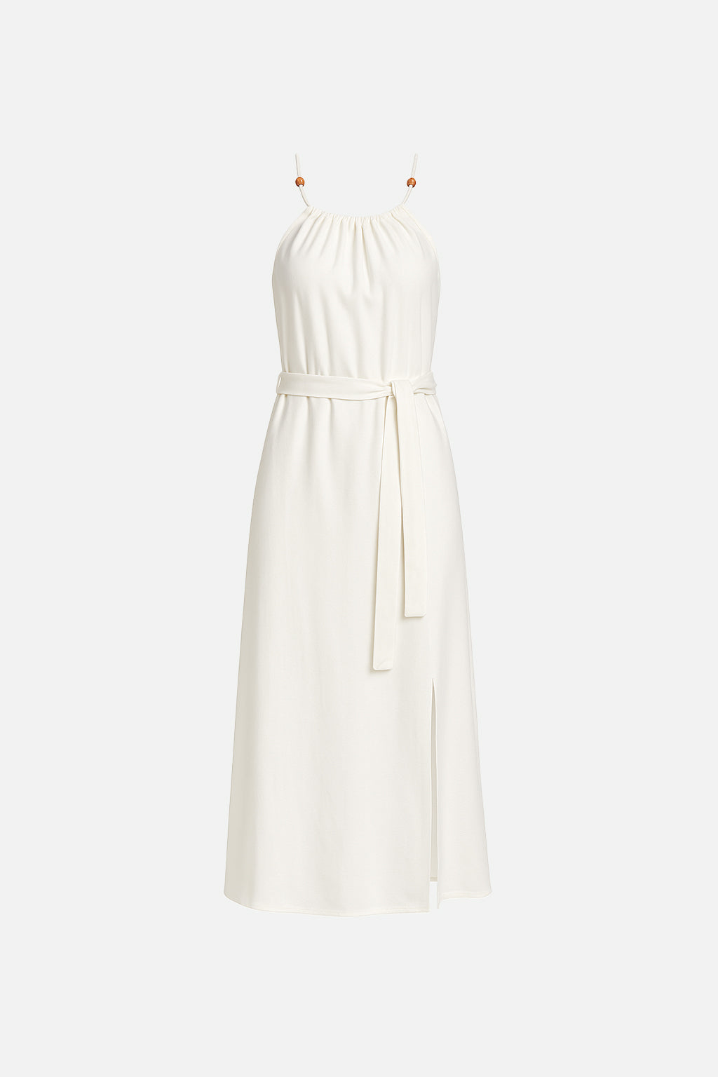 Kadın Marmaris Boncuk Askılı Saten Elbise %100 Viskon - Fildişi