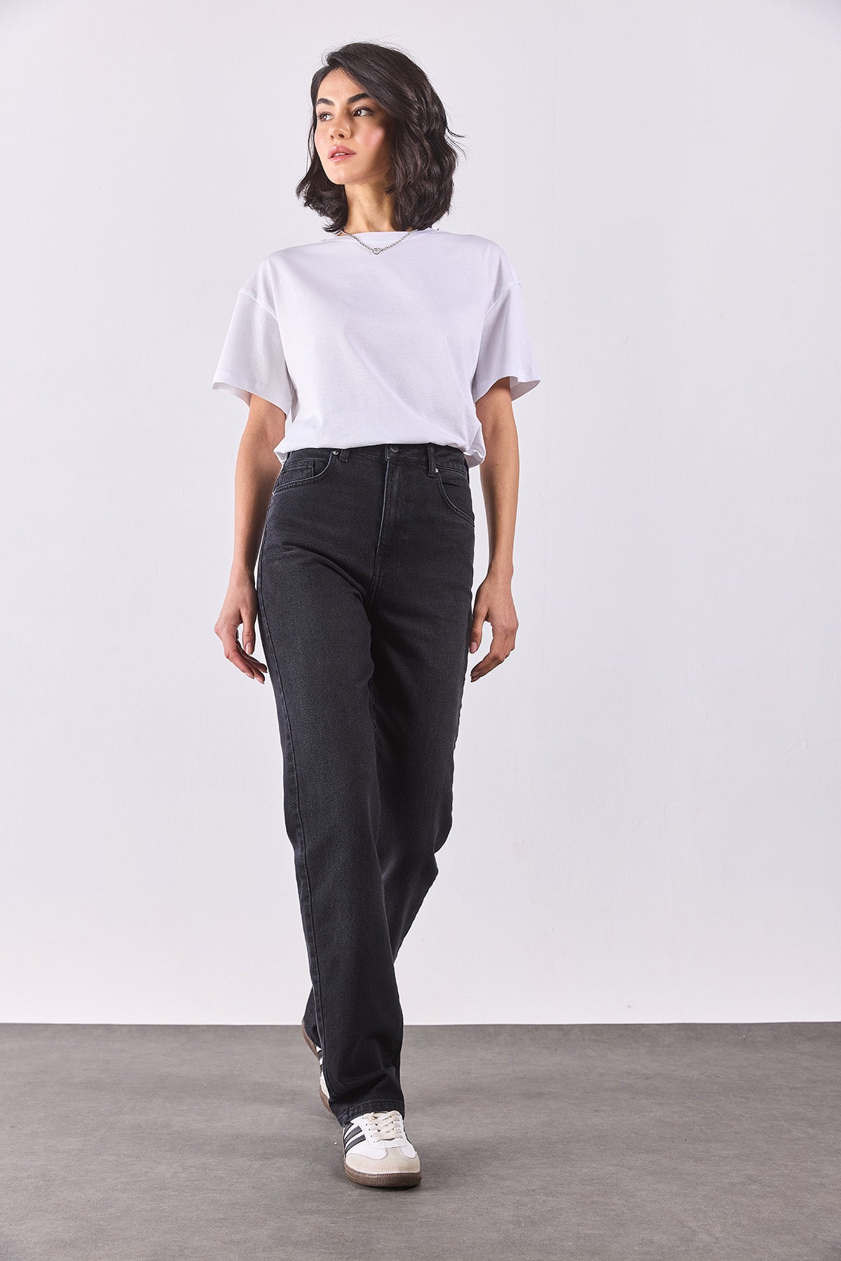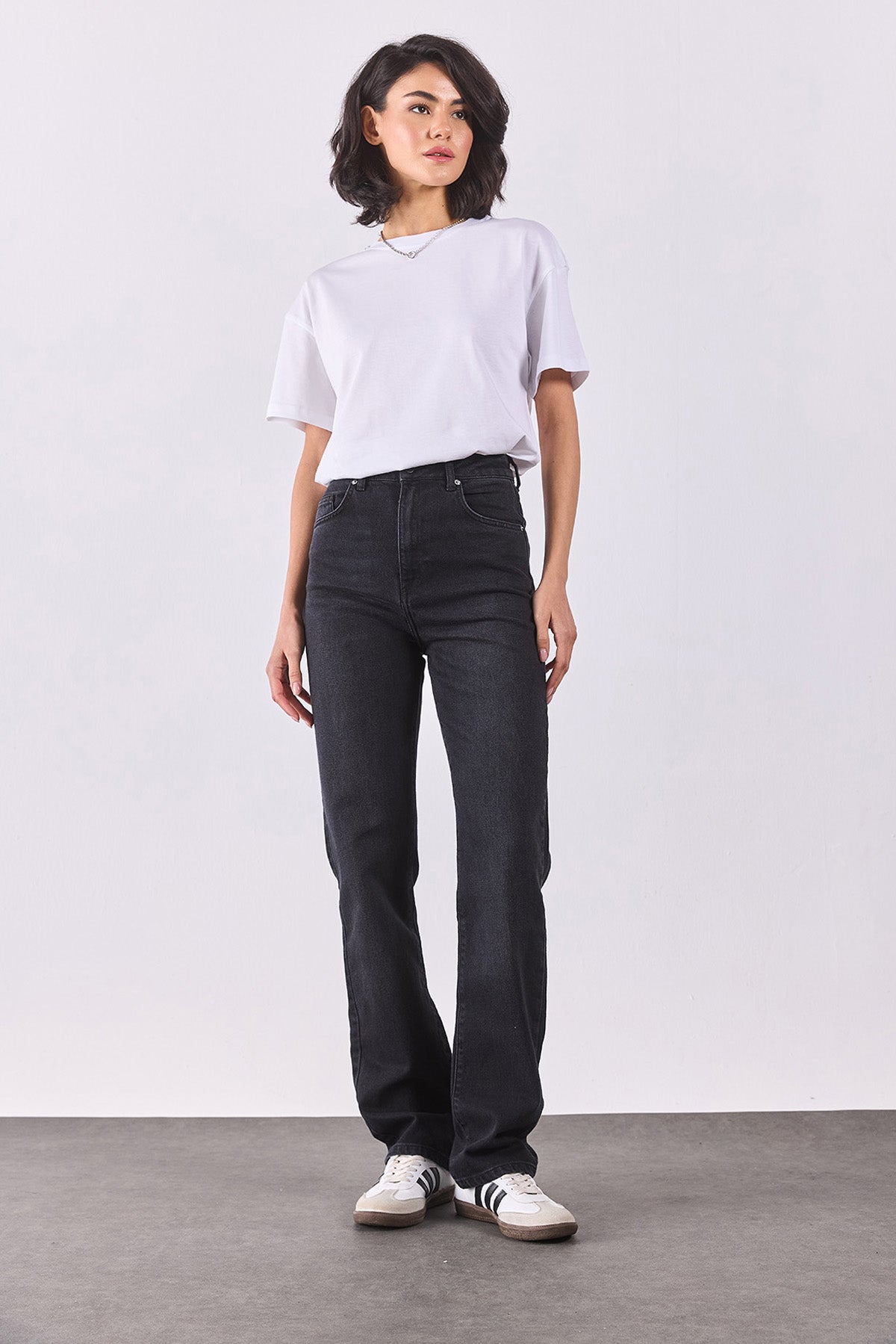 Kadın Marrakesh Black Yüksek Bel Straight Fit Jean Pantolon - Black