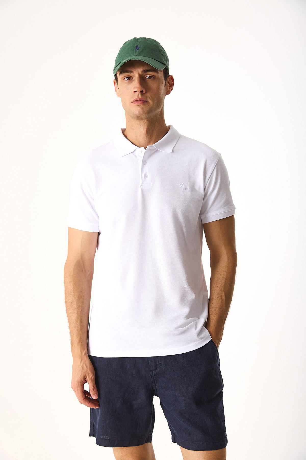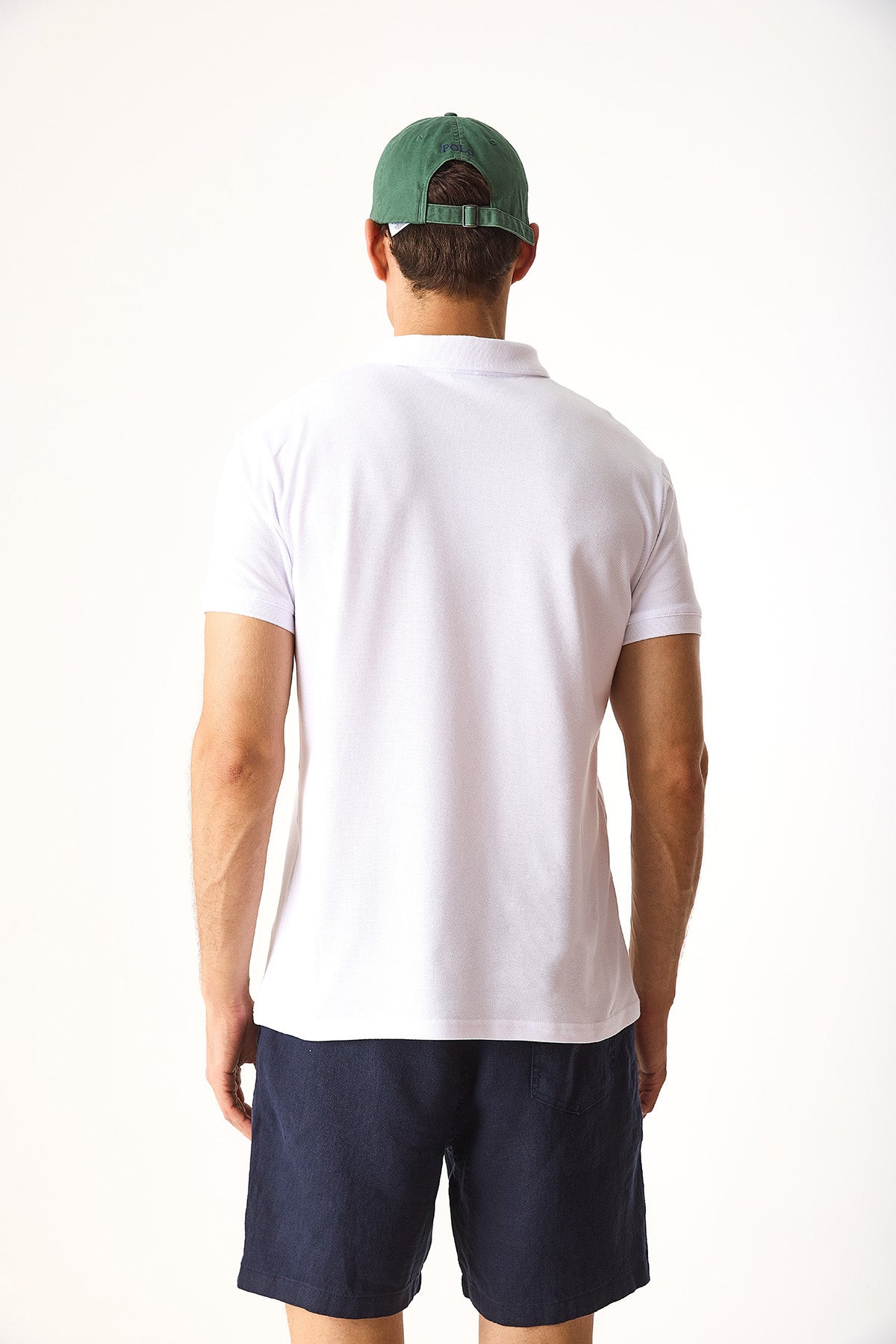 Erkek Martin Slim Fit Polo Yakalı Pike Tişört - Beyaz