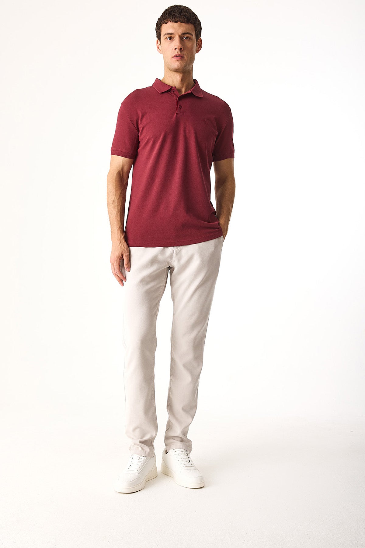 Erkek Martin Slim Fit Polo Yakalı Pike Tişört - Bordo