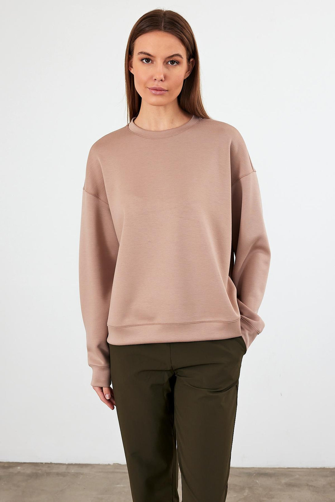 Mary bisiklet yaka, yumuşak dokulu, basic cupro kumaş sweatshirt.