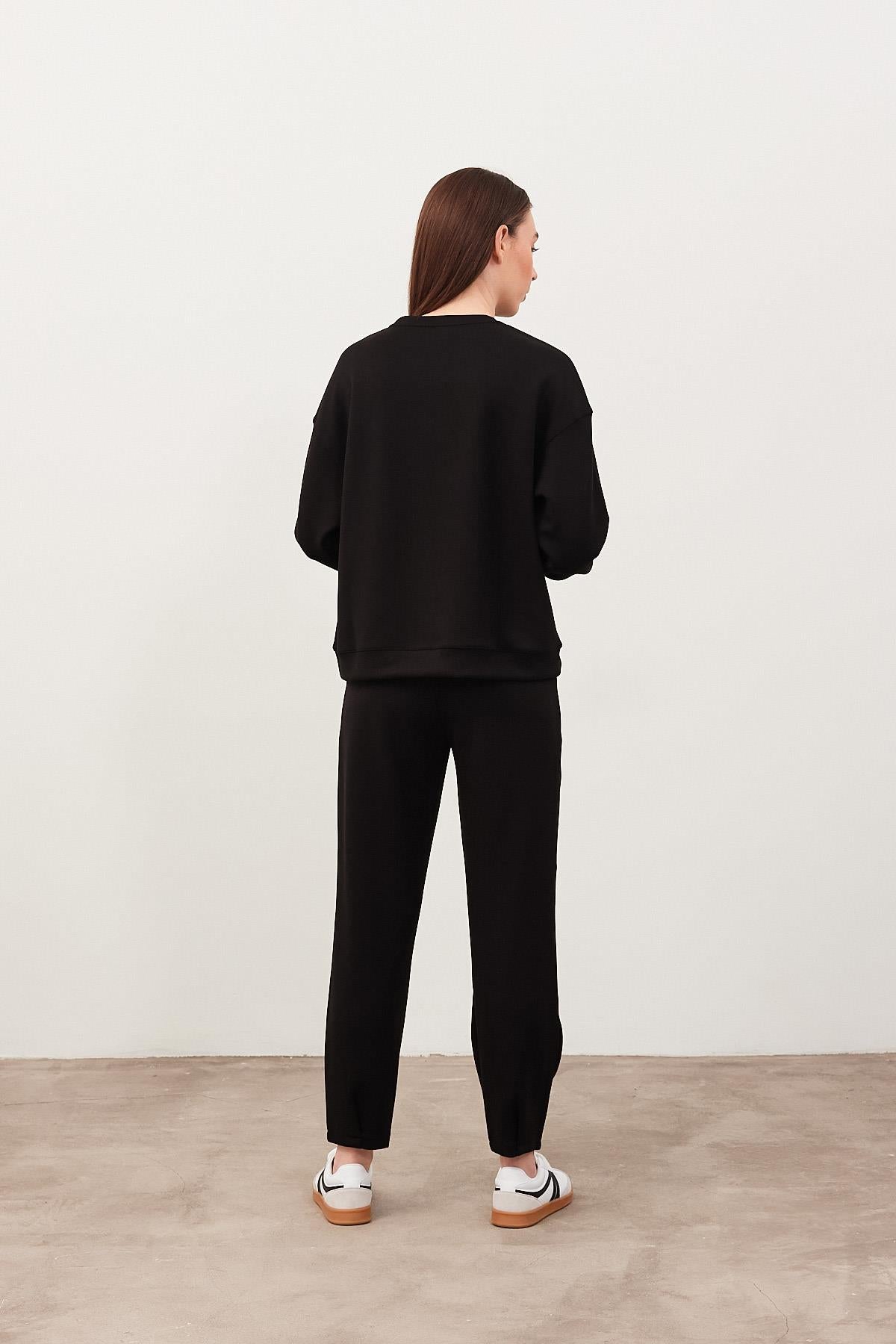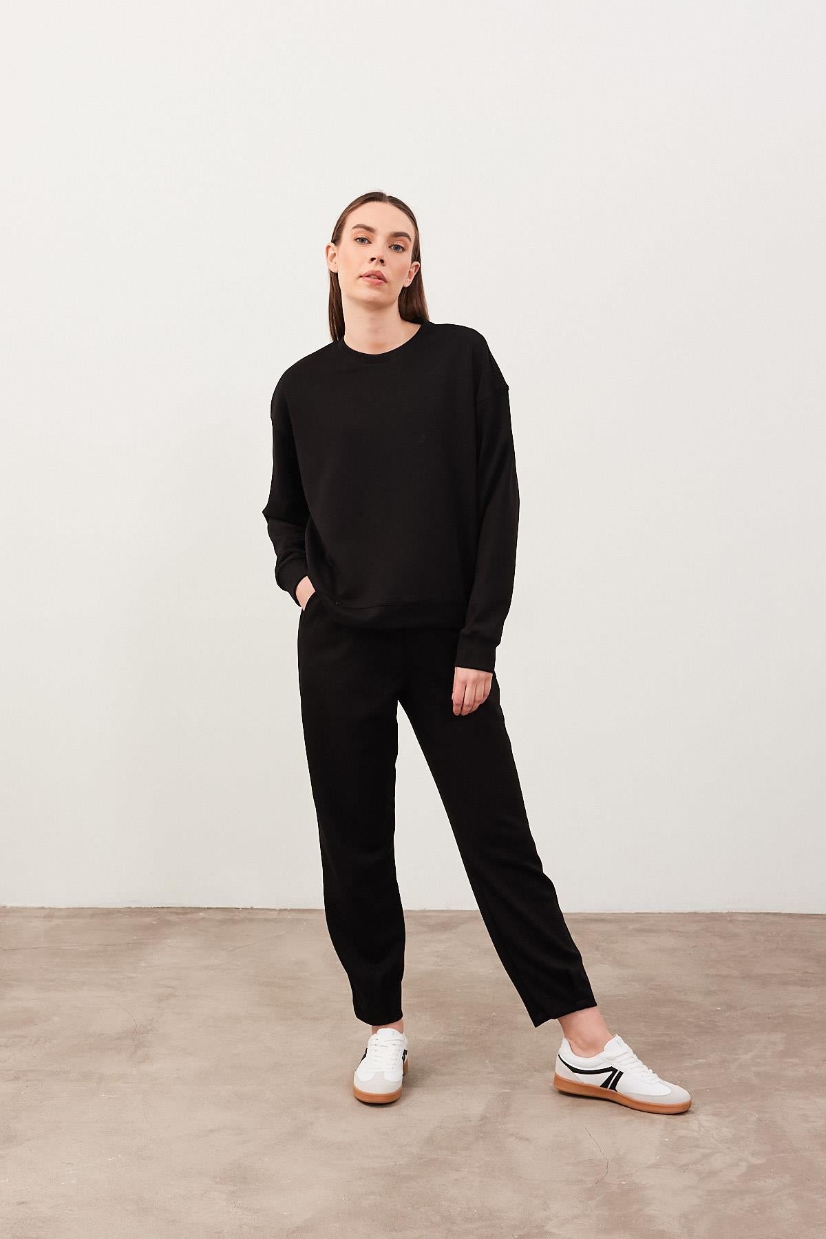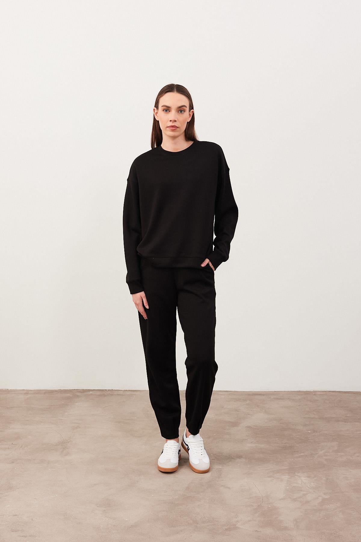 Kadın Mary Bisiklet Yaka Yumuşak Dokulu Basic Sweatshirt (CUPRO) - Siyah