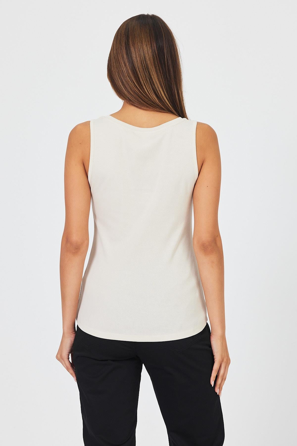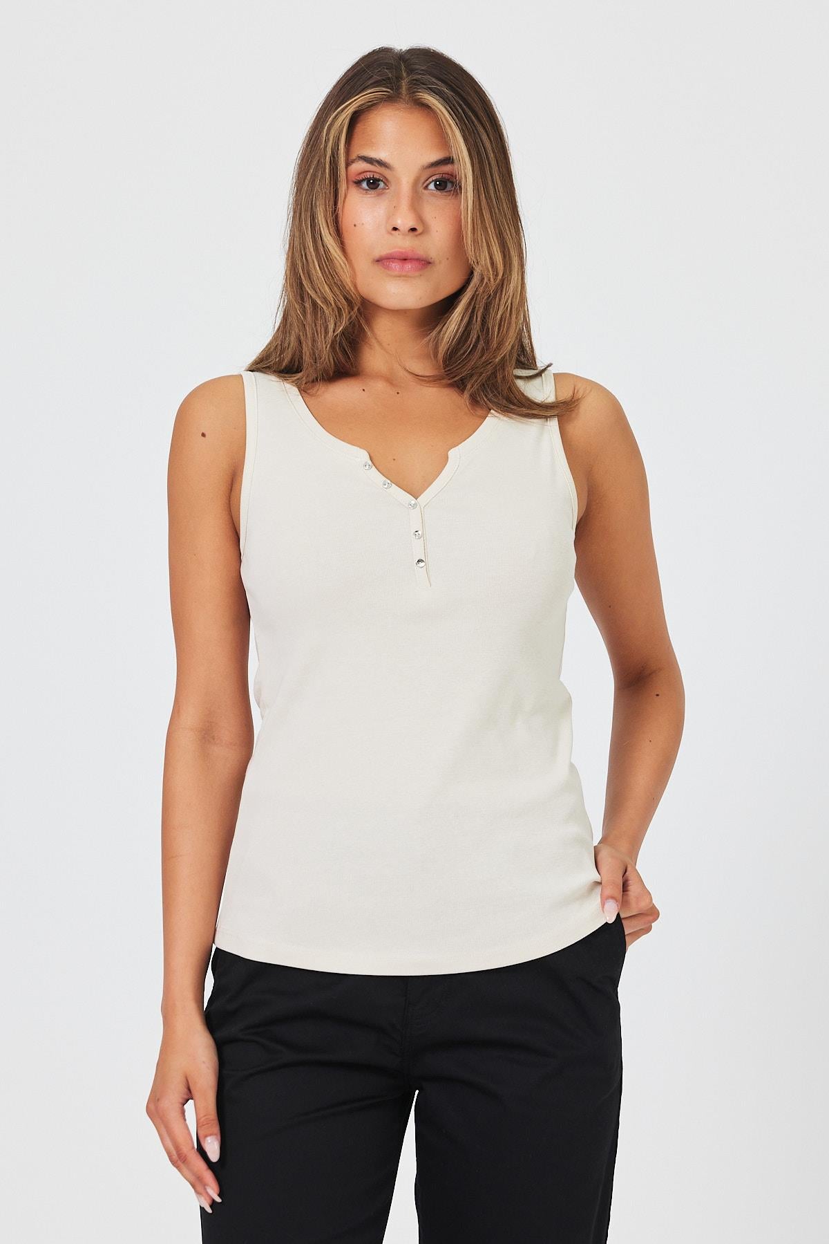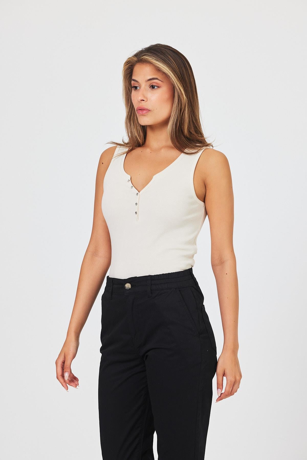 Kadın Matilda Düğme Detaylı Vücuda Oturan Atlet %100 Pamuk - Bej