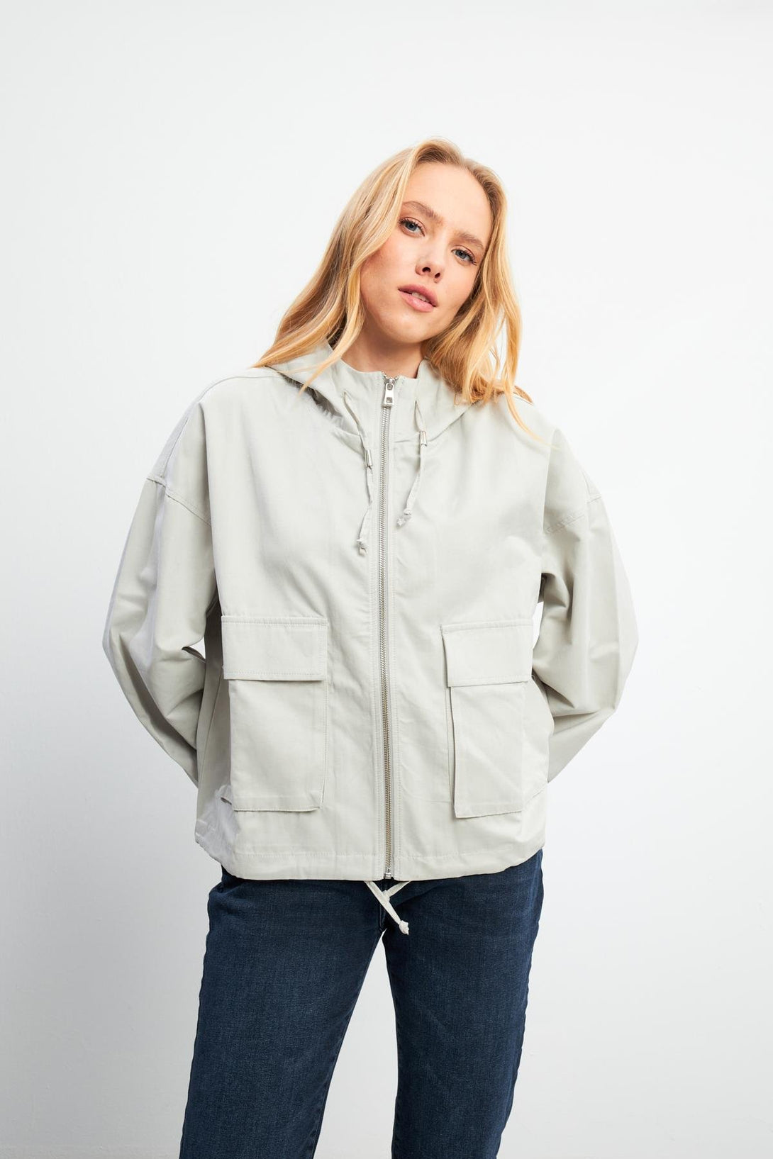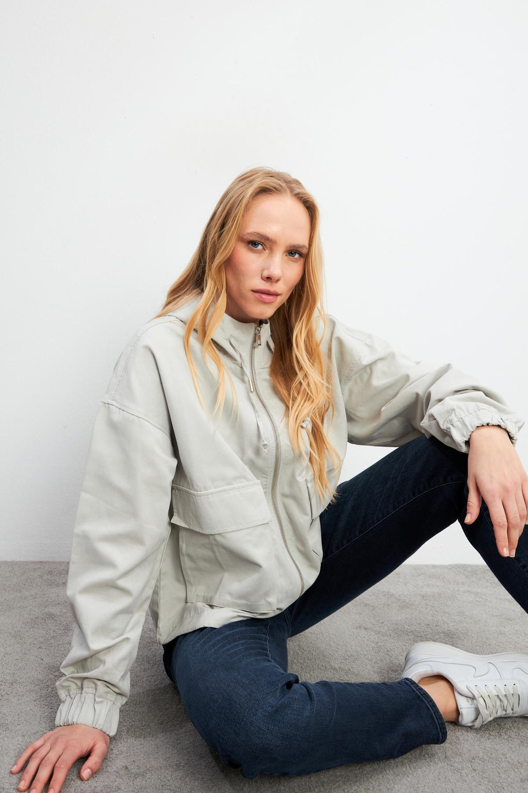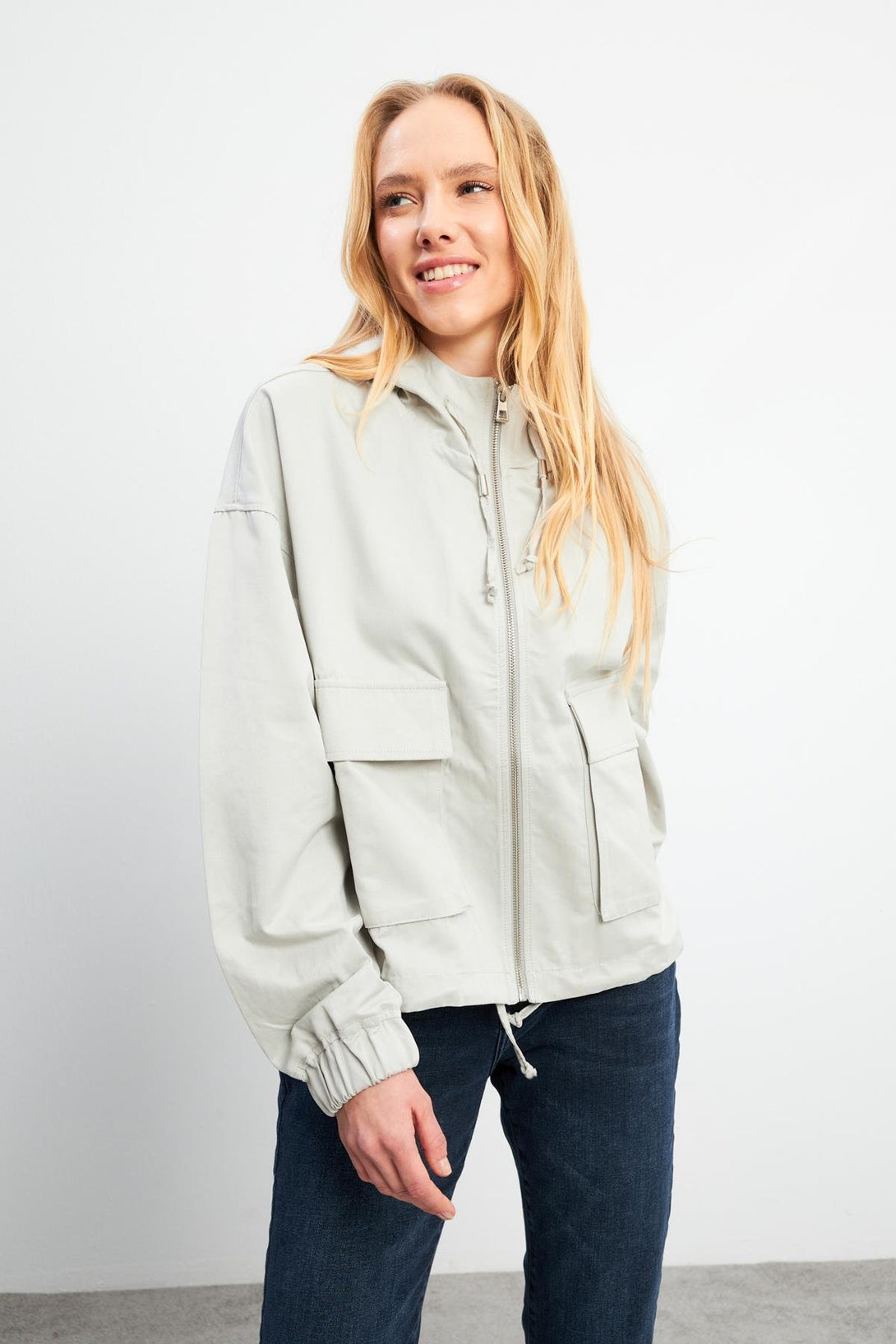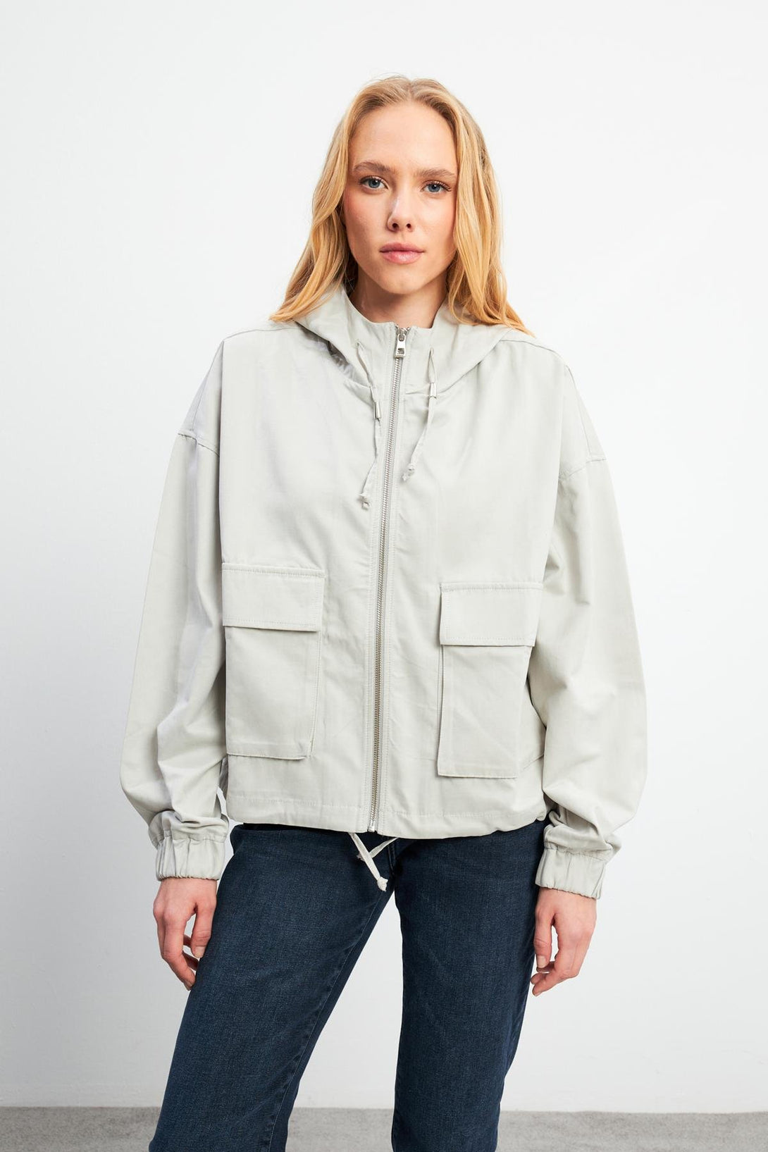 Kadın Meggy Buz Gri Kapüşonlu Rüzgarlık Ceket - 8788G-422
