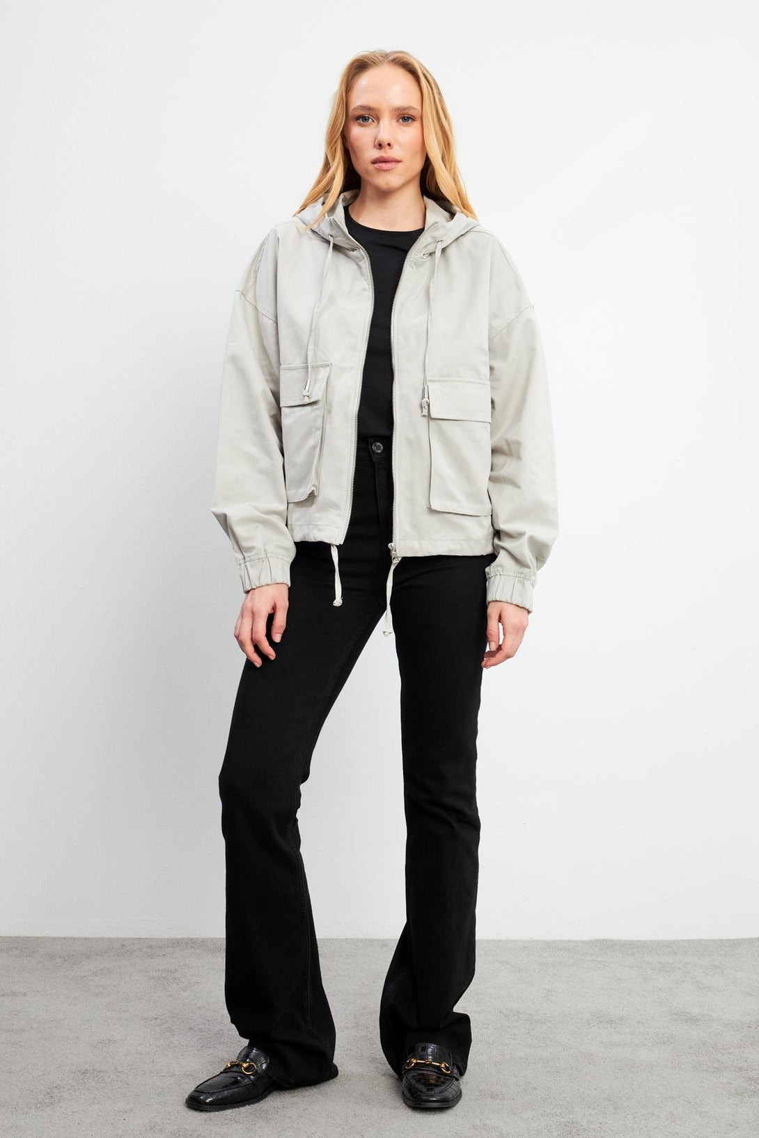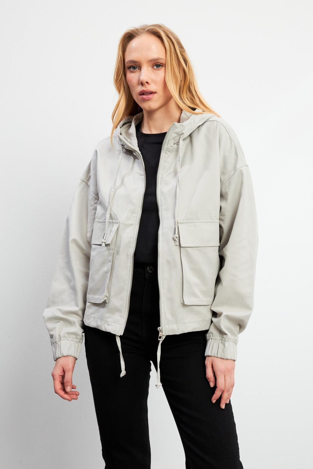 Kadın Meggy Kapüşonlu Rüzgarlık Ceket - Gri
