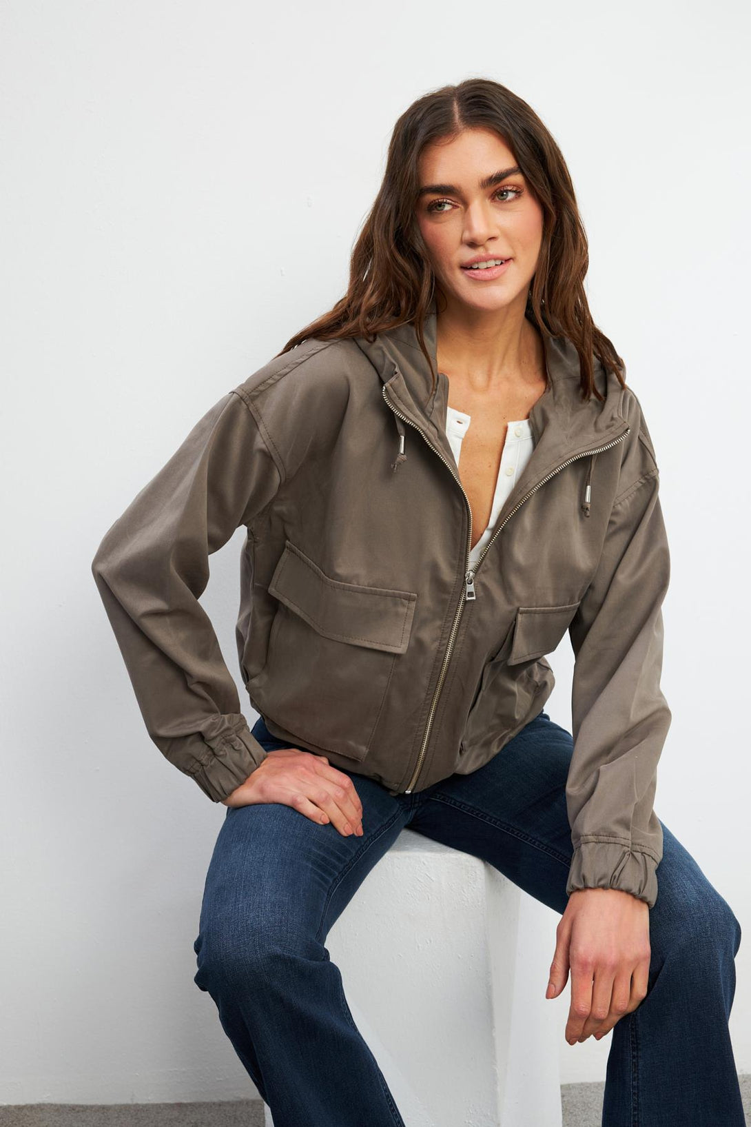 Kadın Meggy Kapüşonlu Rüzgarlık Ceket - Haki