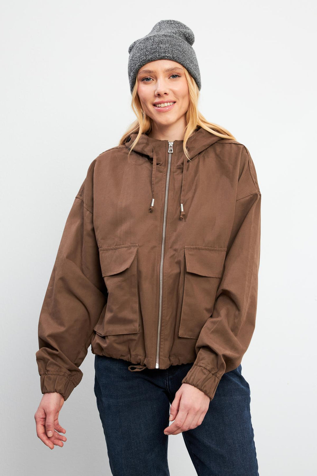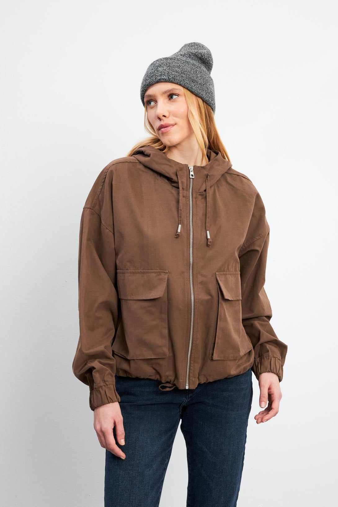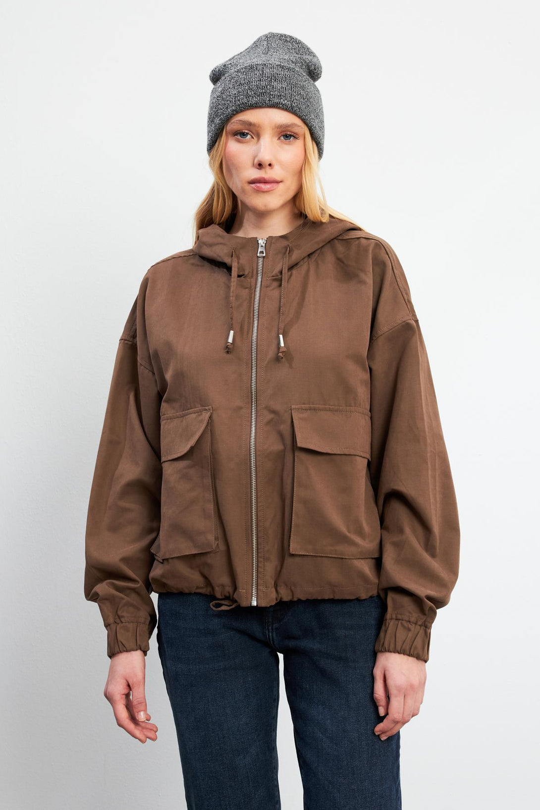 Kadın Meggy Kapüşonlu Rüzgarlık Ceket - Kahve