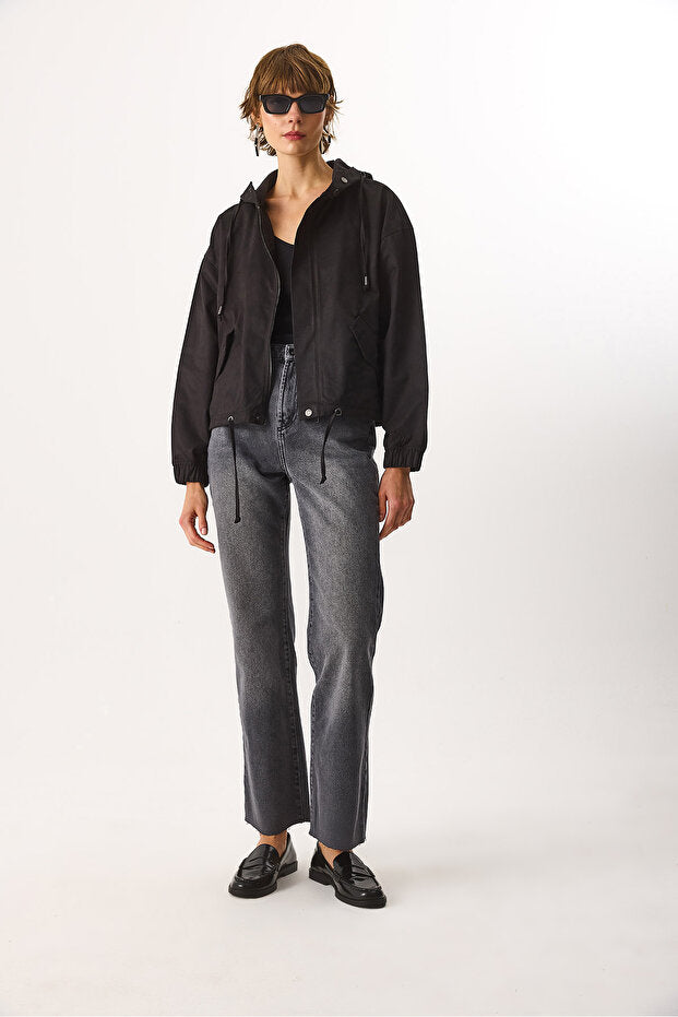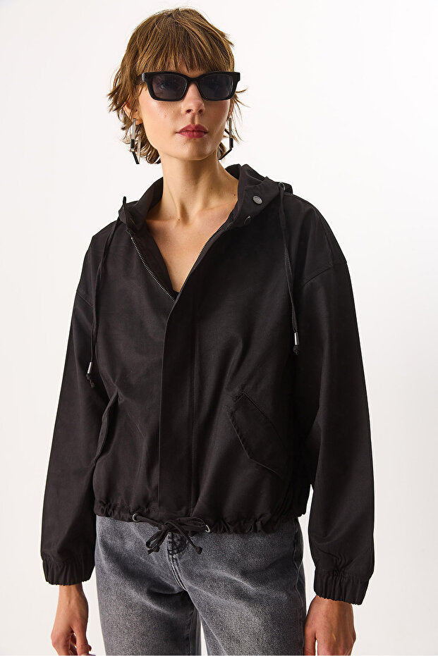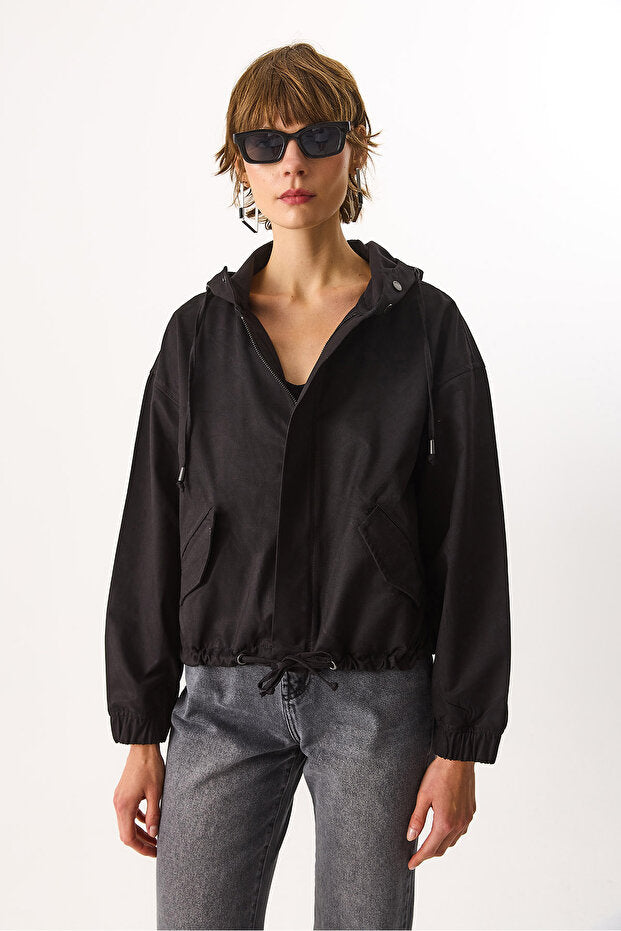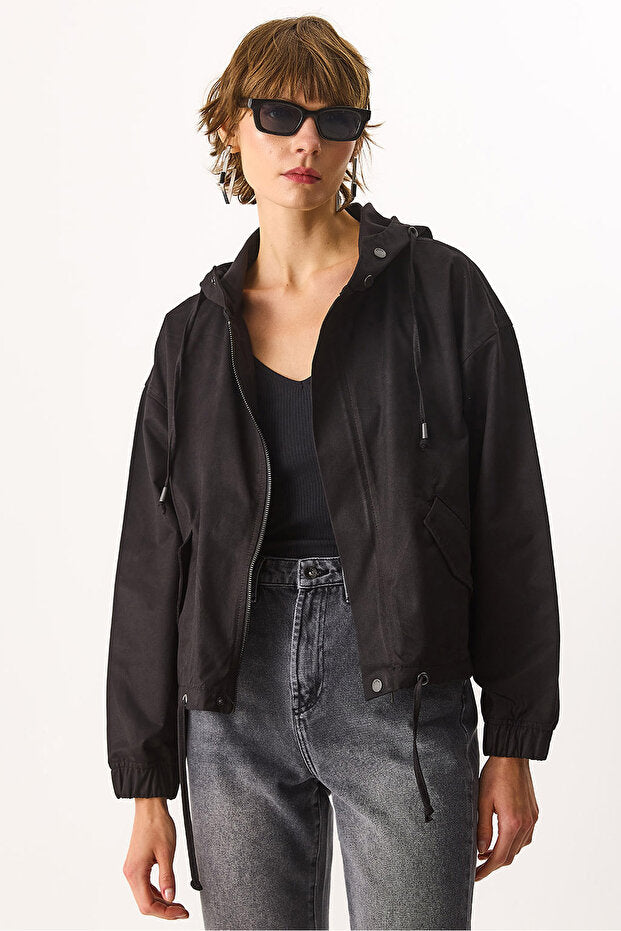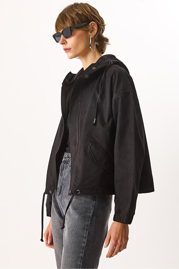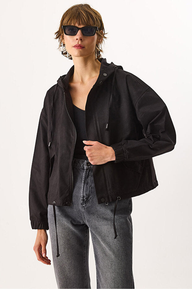 Kadın Meggy Kapüşonlu Rüzgarlık Ceket - Siyah