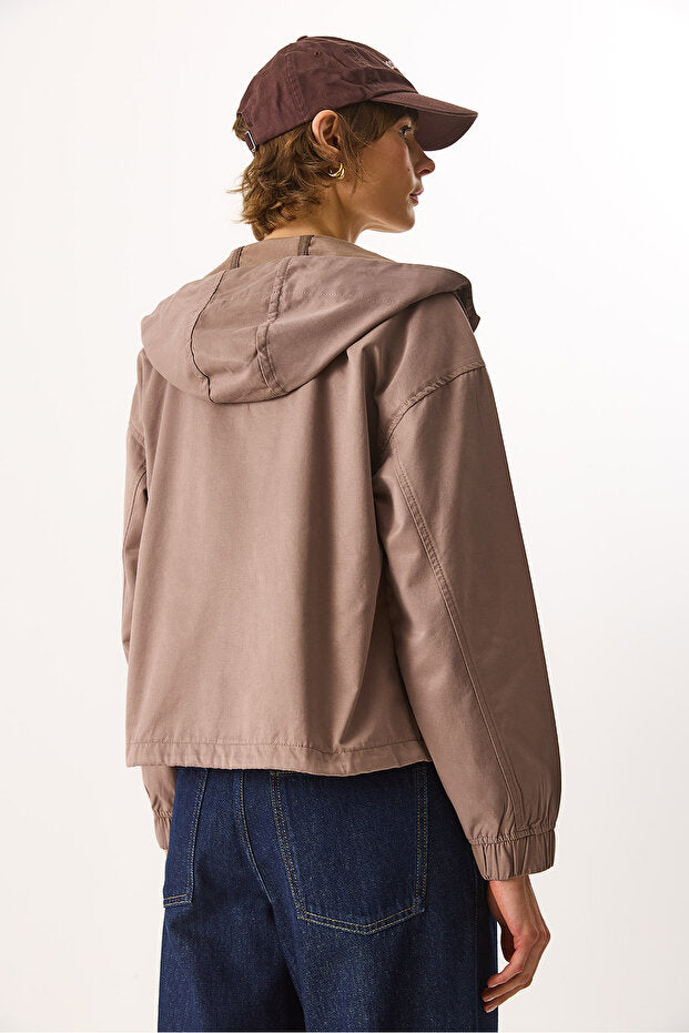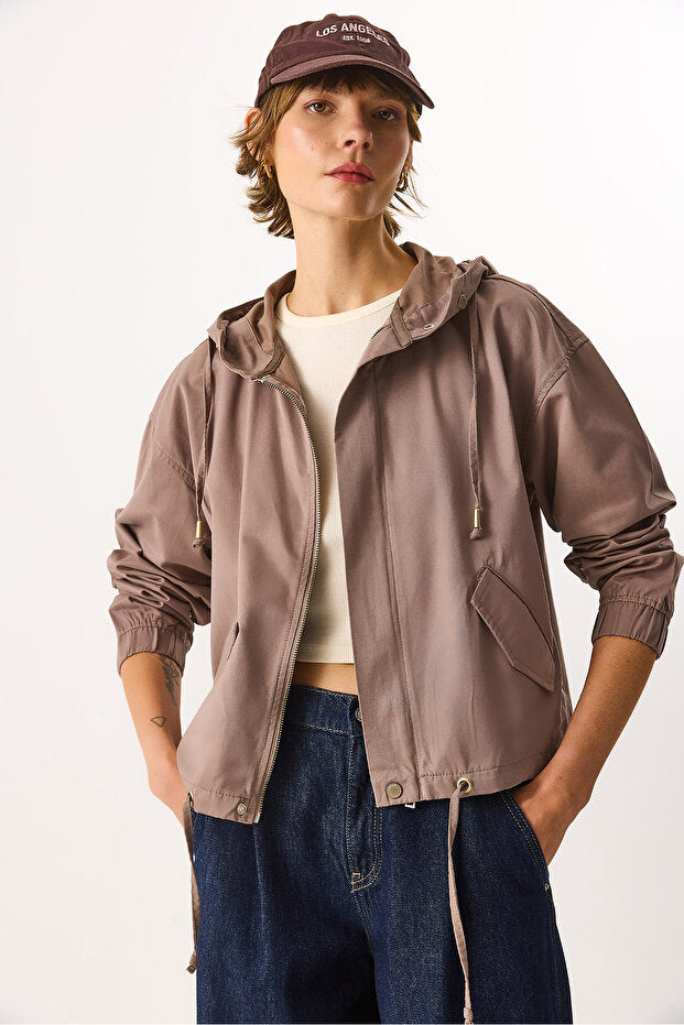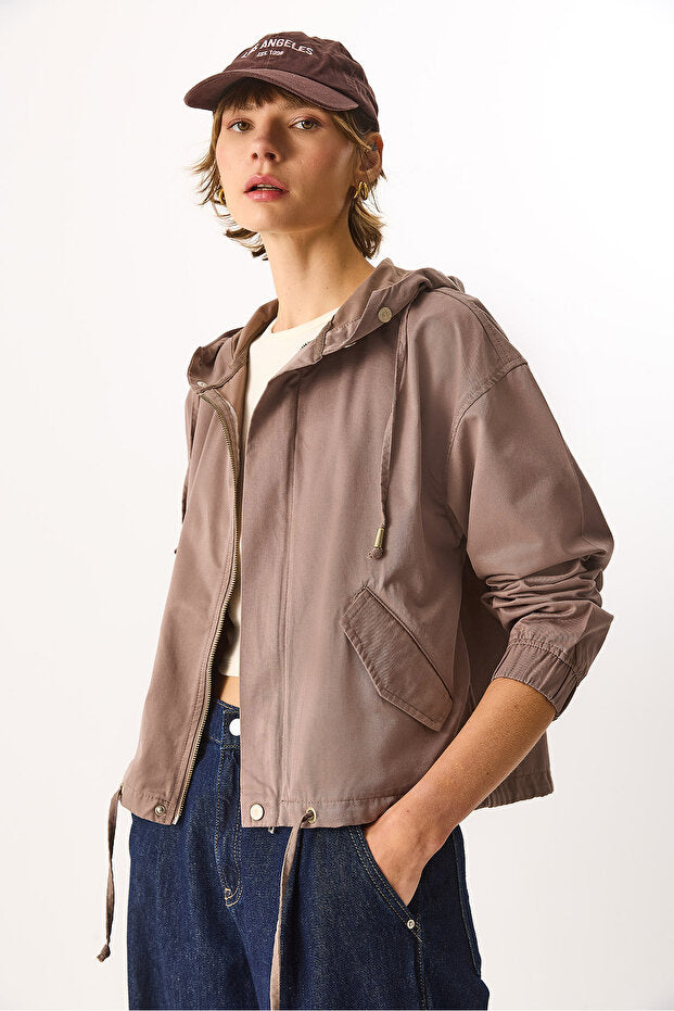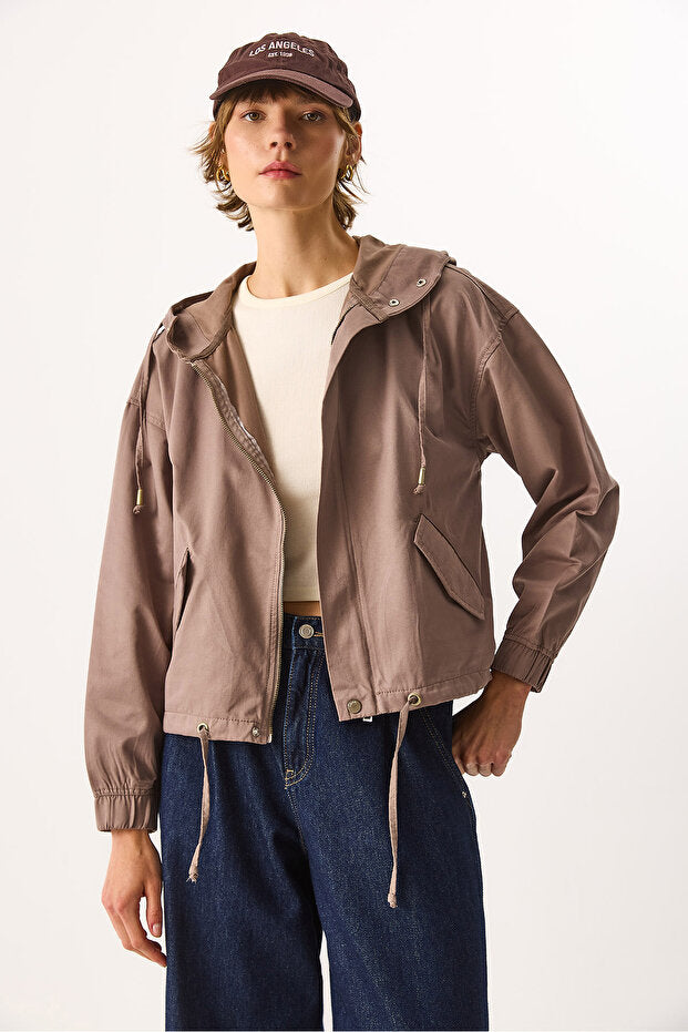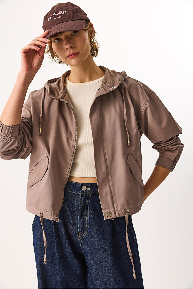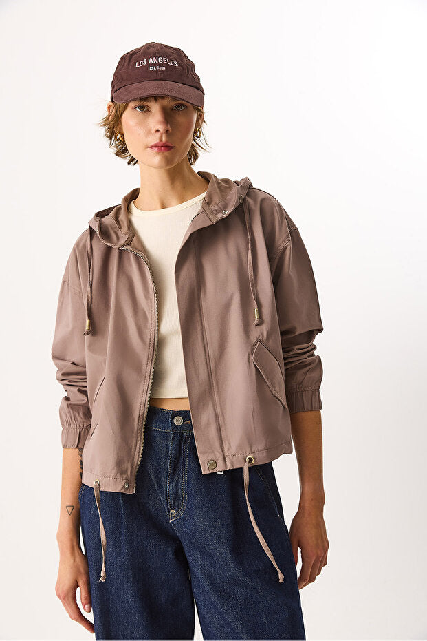 Kadın Meggy Kapüşonlu Rüzgarlık Ceket - Vizon