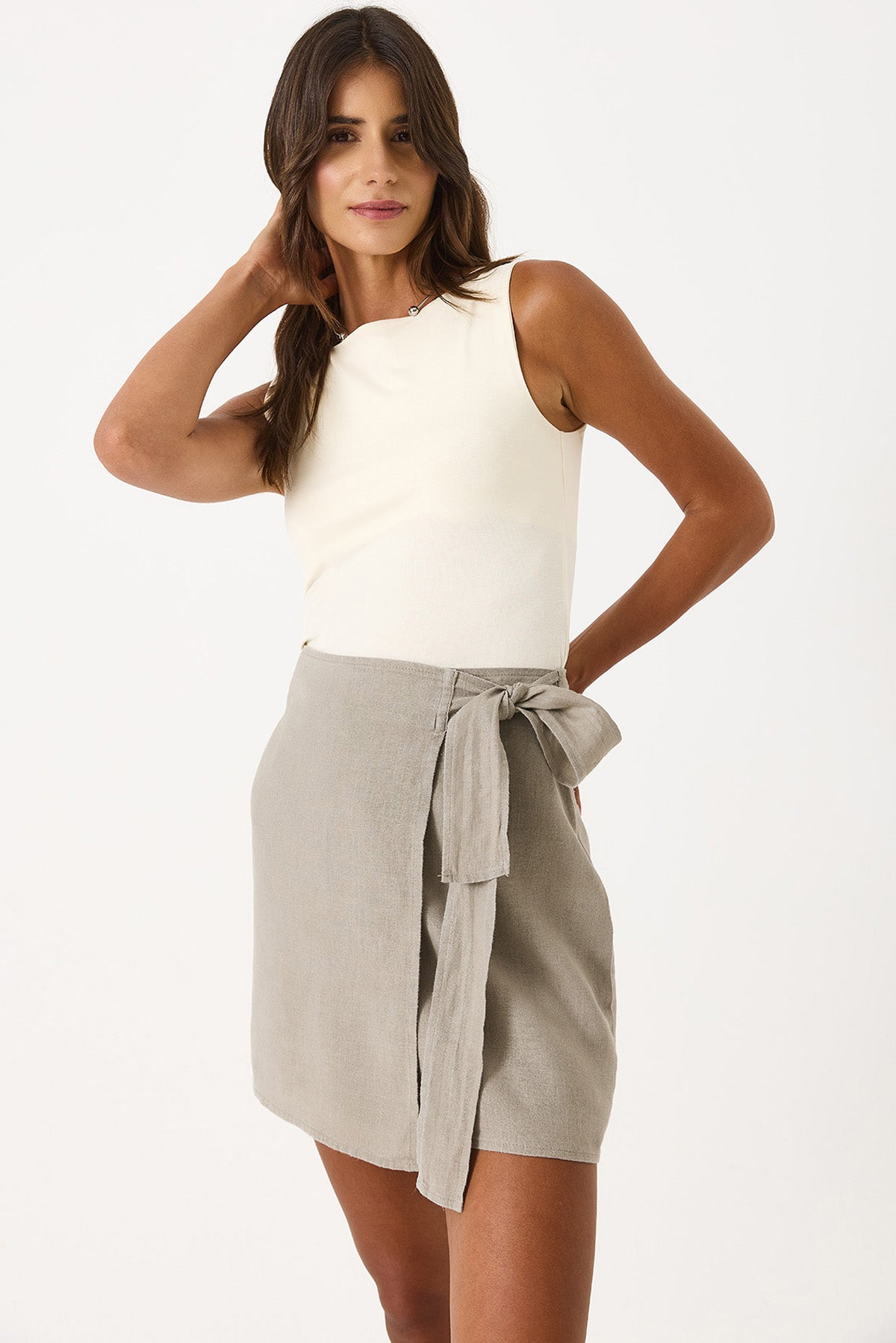 Kadın Mia Anvelop Etek %100 Keten - Ada Çayı