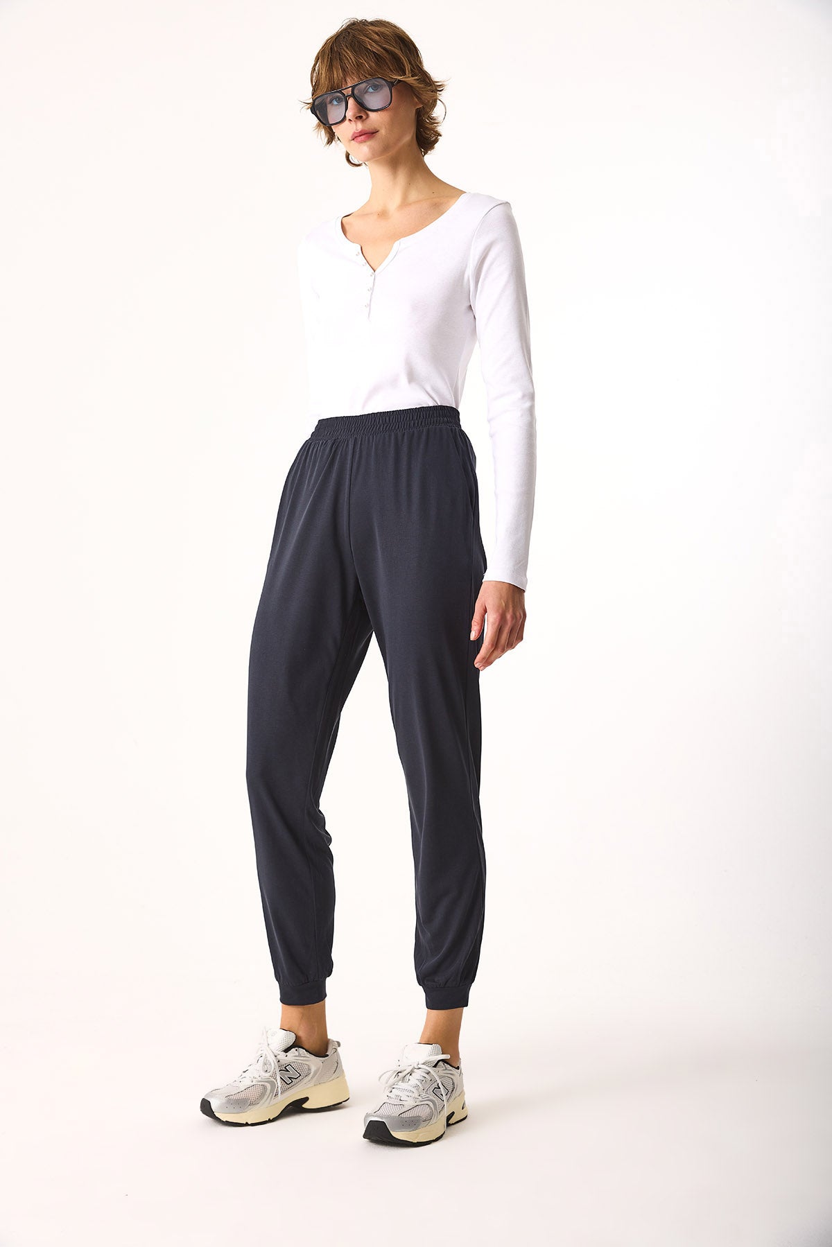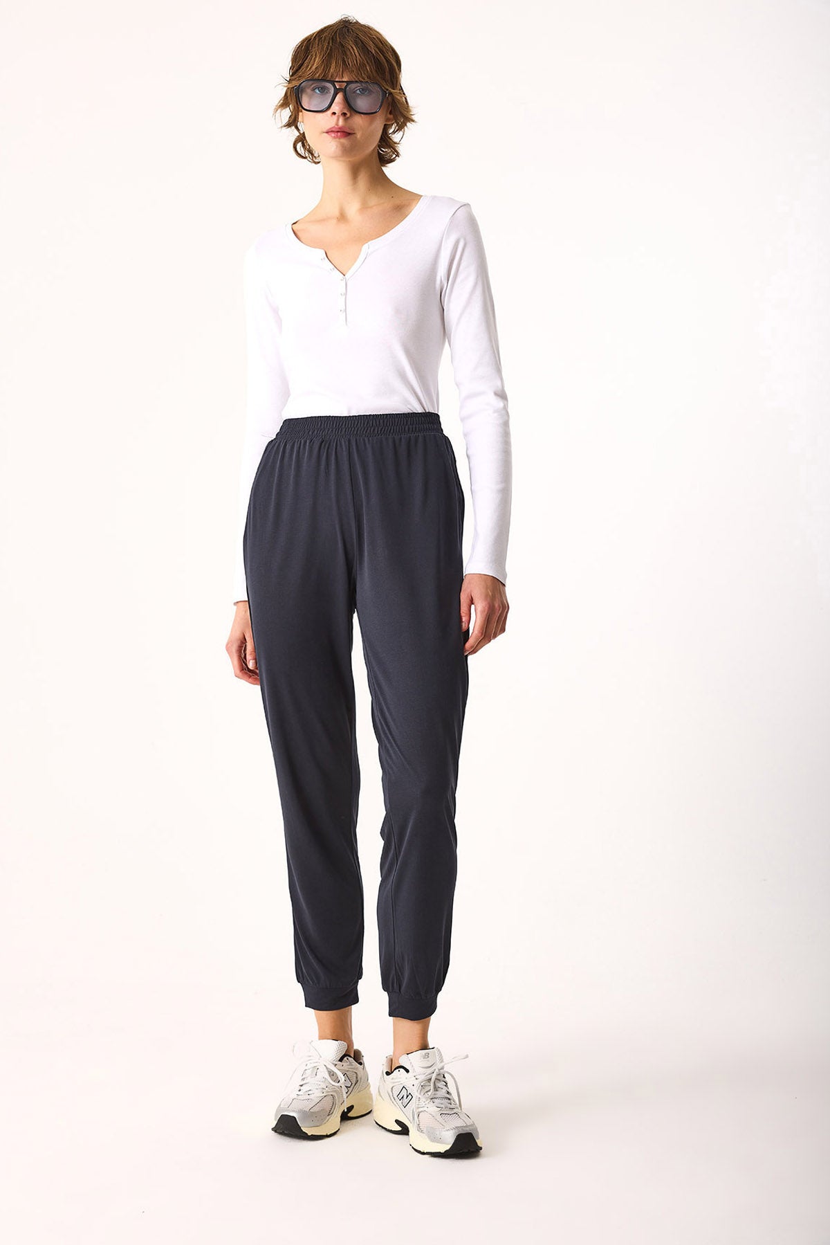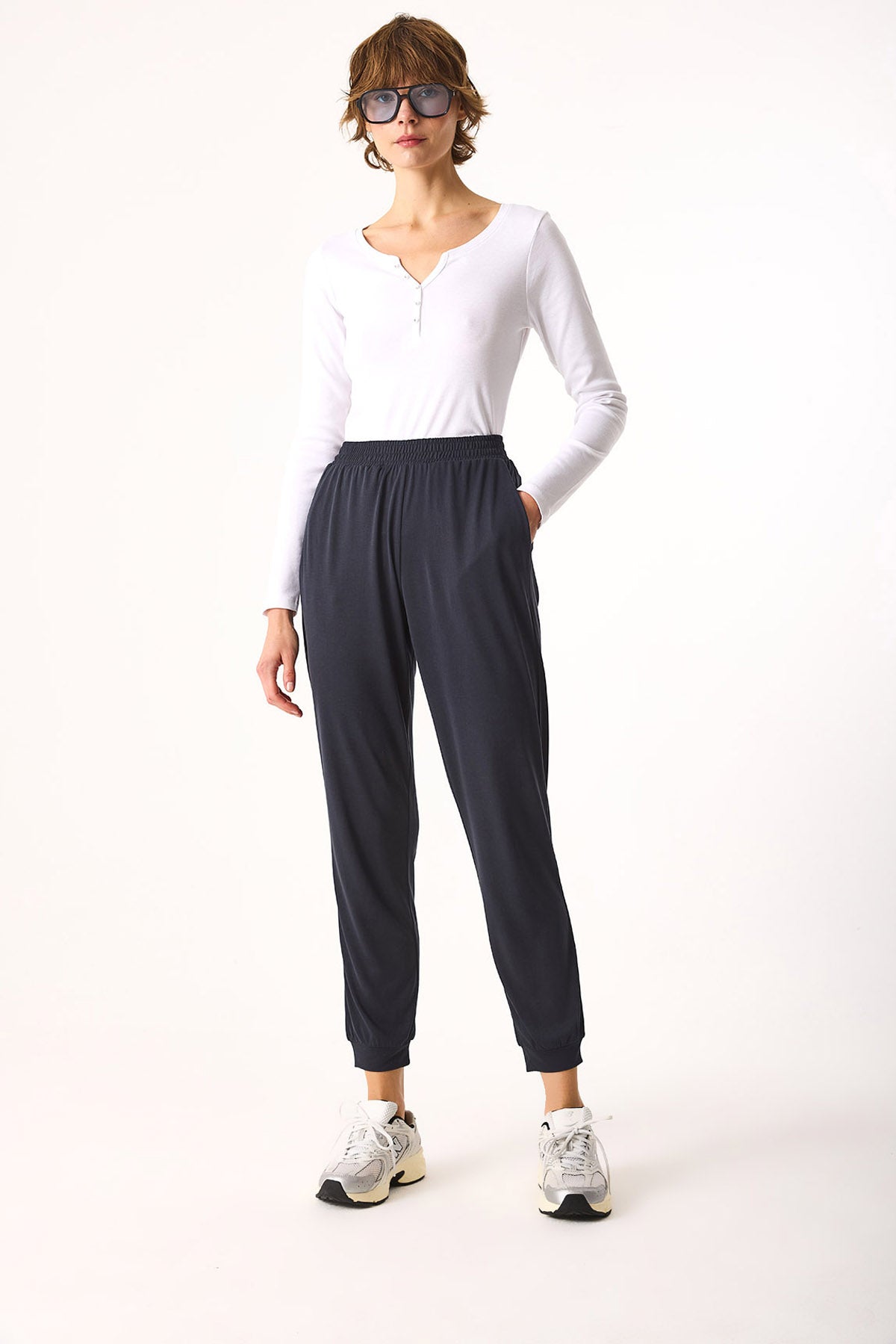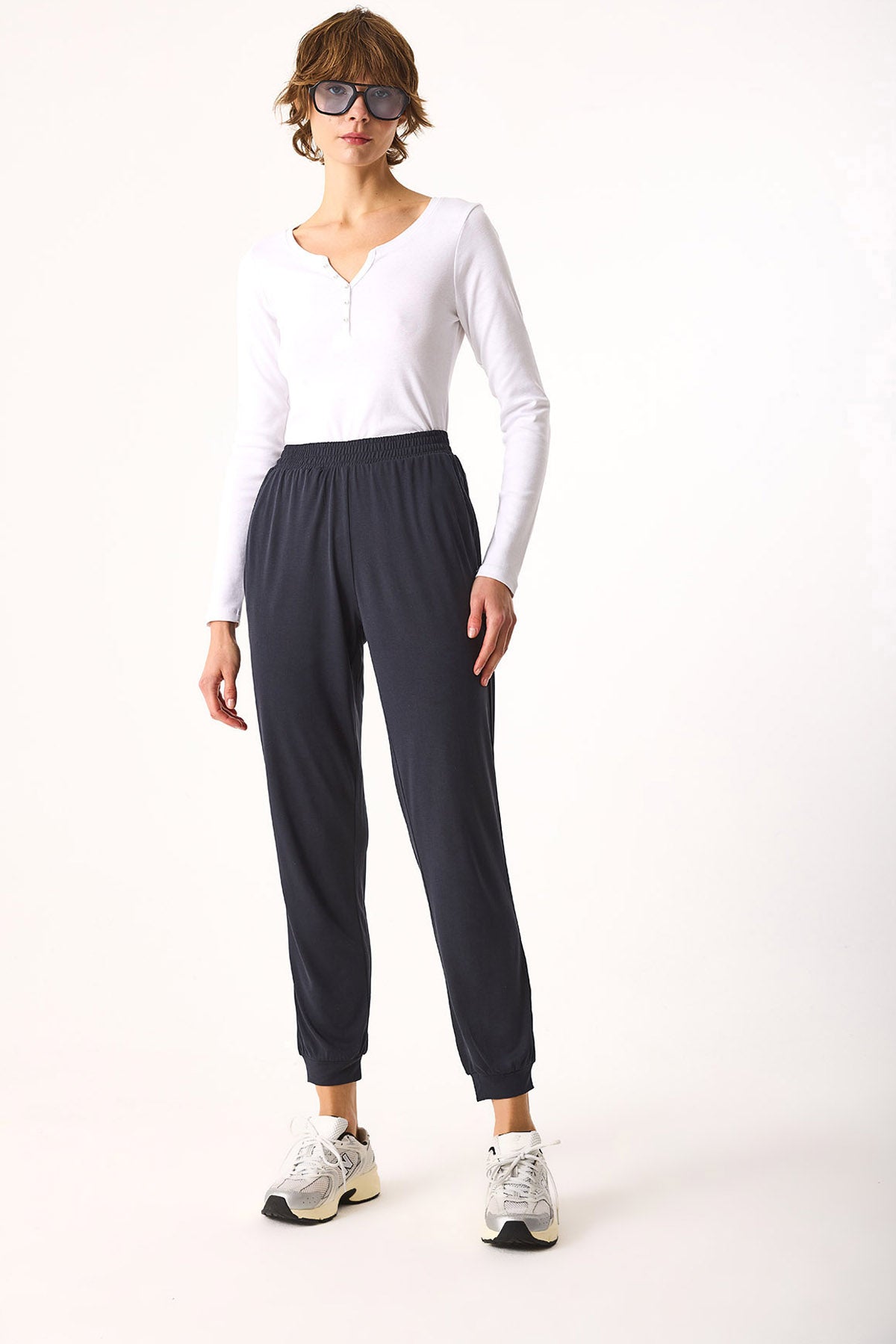 Kadın Mia Yumuşak Dokulu Paçası Lastikli Yarı Dar Kesim Eşofman Altı (CUPRO) - Antrasit