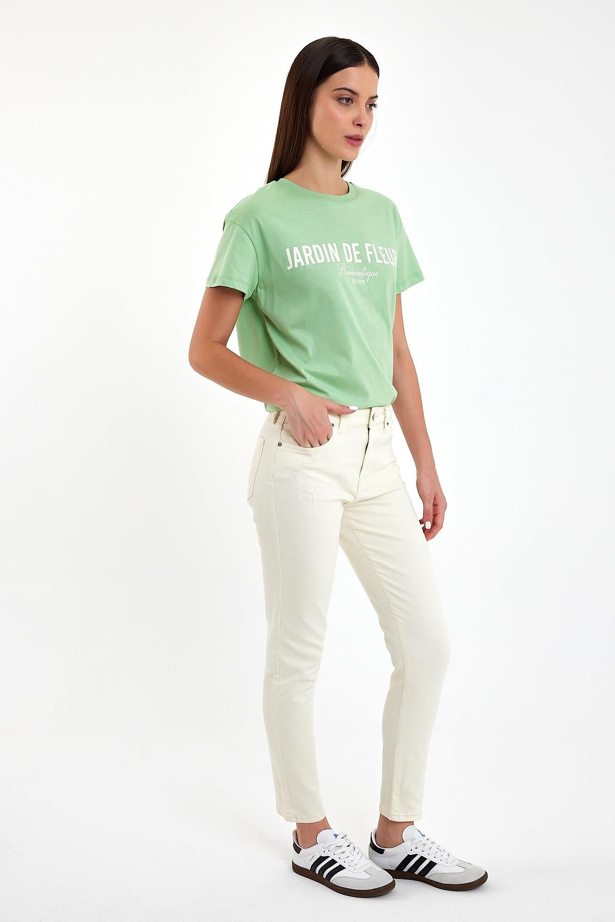 Kadın Mila Renkli Yıpratmalı Boyfriend Jean Pantolon - Kemik