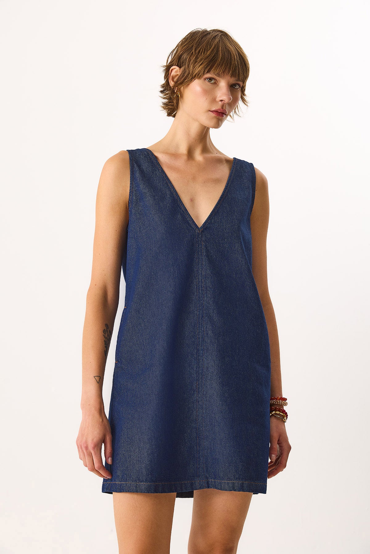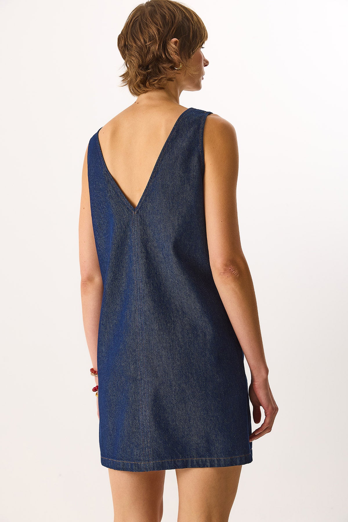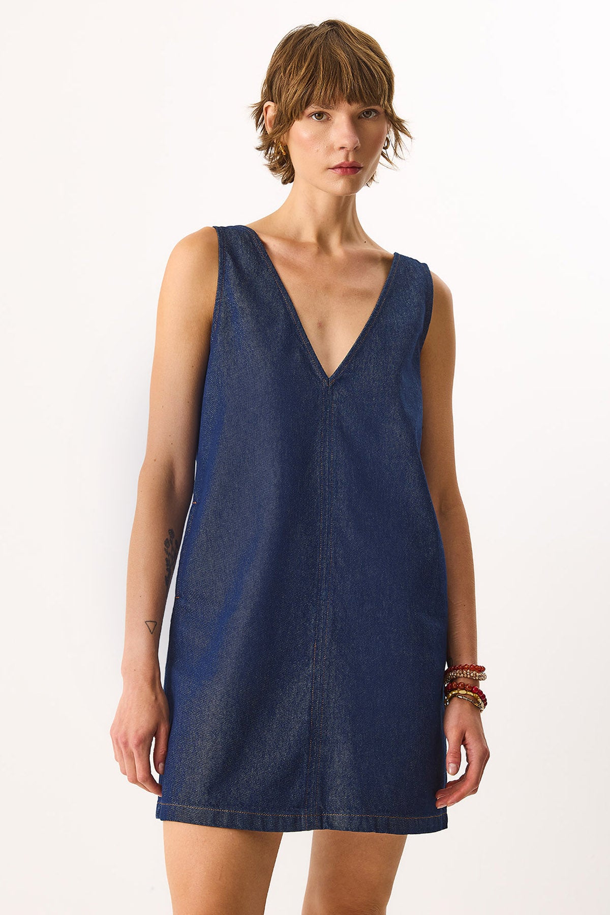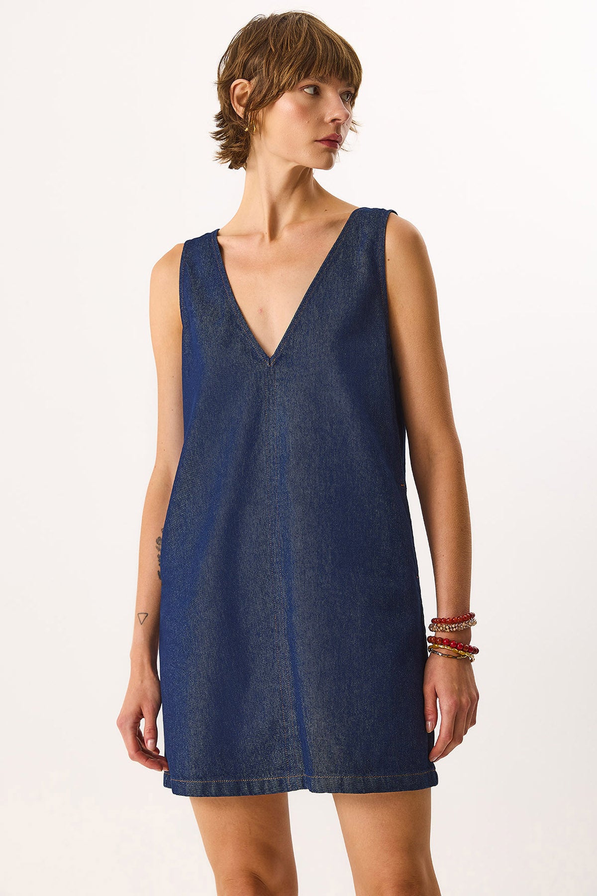 Kadın Mina Rins Yıkamalı Jile Jean Elbise %100 Pamuk - Rins