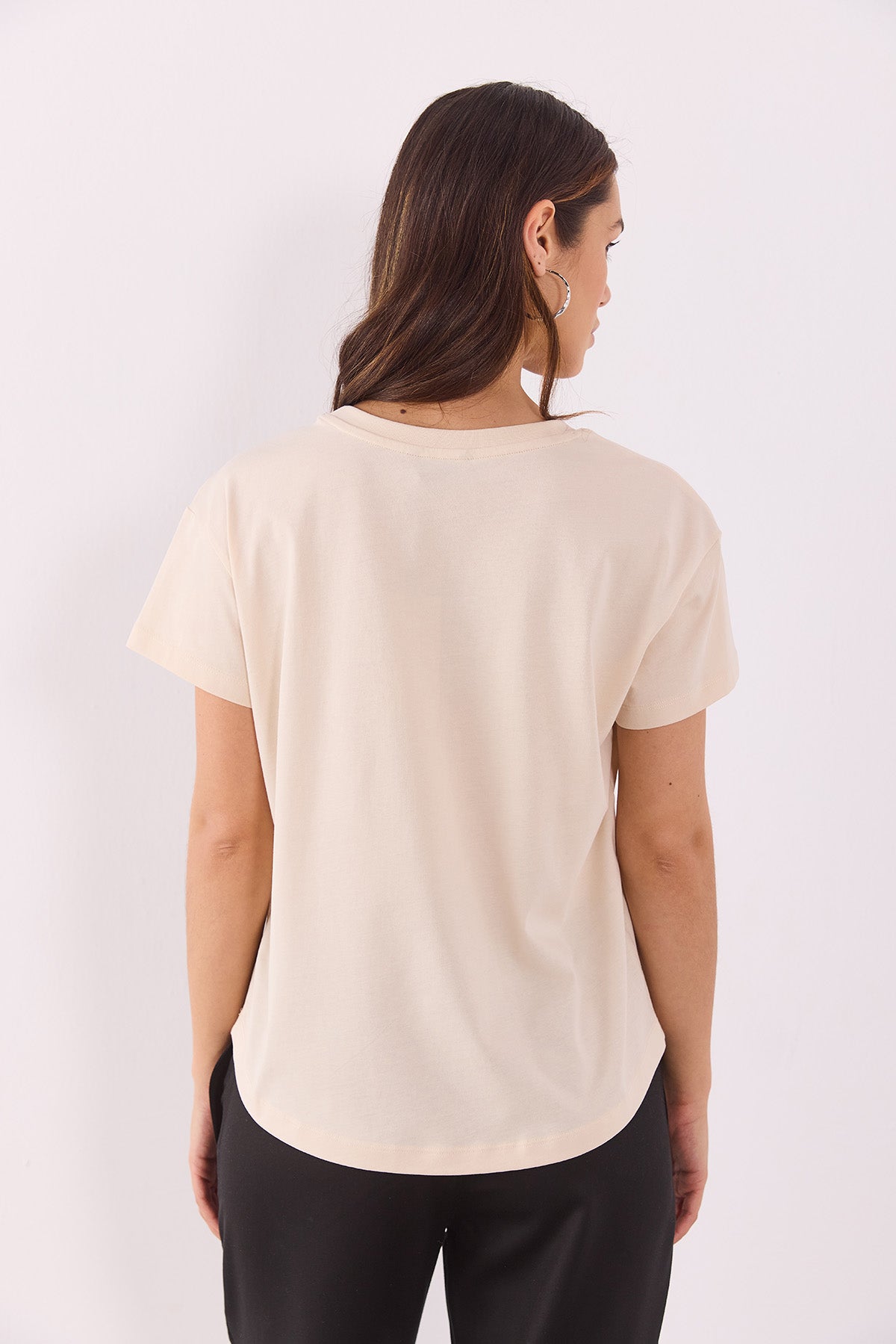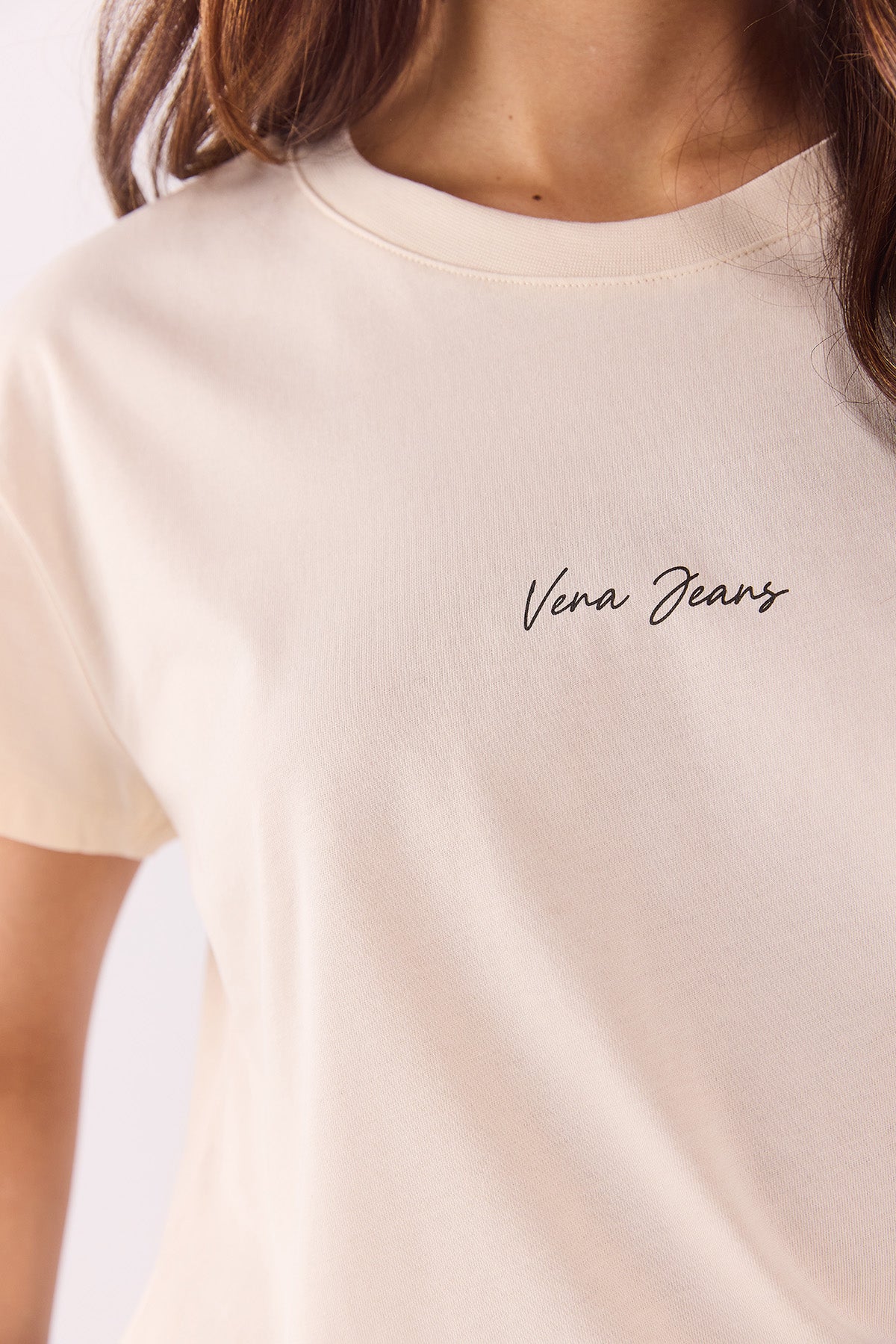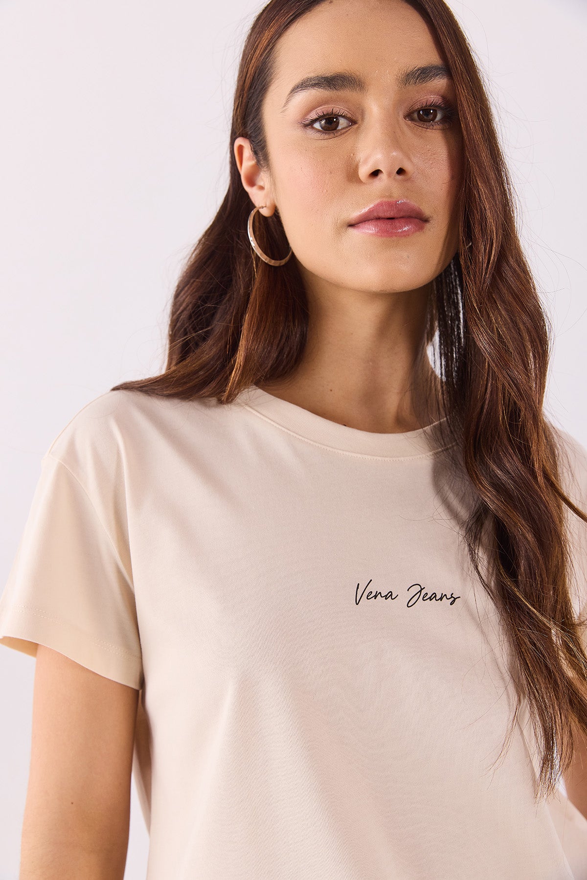 Kadın Mini Vena Logo Baskılı Regular Fit Tişört %100 Pamuk - Bej