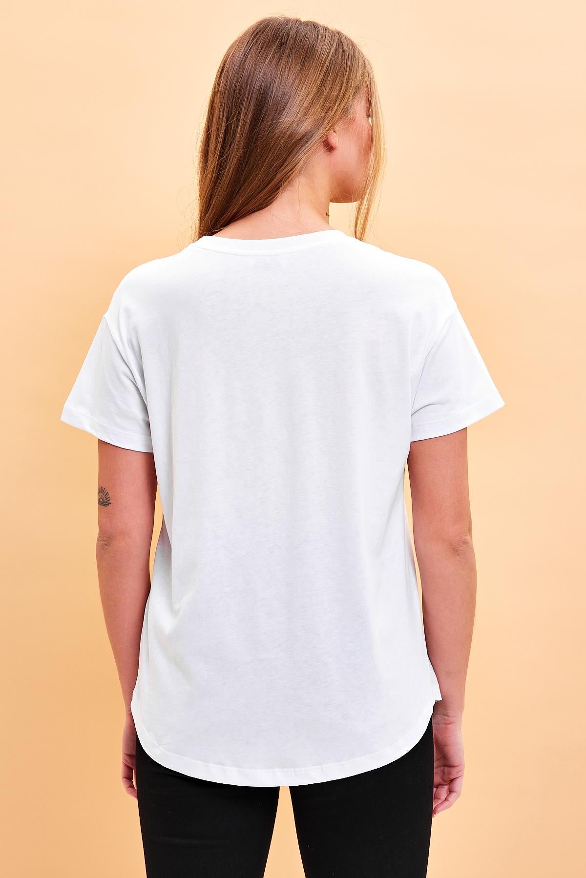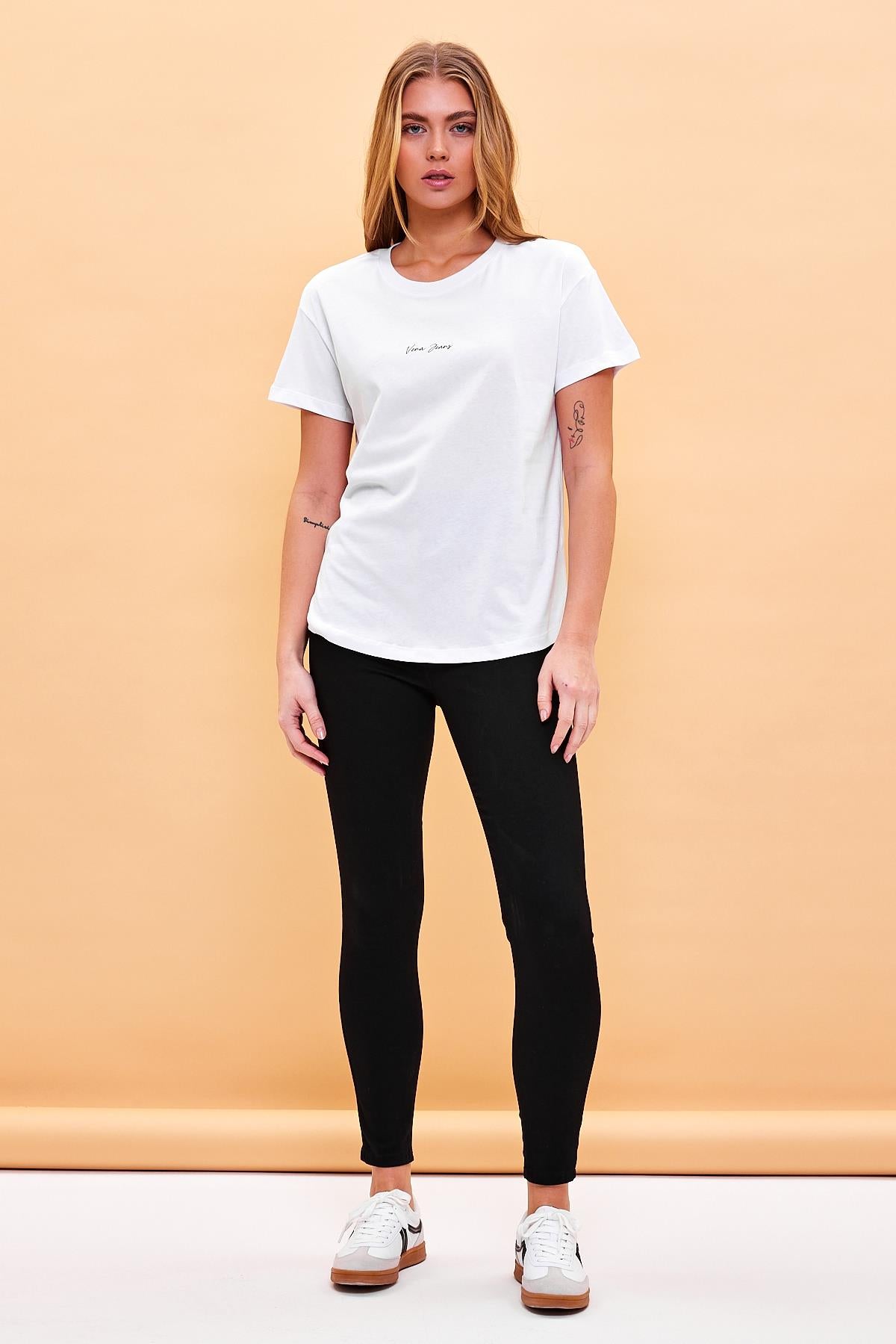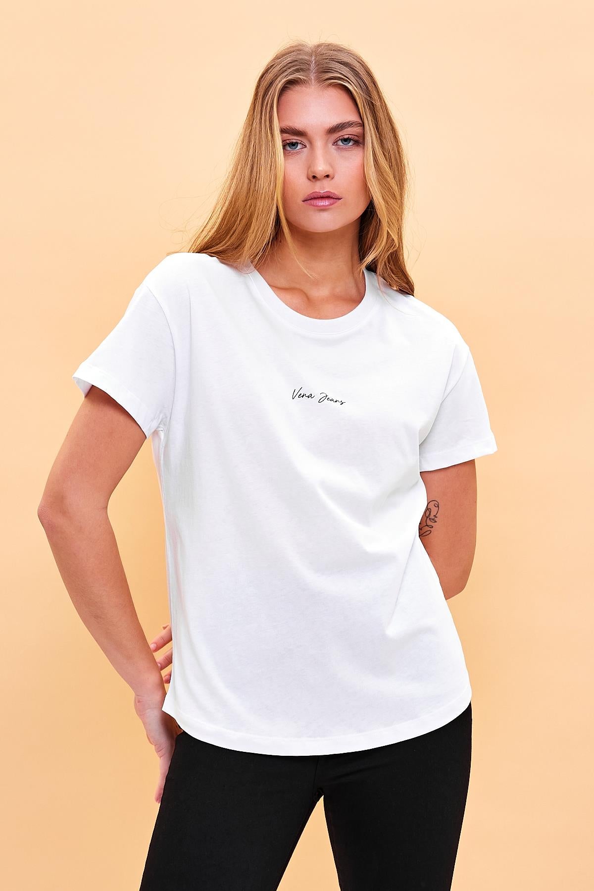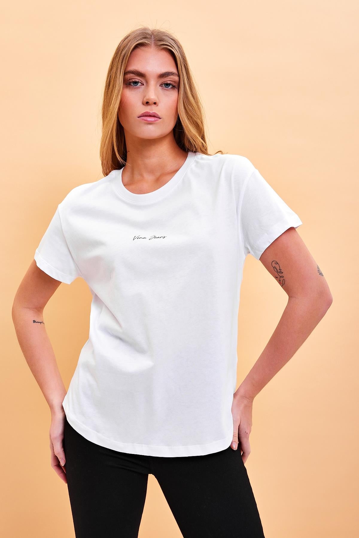 Kadın Mini Vena Logo Baskılı Regular Fit Tişört %100 Pamuk - Beyaz