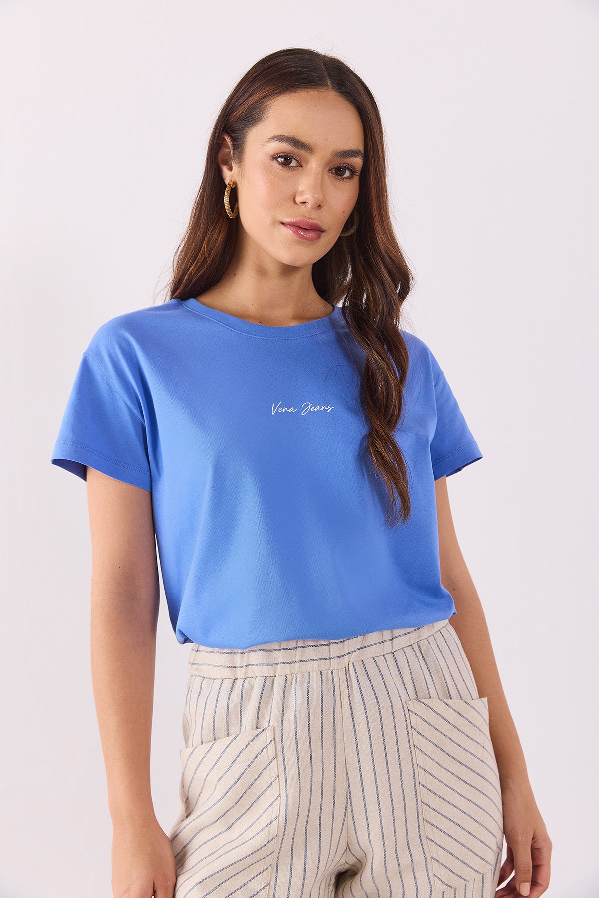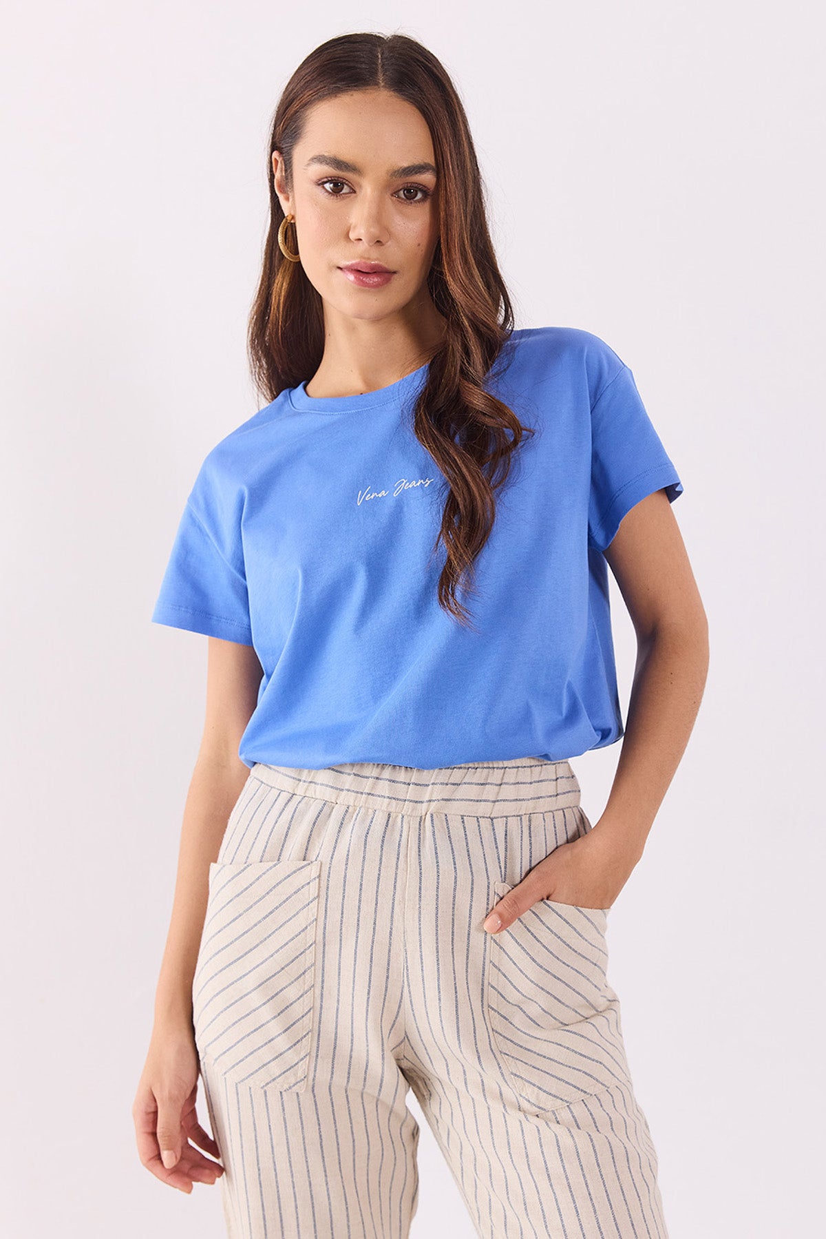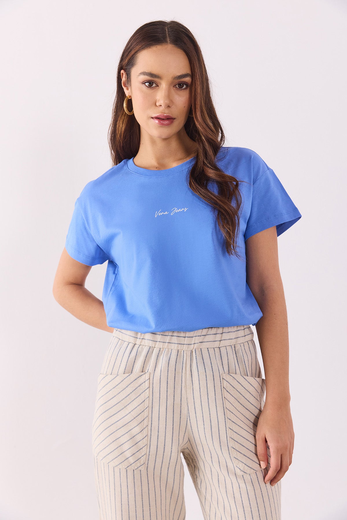 Kadın koleksiyonundan Vena Logo Baskılı Oversize Tişört. Oversize. Bisiklet yaka. Yüzde yüz pamuk kumaşı sayesinde nefes alır, konfor sağlar. Kısa kollu.