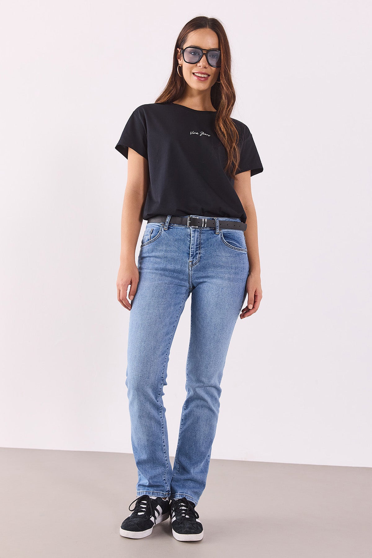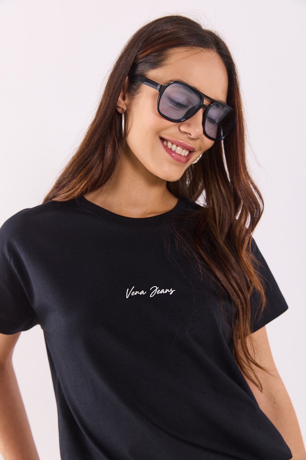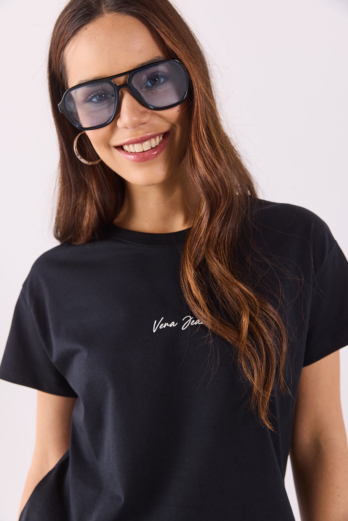 Kadın Mini Vena Logo Baskılı Regular Fit Tişört %100 Pamuk - Siyah