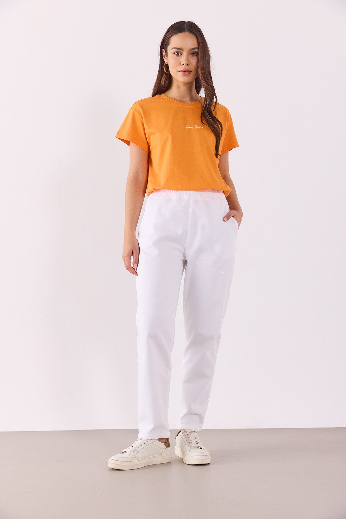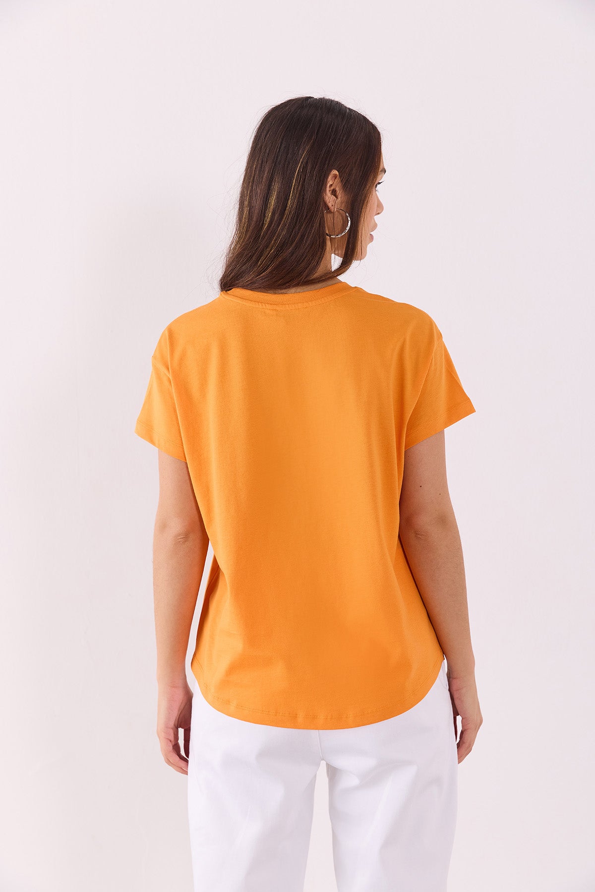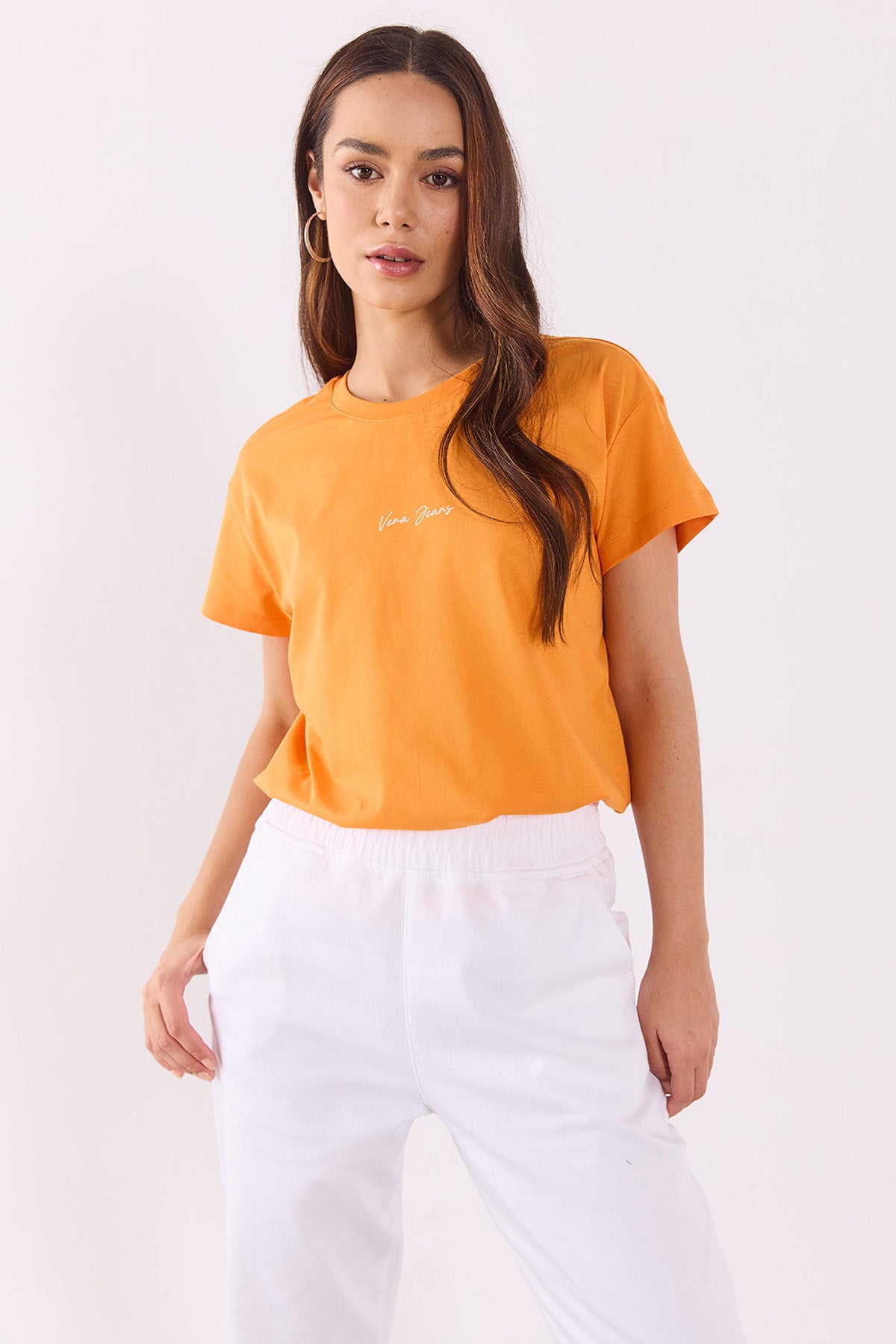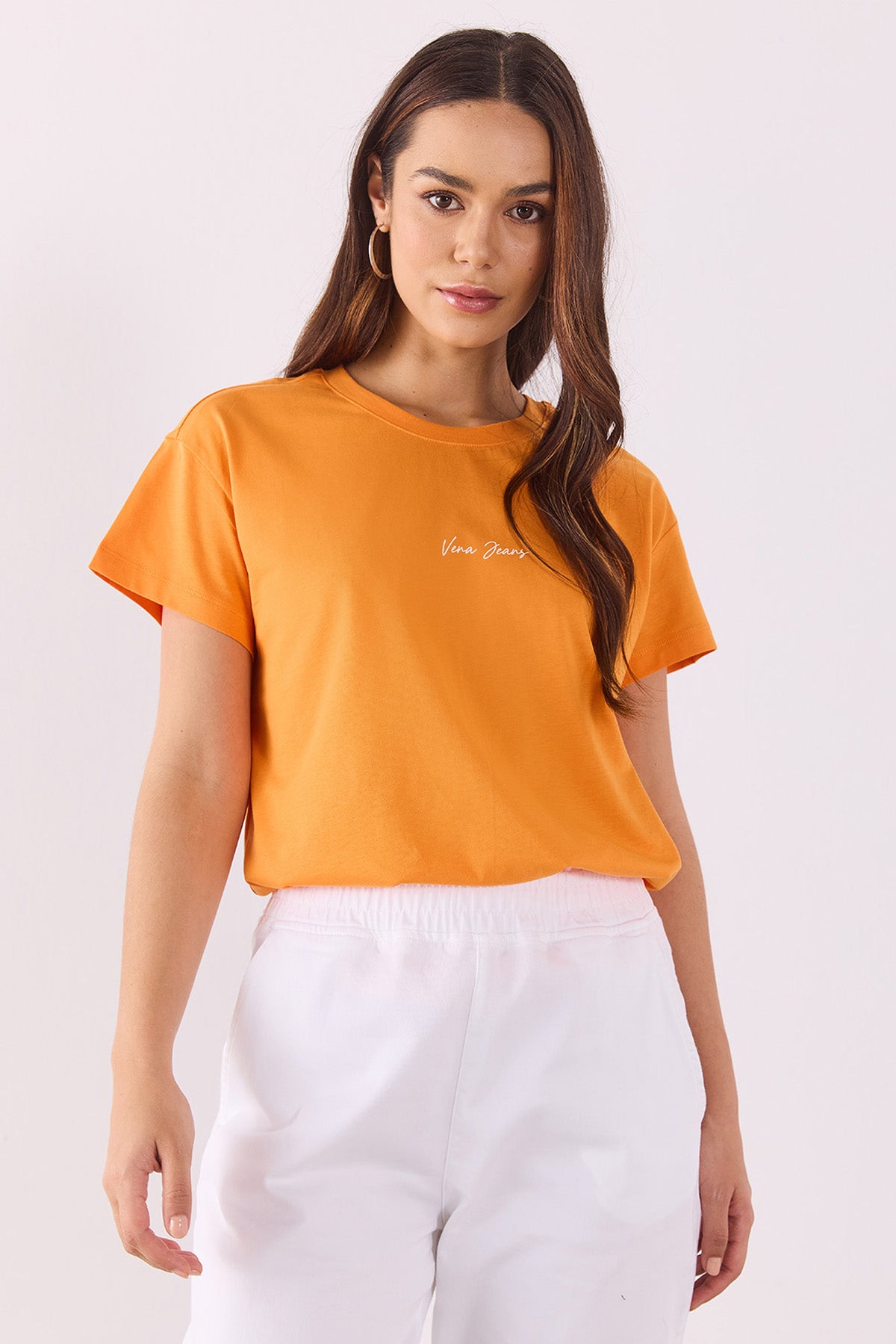 Kadın Mini Vena Logo Baskılı Regular Fit Tişört %100 Pamuk - Turuncu