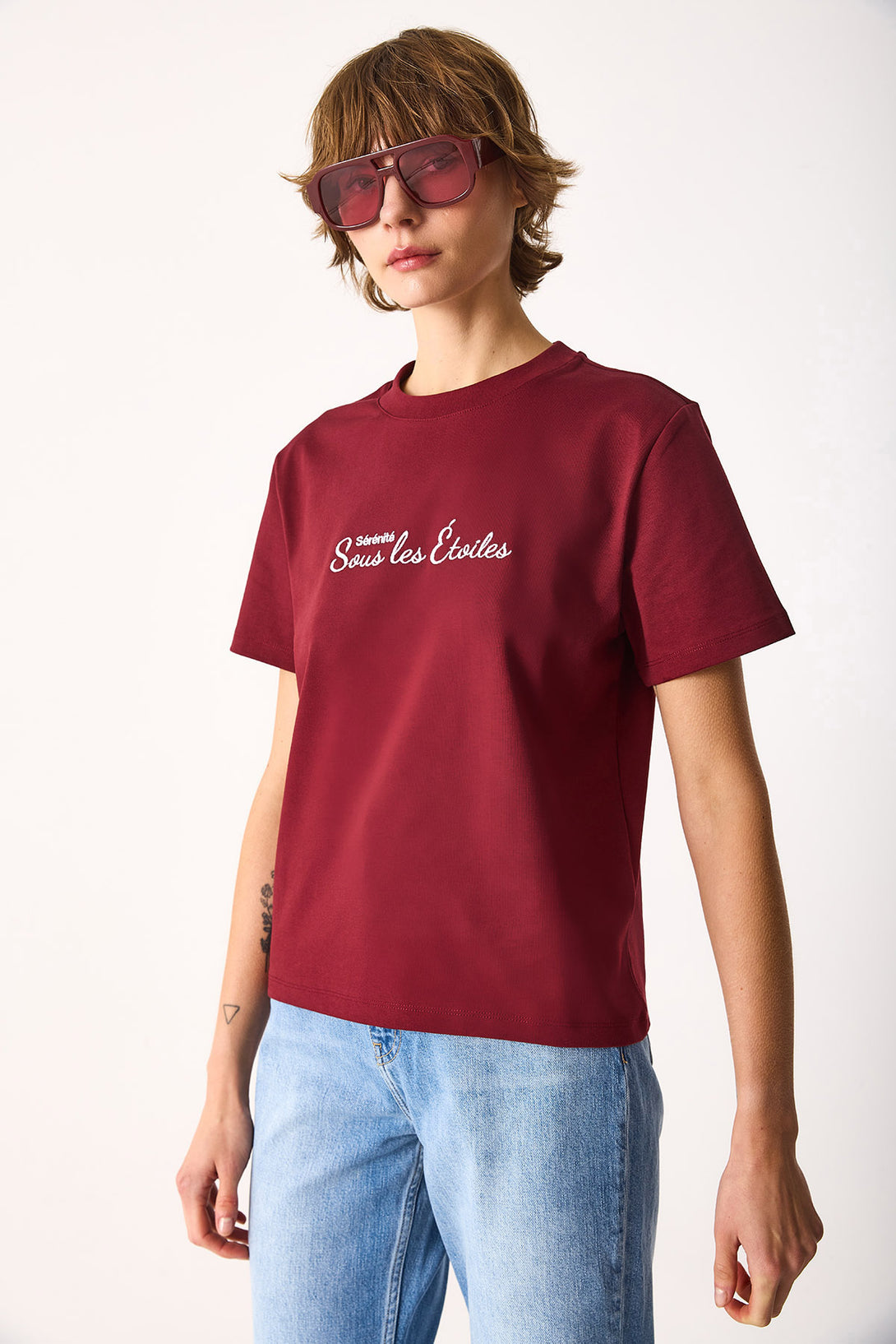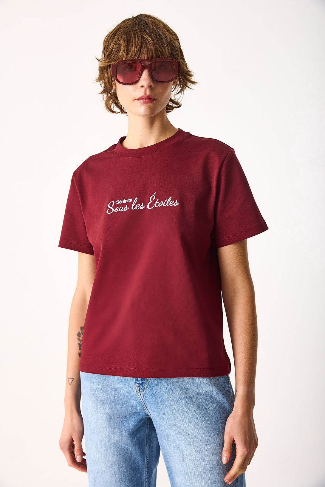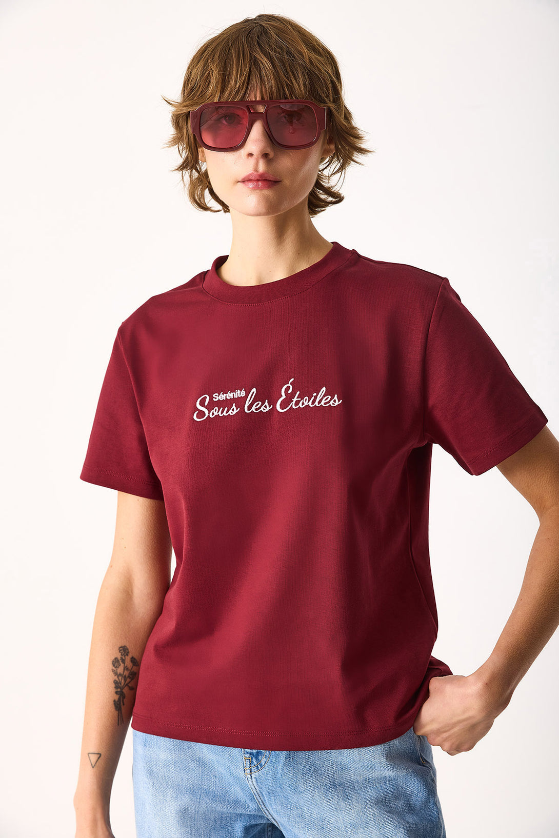 Nakışlı Sloganlı Tişört-BORDO