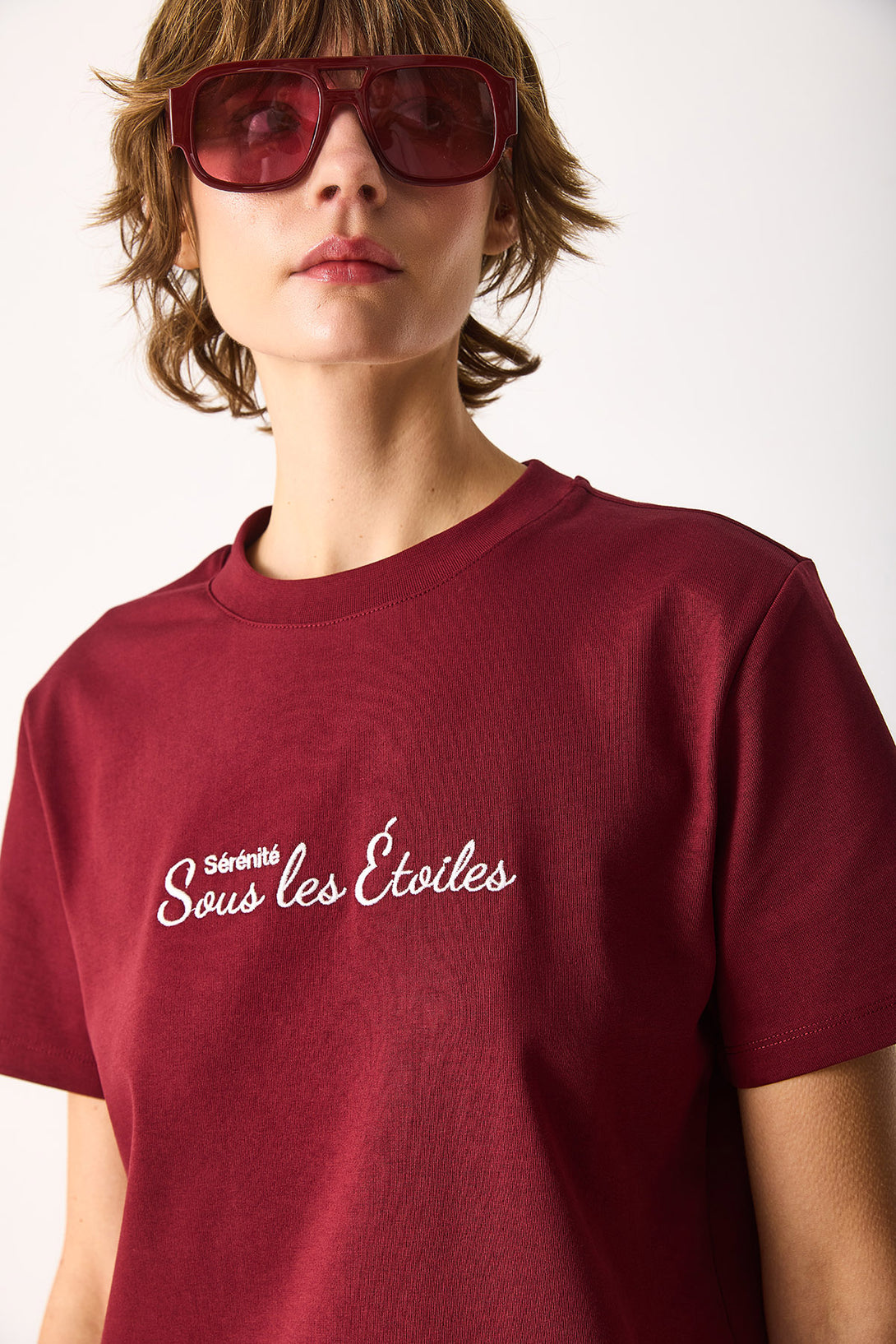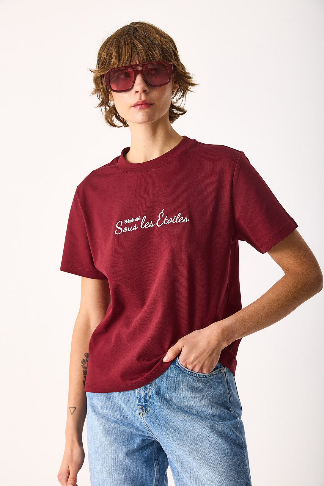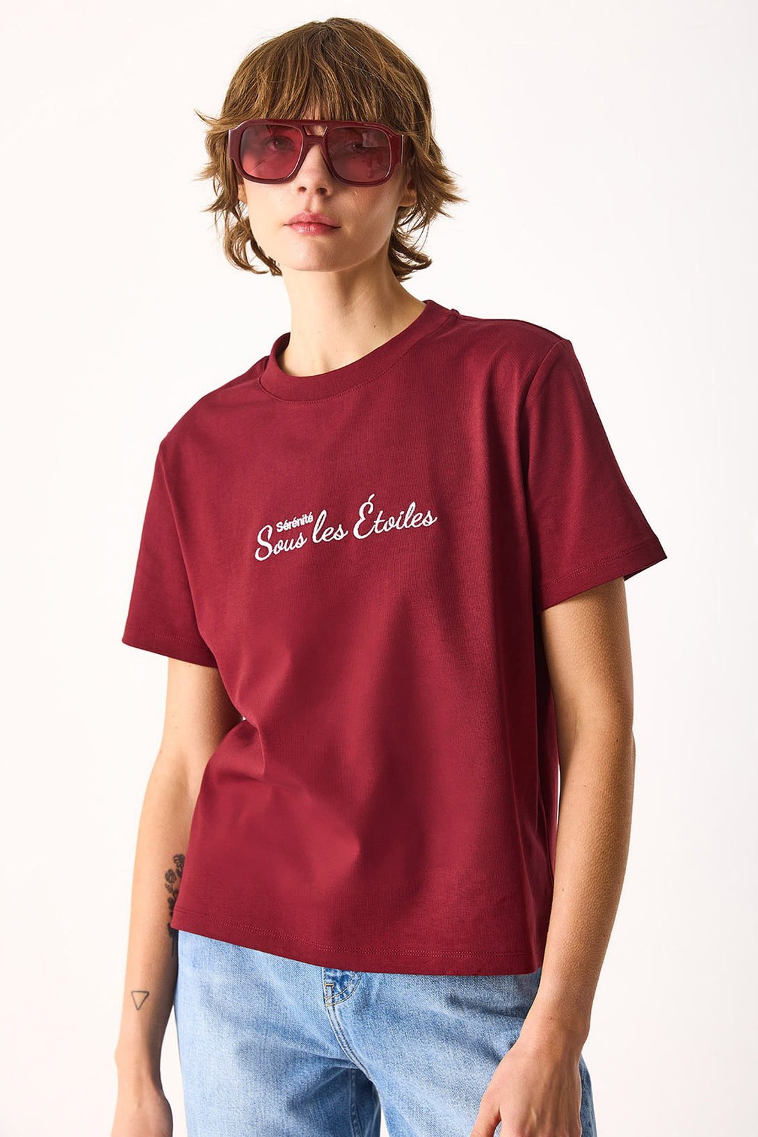Nakışlı Sloganlı Tişört-BORDO