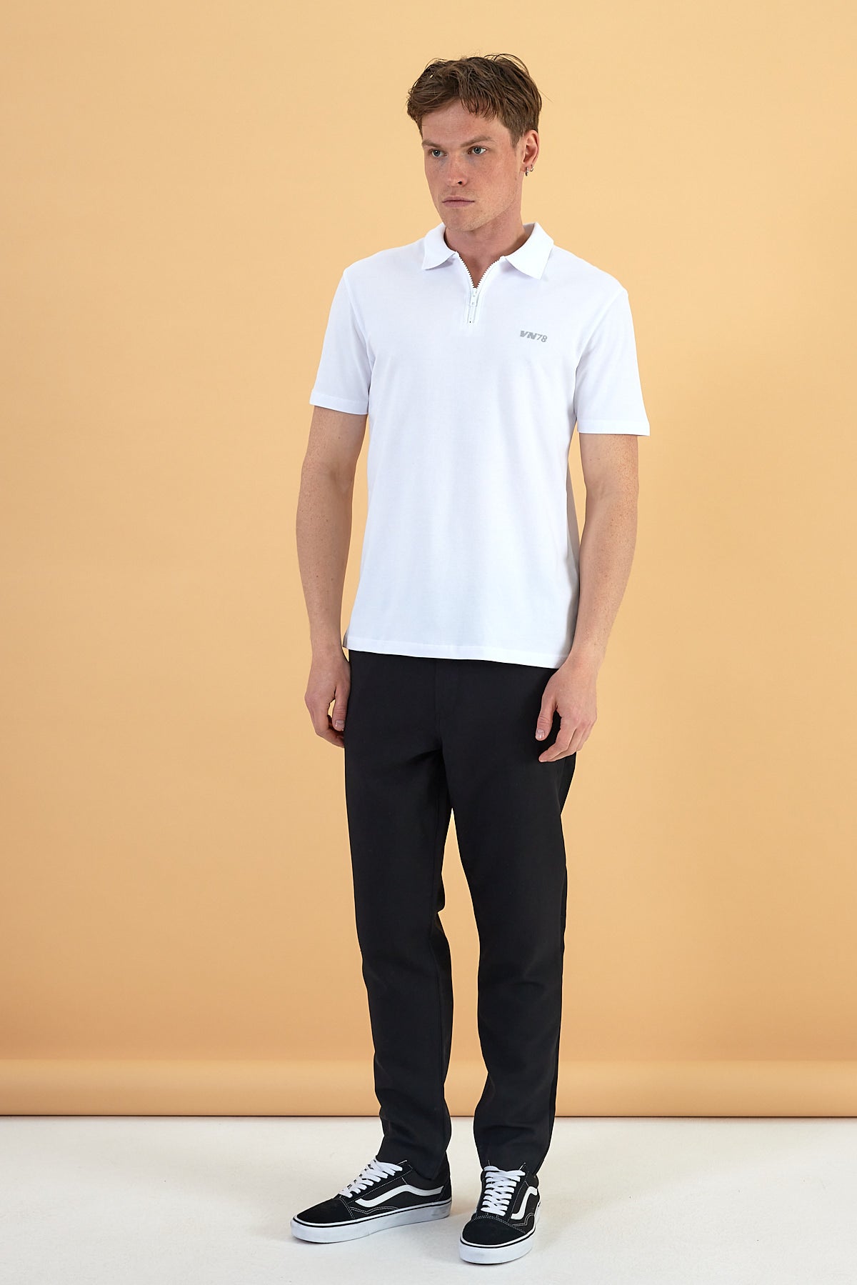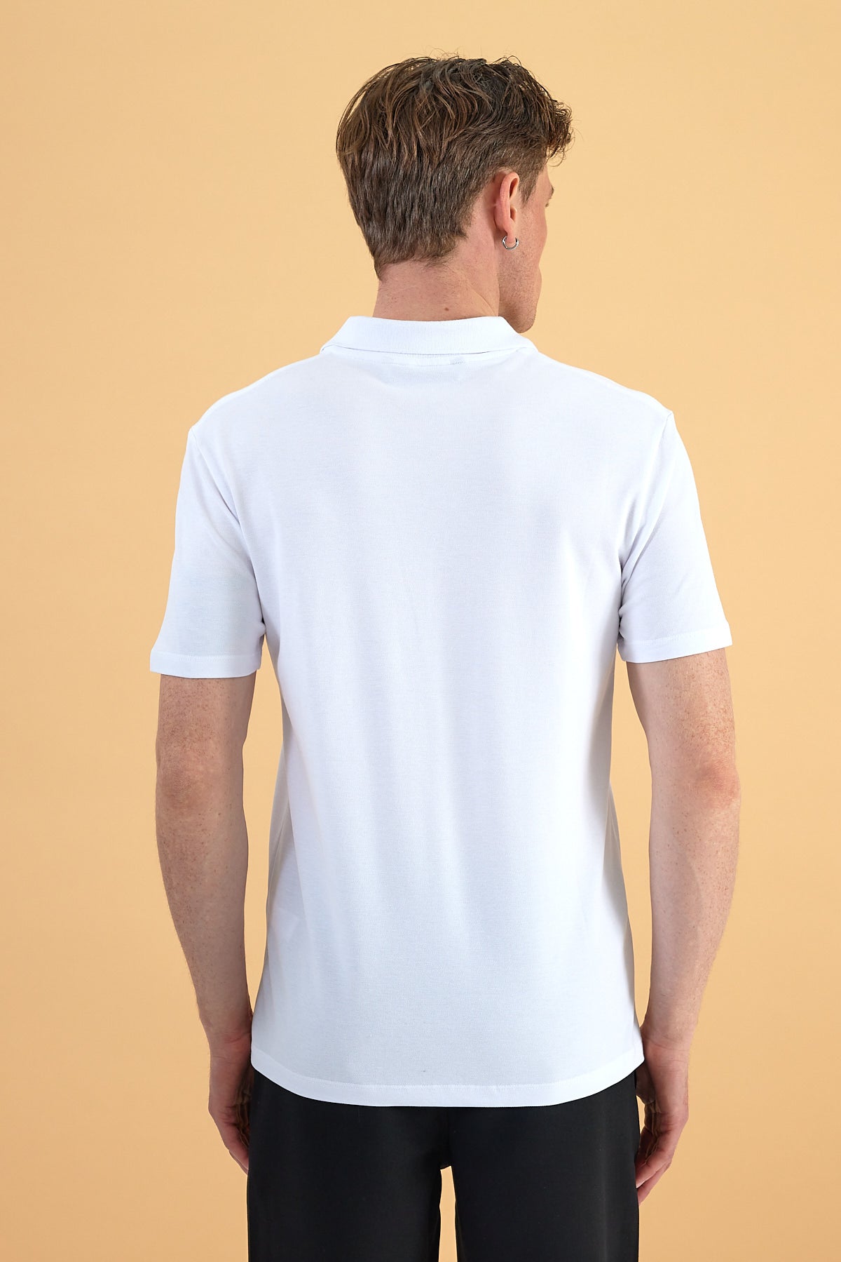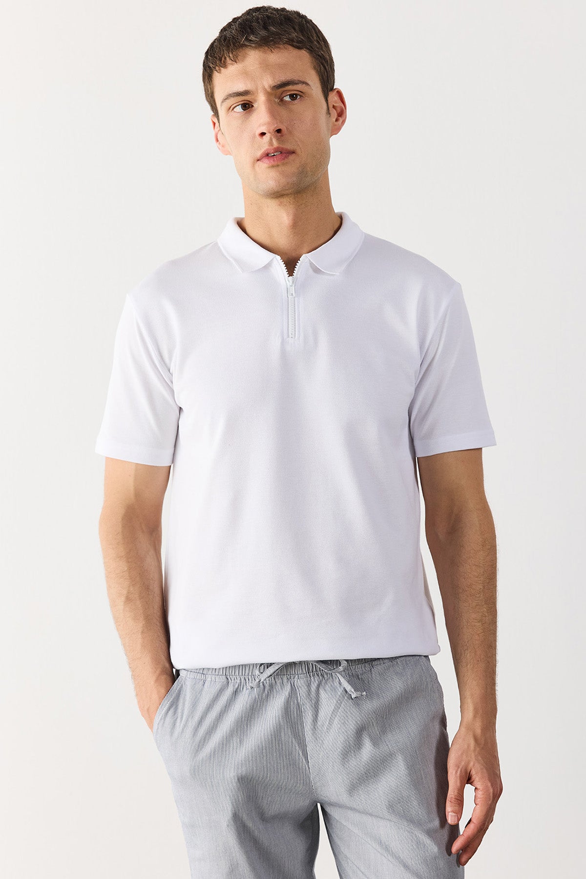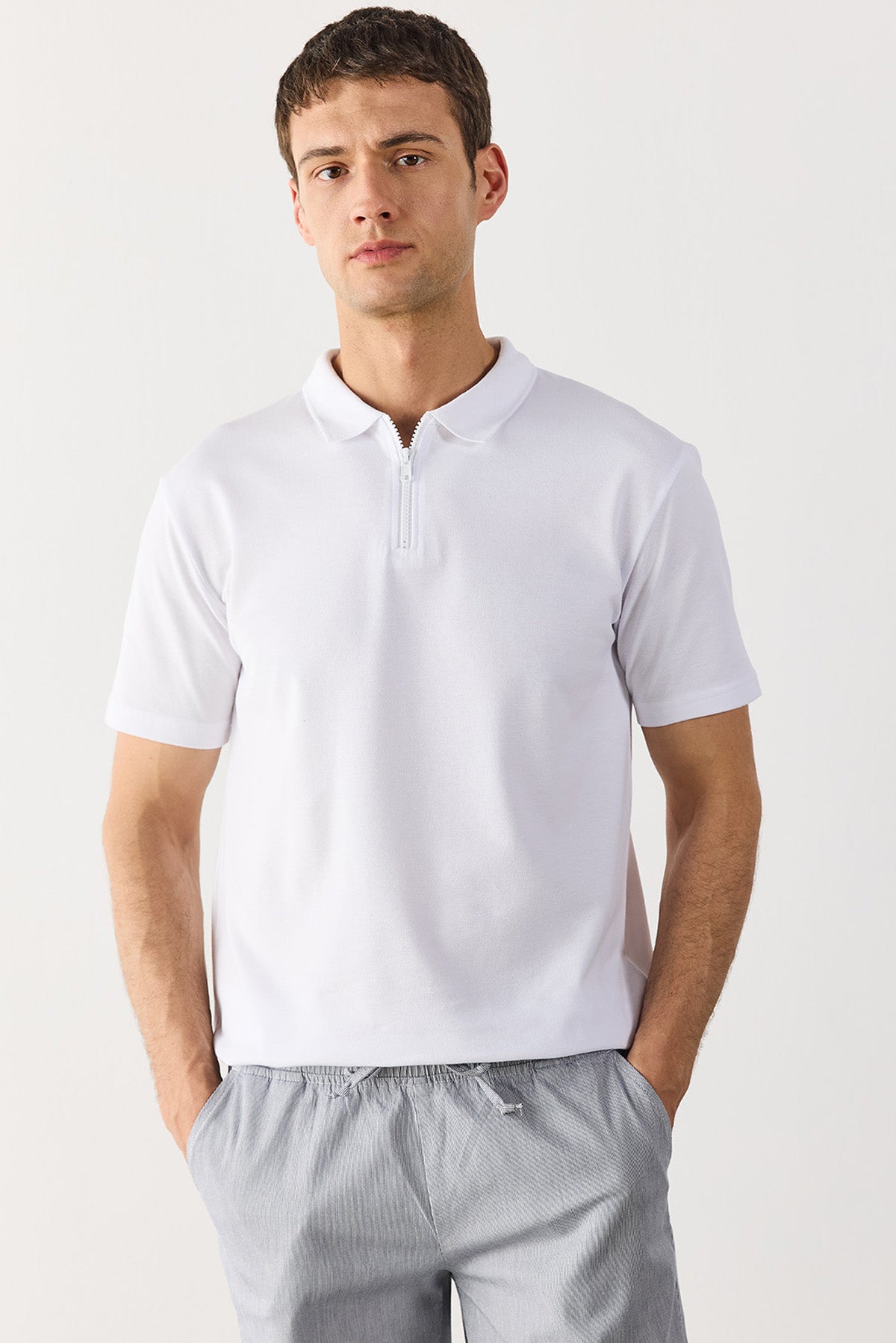 Erkek Nicolas Fermuar Detaylı Polo Yakalı Tişört - Beyaz