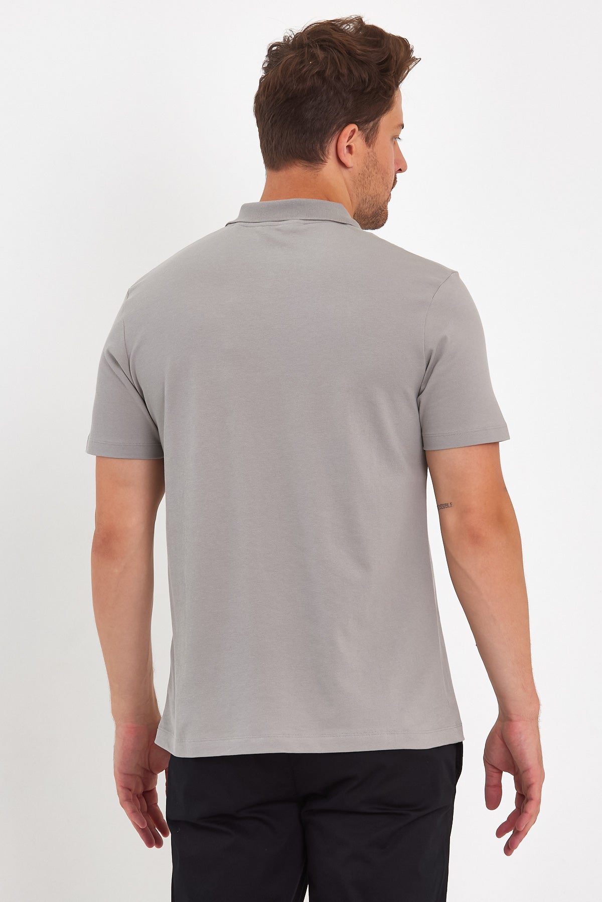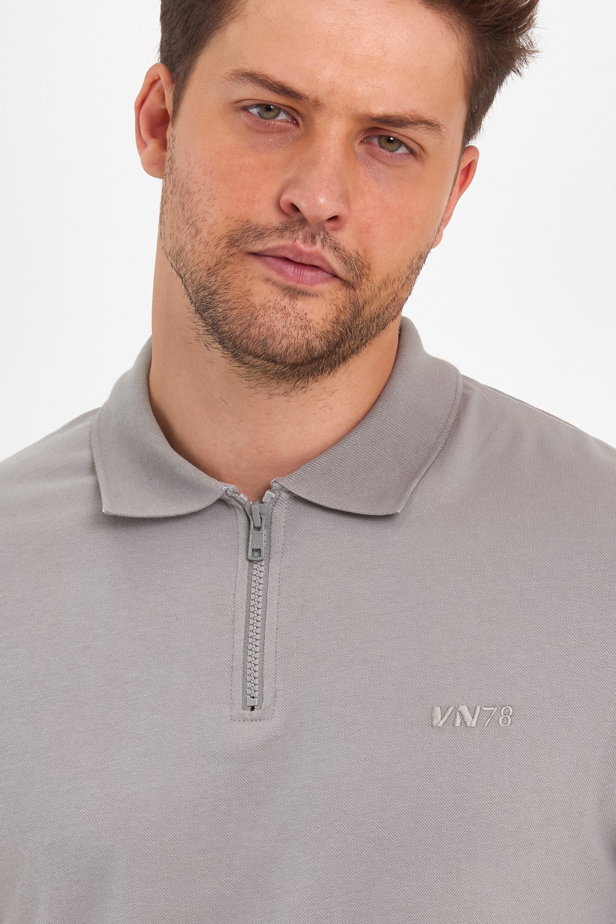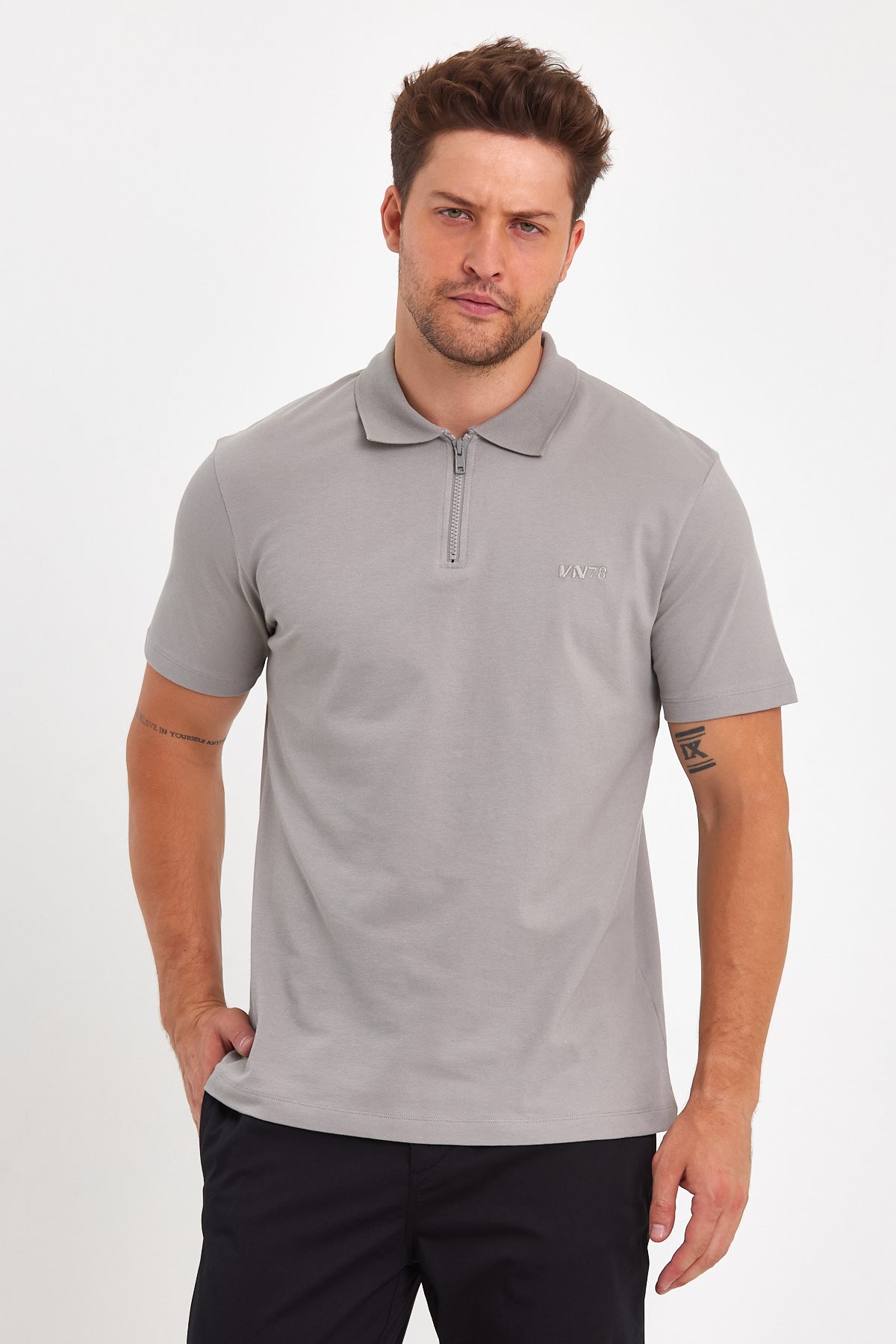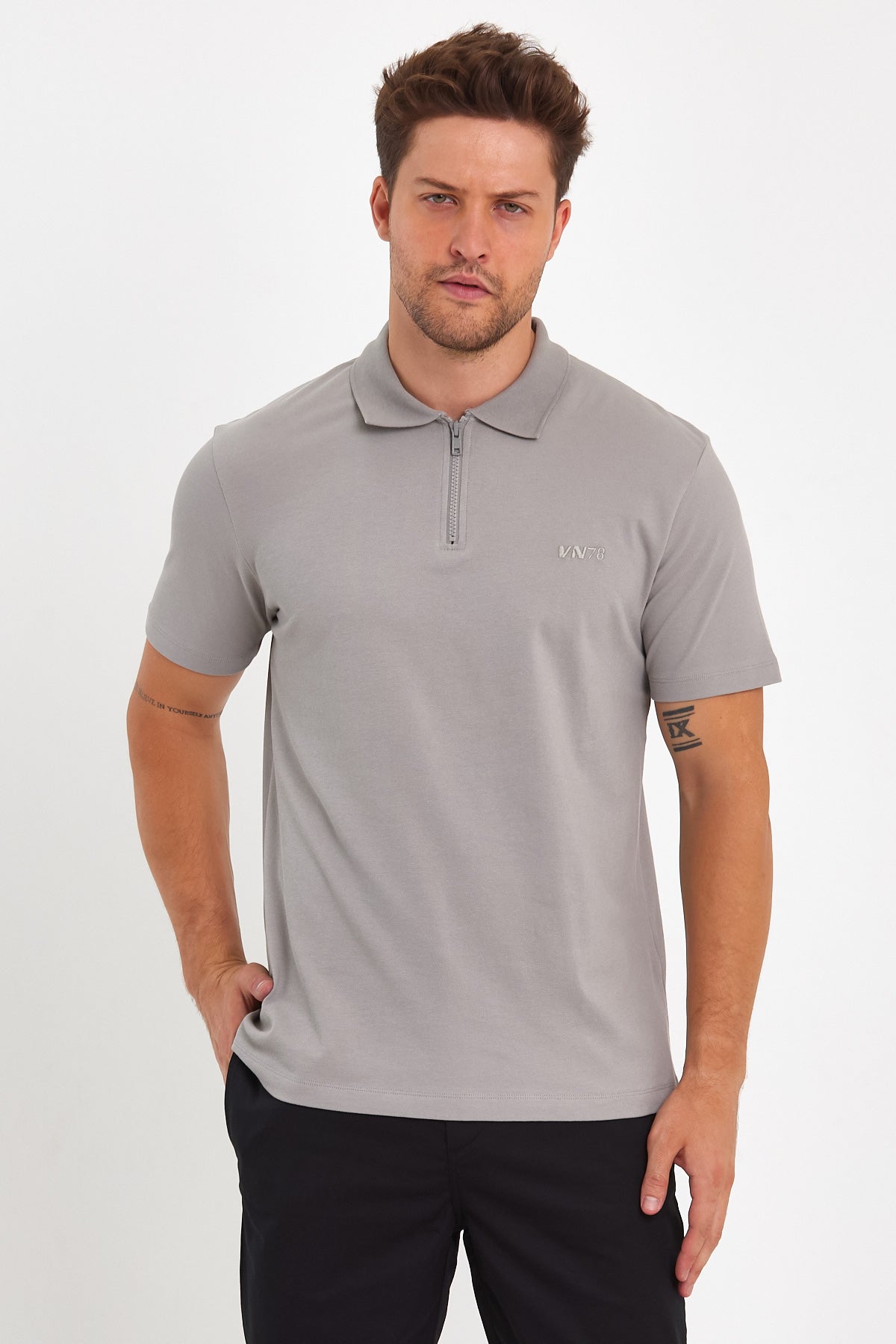 Erkek Nicolas Fermuar Detaylı Polo Yakalı Tişört - Gri