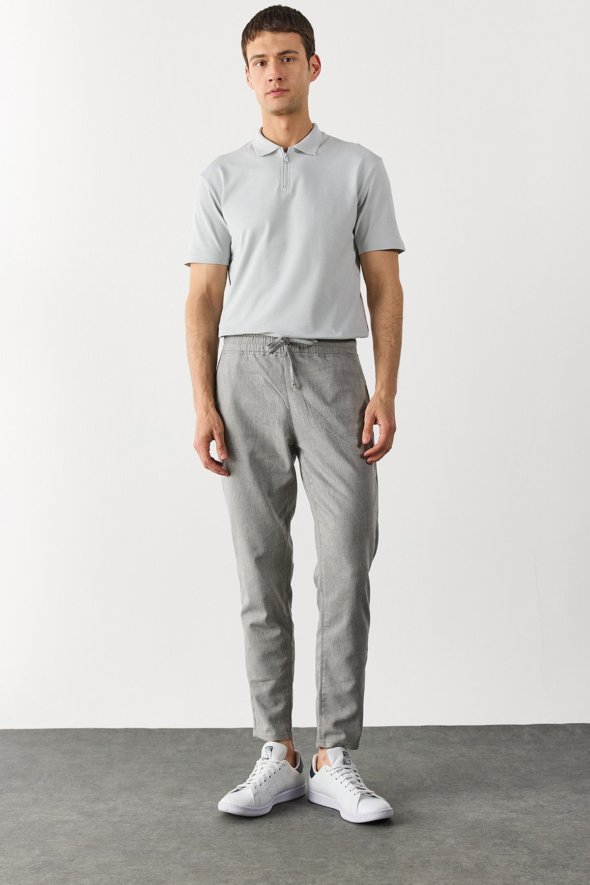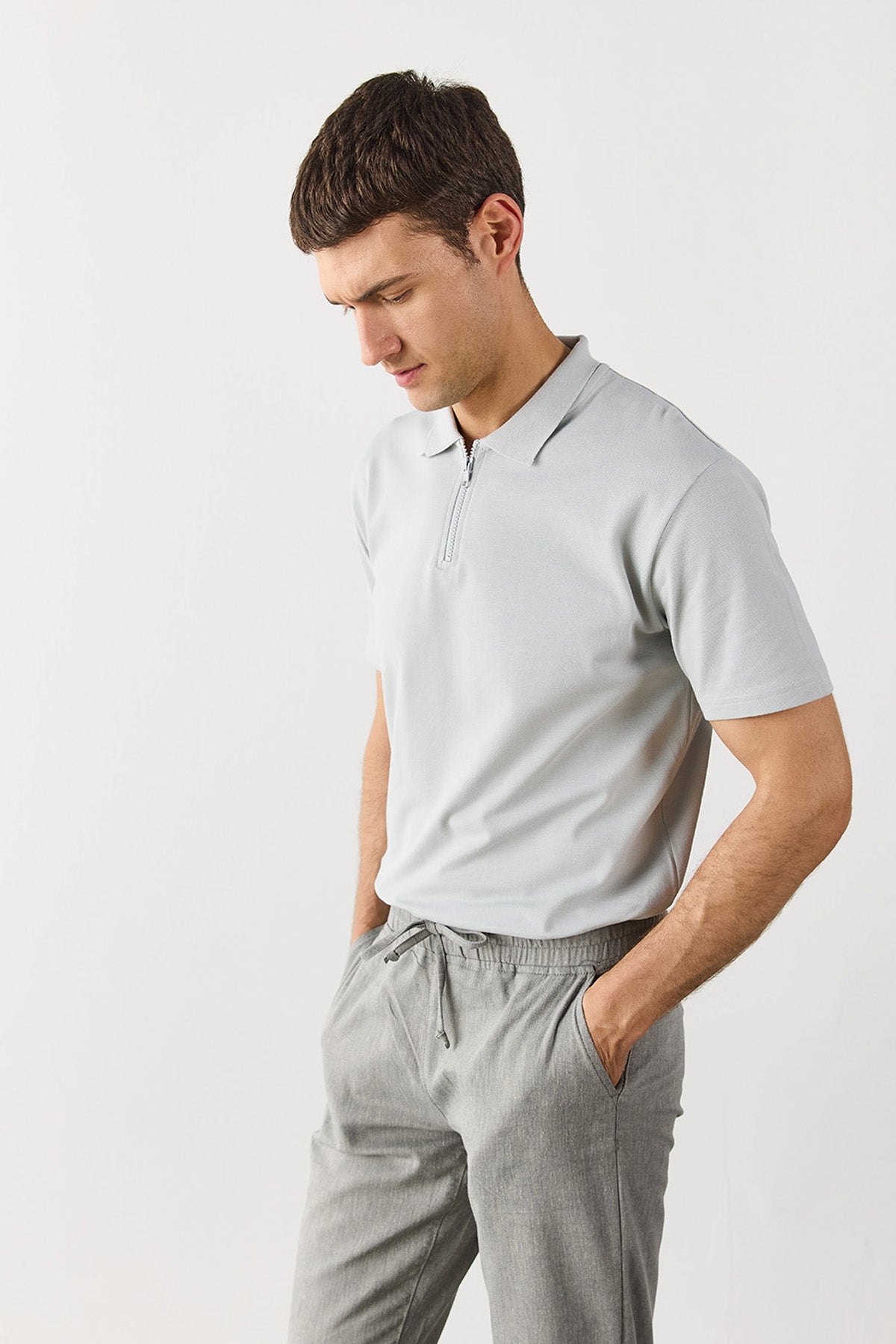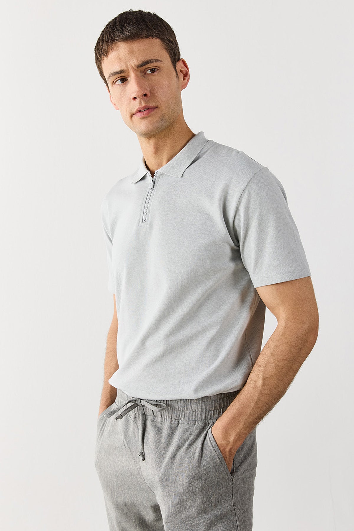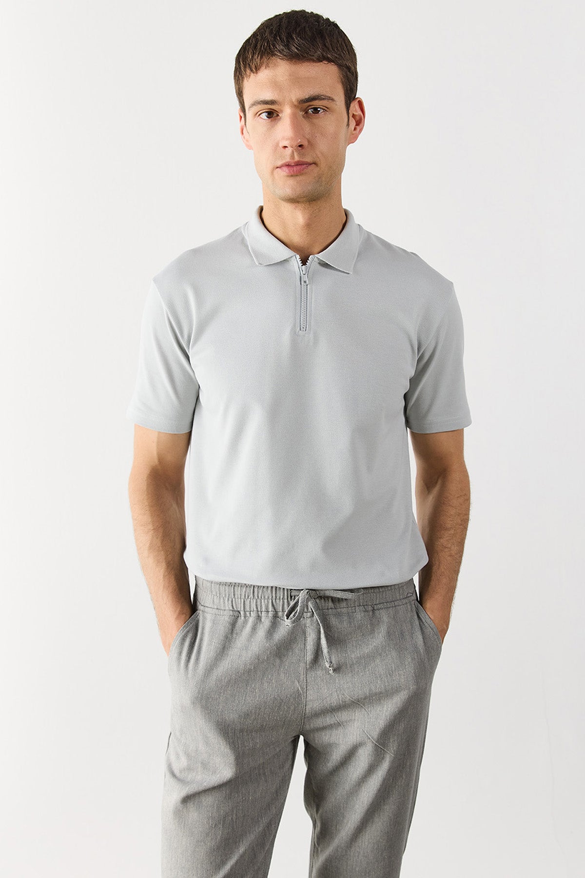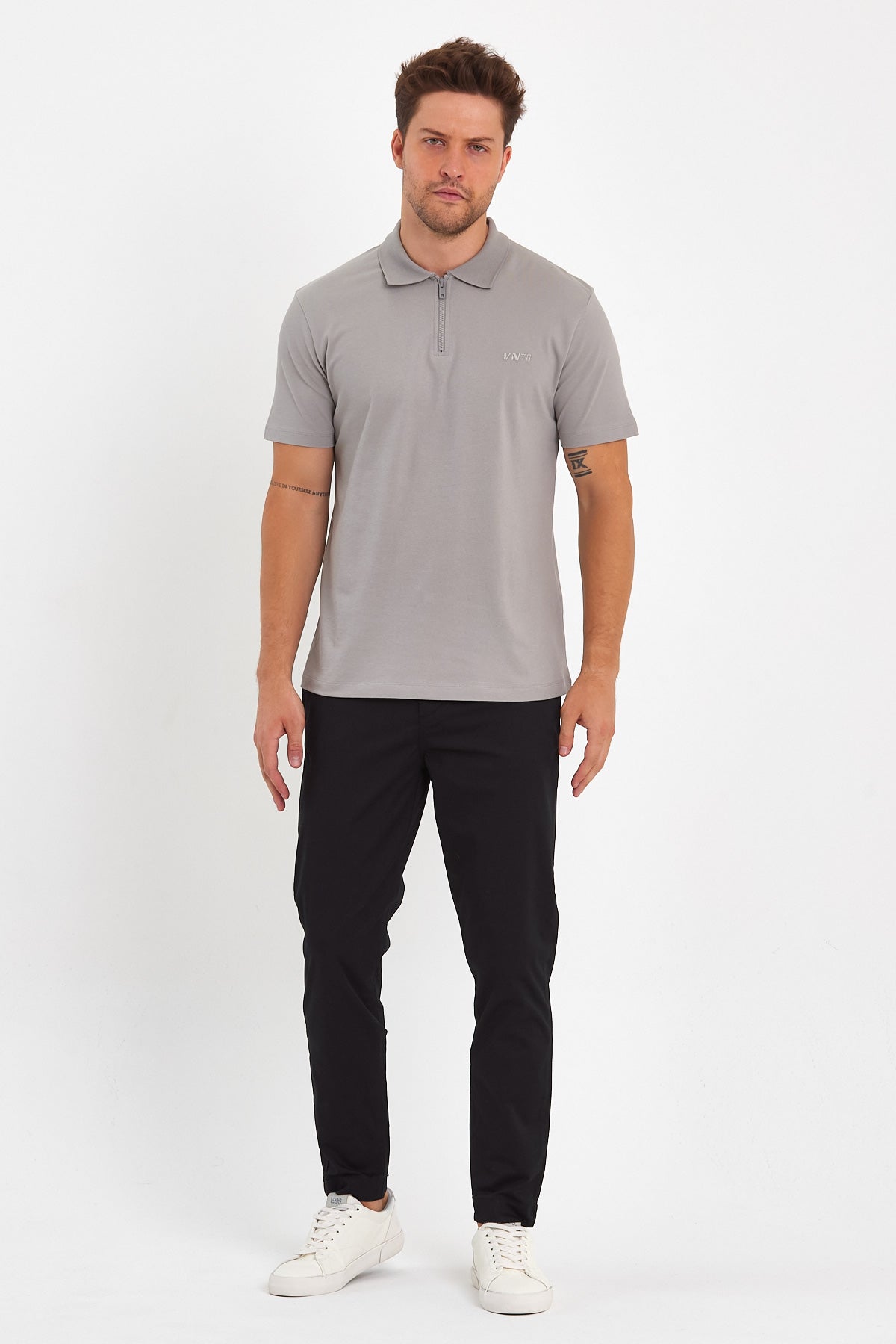 Erkek Nicolas Fermuar Detaylı Polo Yakalı Tişört - Gri
