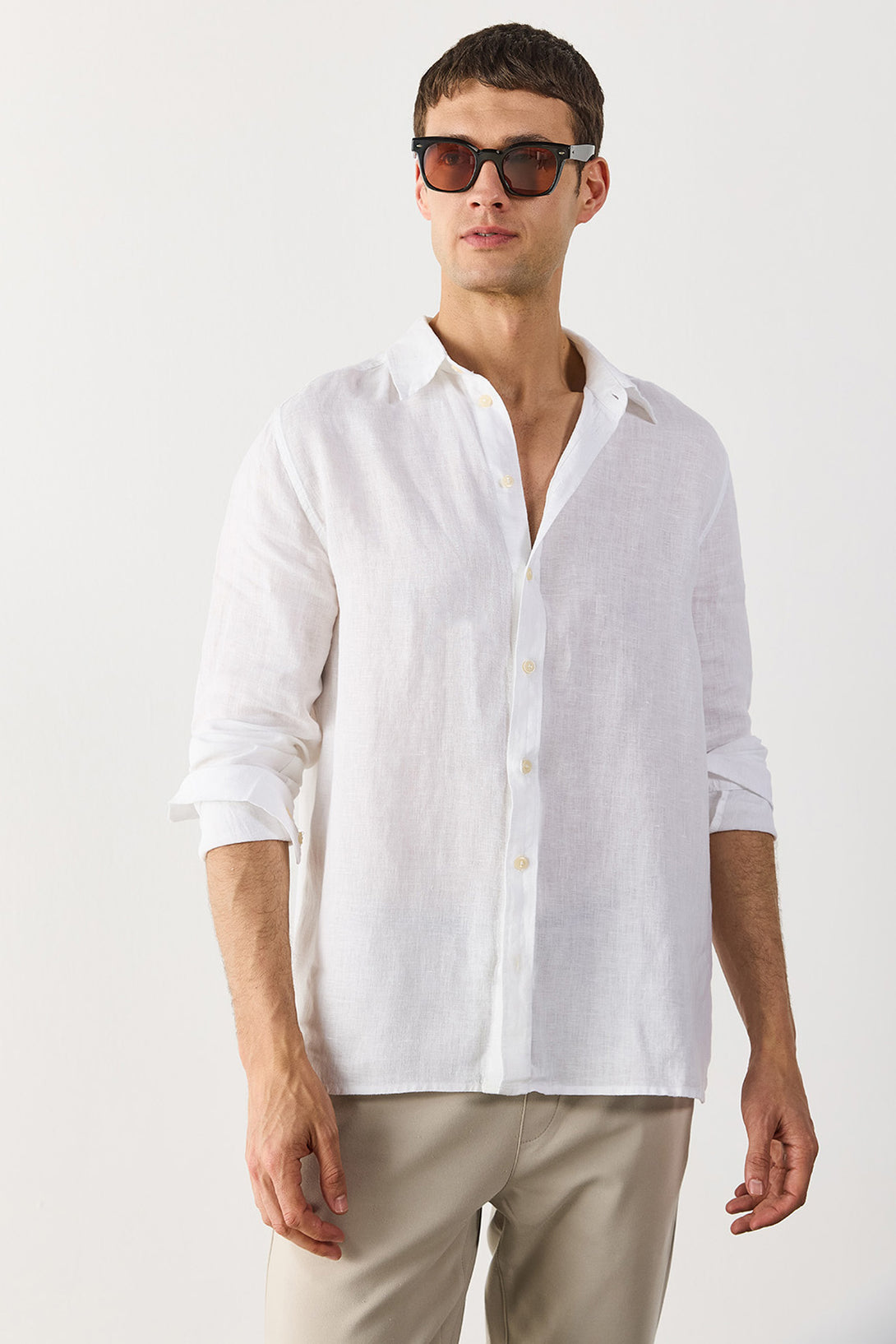 Nicolas Regular Fit Keten Gömlek - BEYAZ