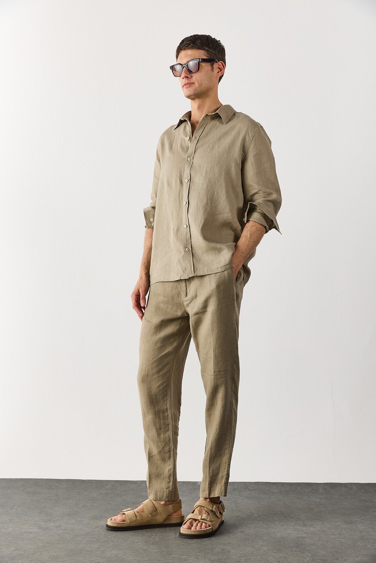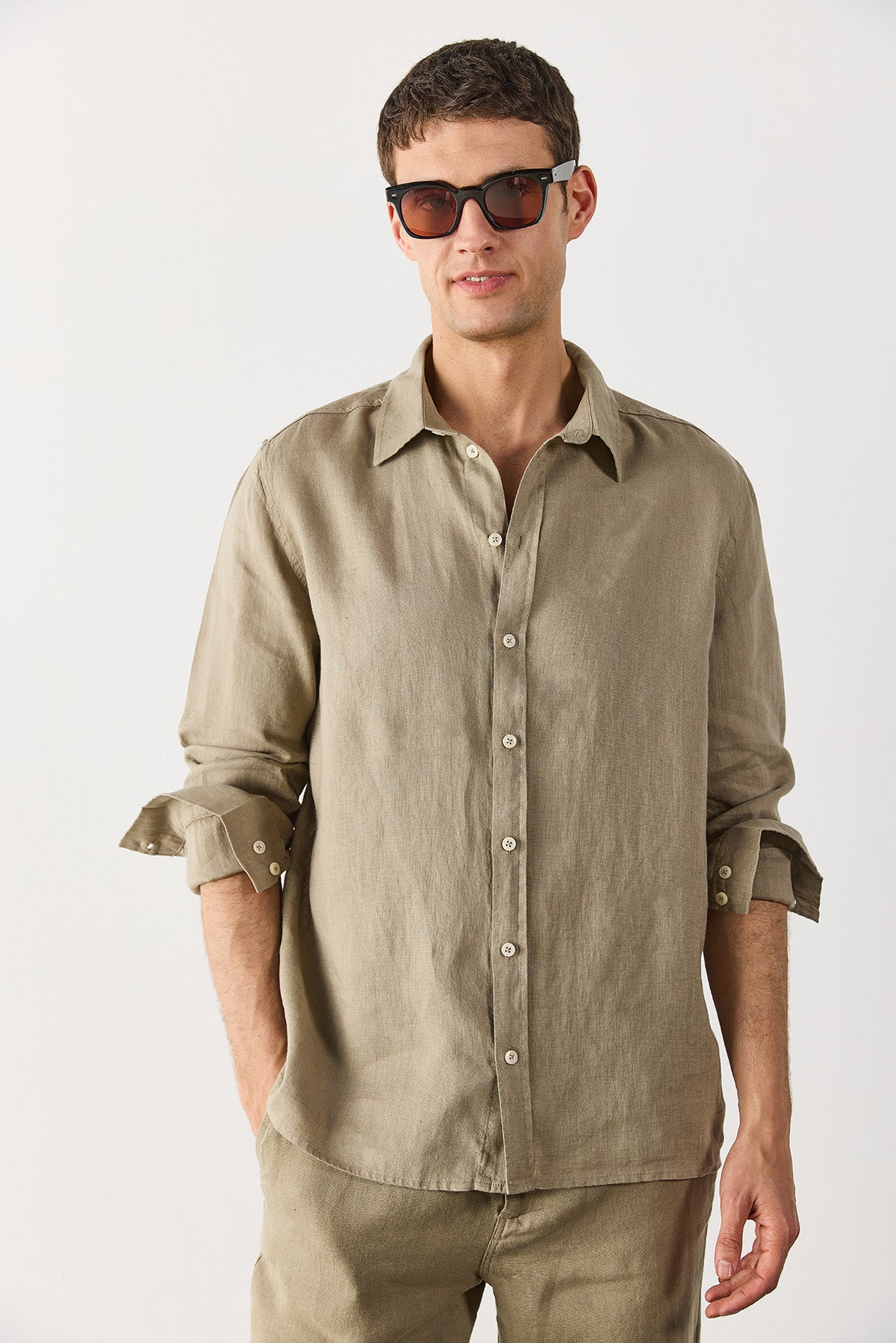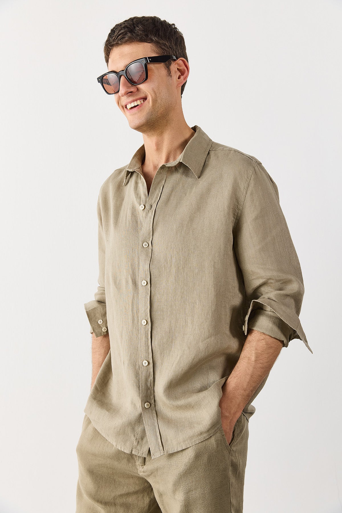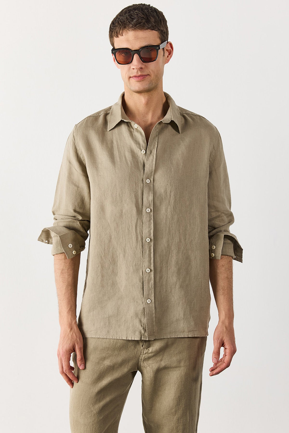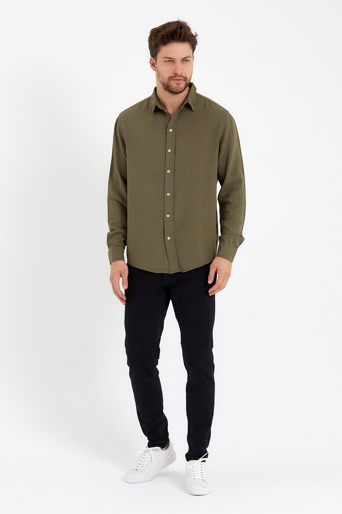 Erkek Nicolas Regular Fit Gömlek %100 Keten - Haki