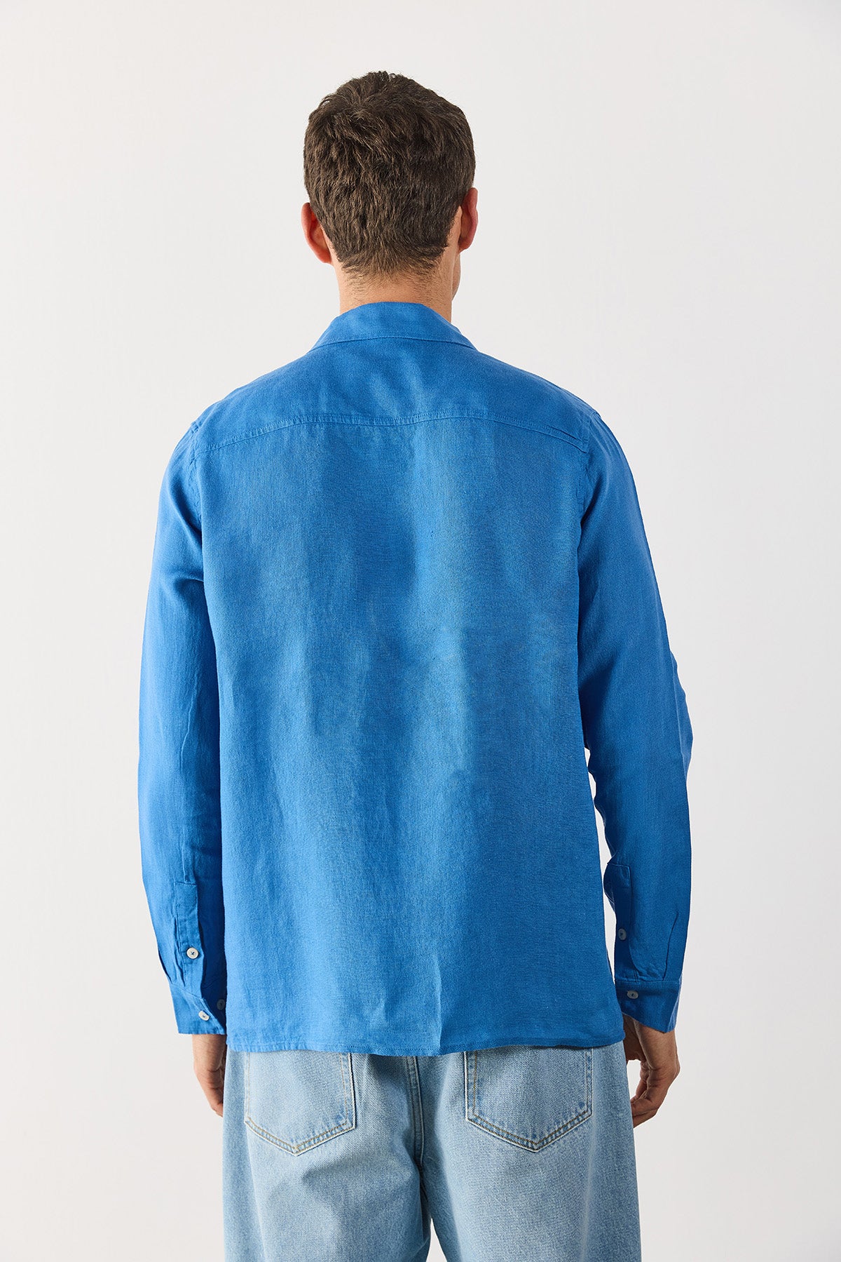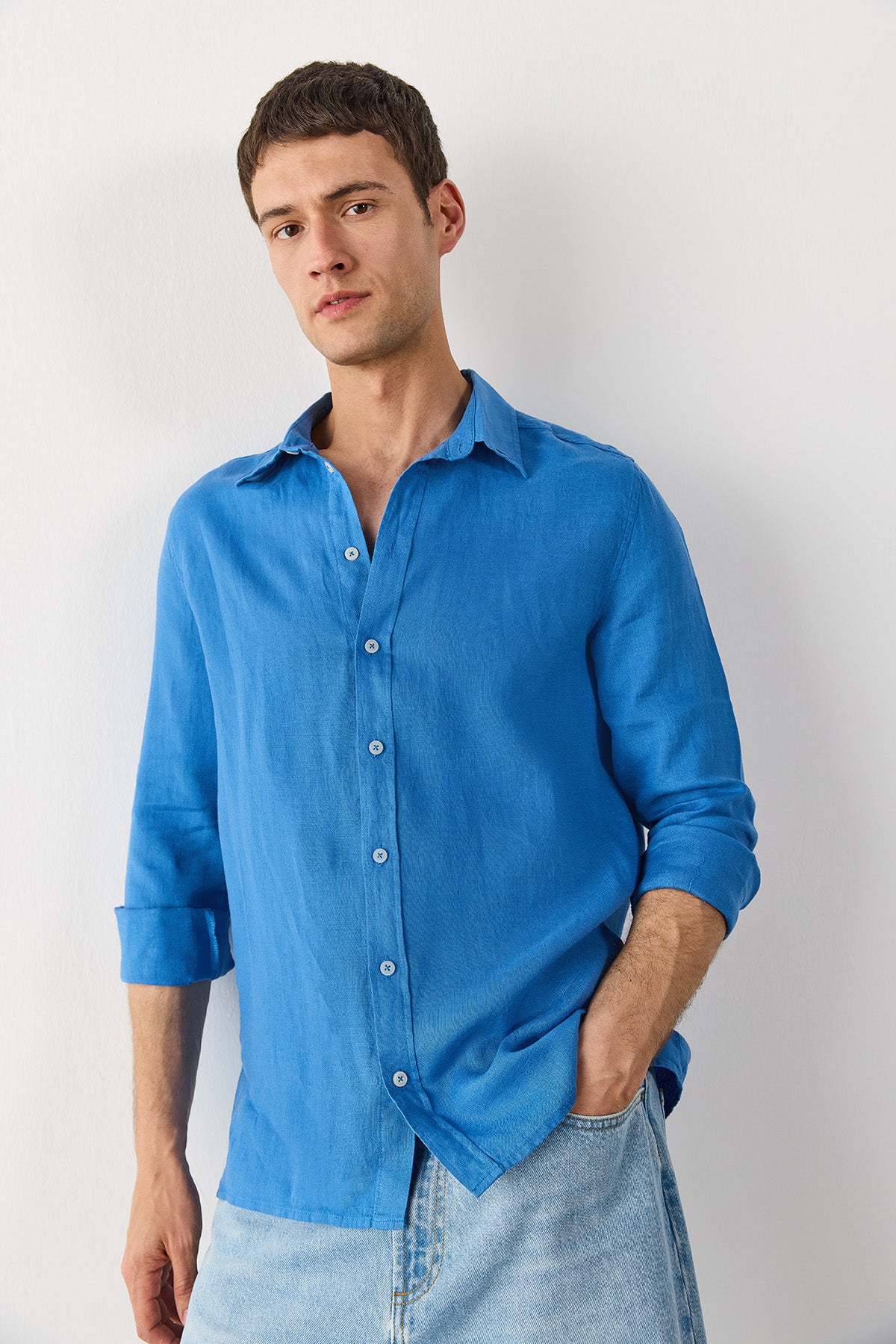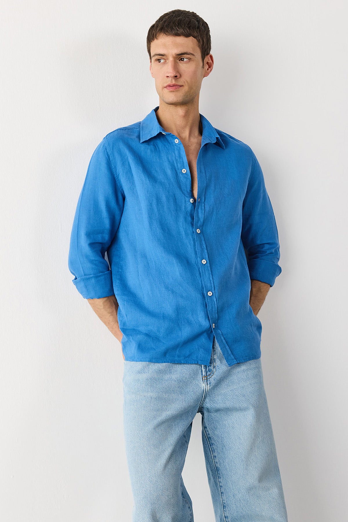 Erkek Nicolas Regular Fit Gömlek %100 Keten - Mavi