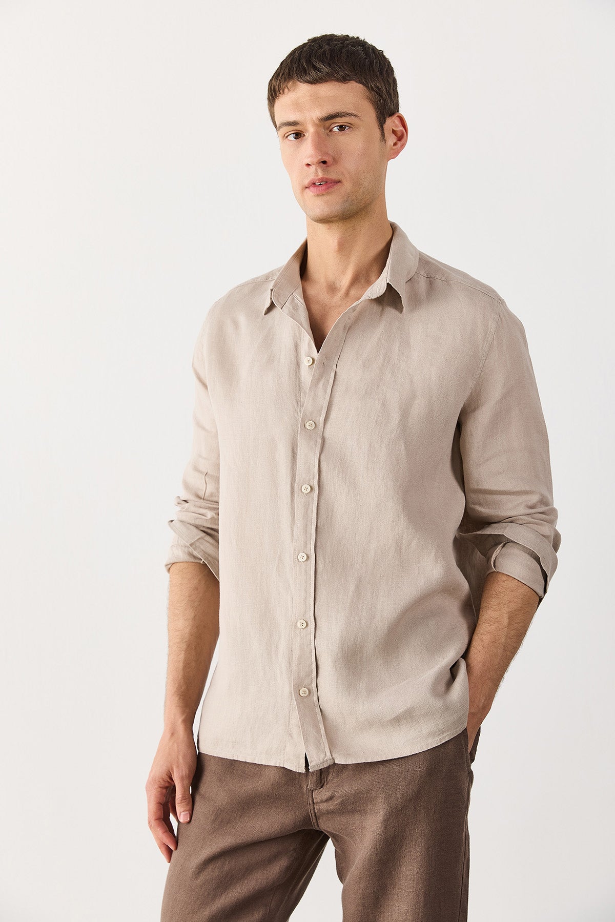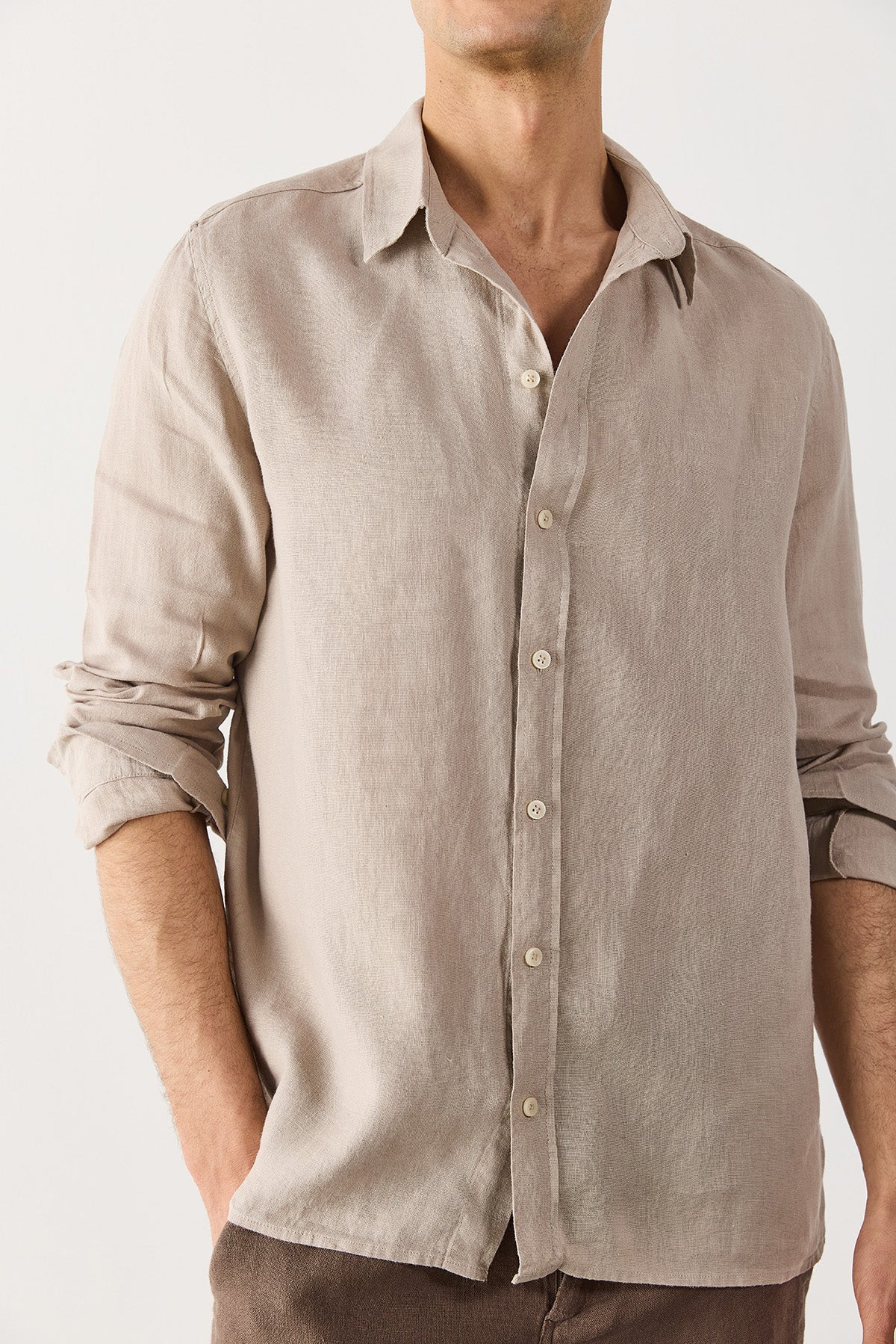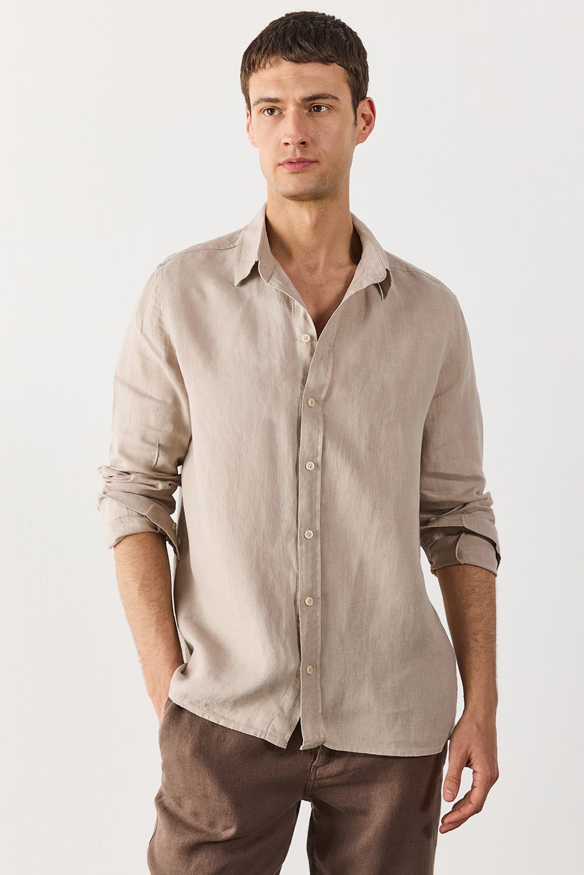 Erkek Nicolas Regular Fit Gömlek %100 Keten - Naturel