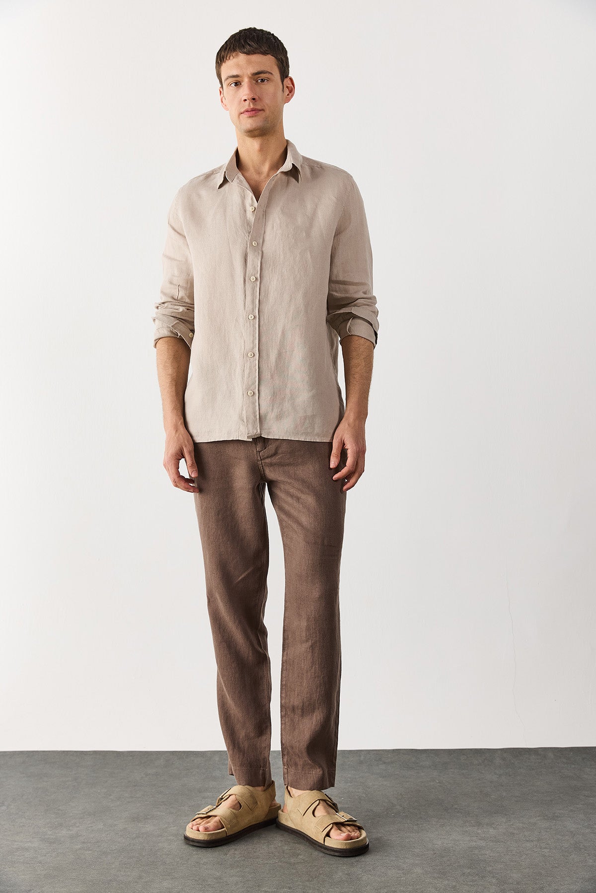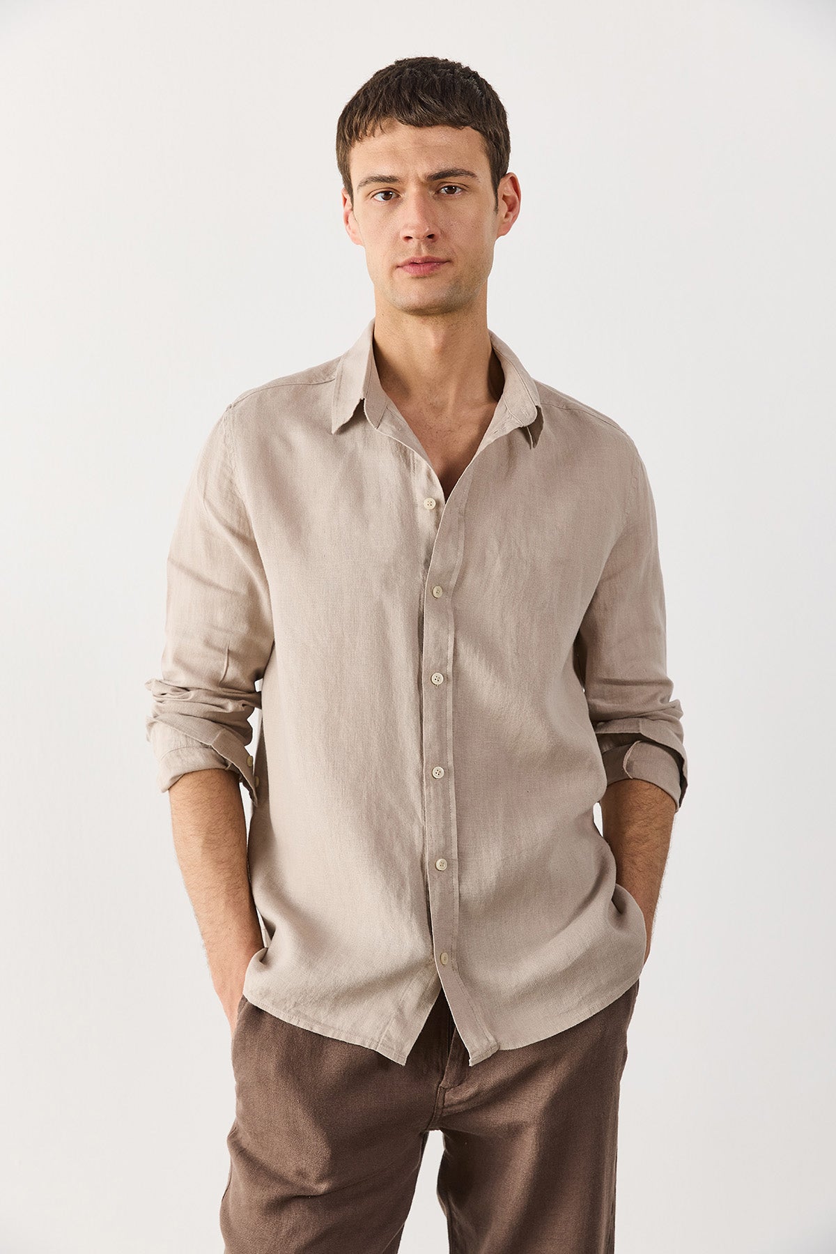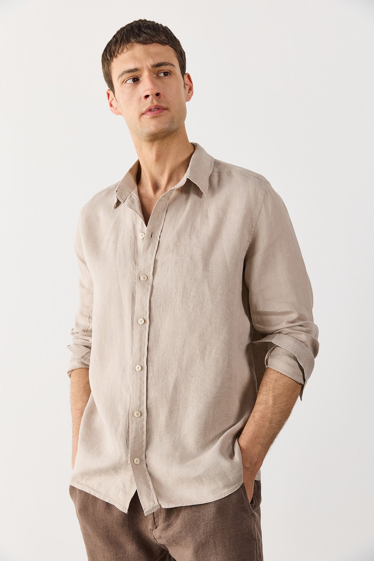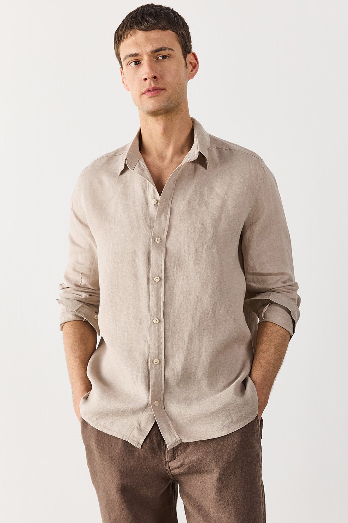 Erkek Nicolas Regular Fit Gömlek %100 Keten - Naturel