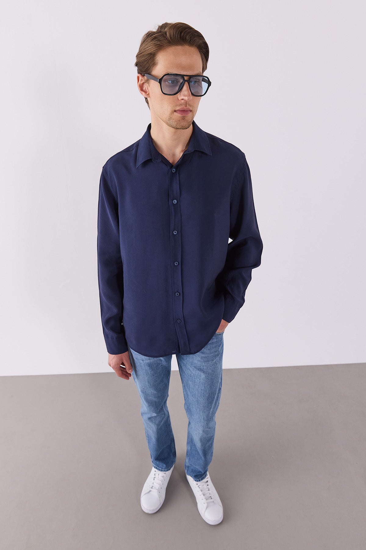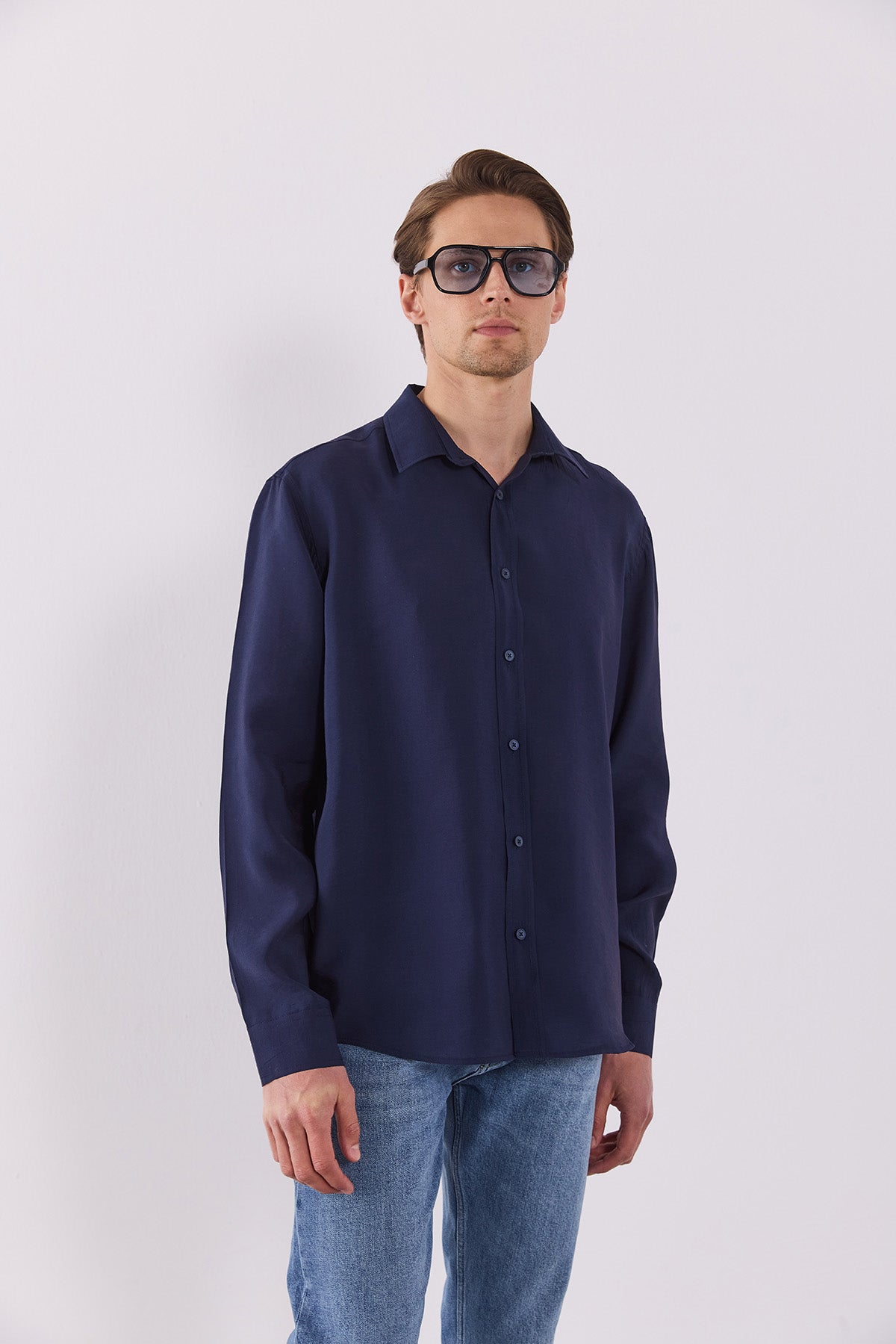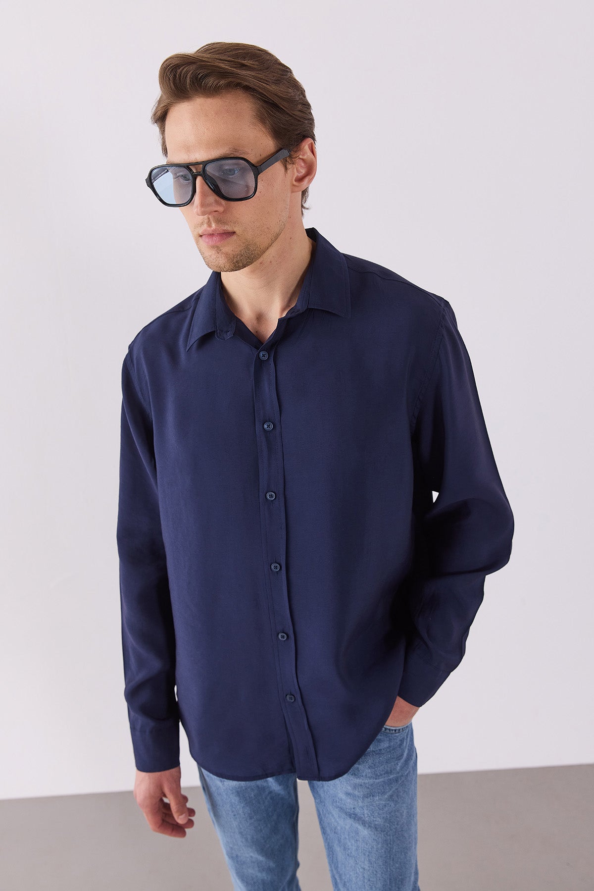 Erkek Nicolas Yumuşak Dokulu Regular Fit Gömlek (CUPRO) - Lacivert
