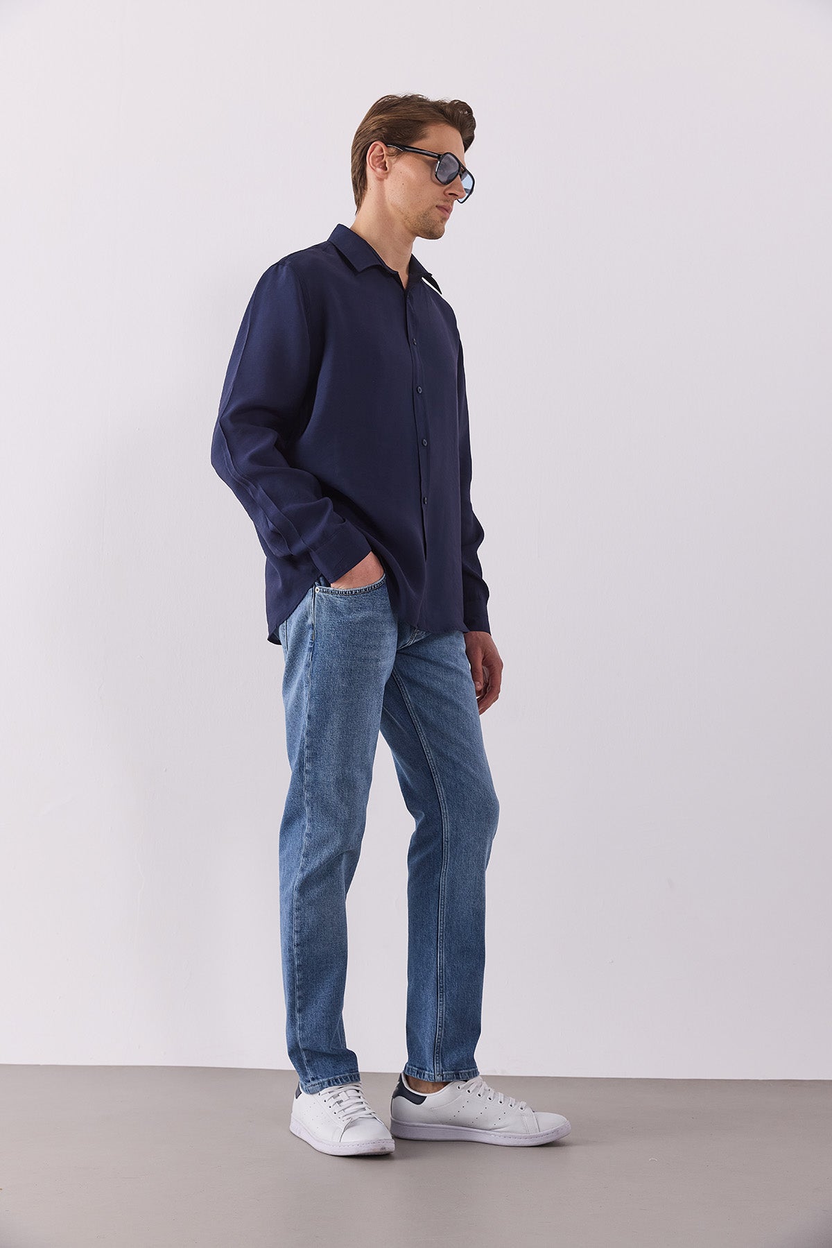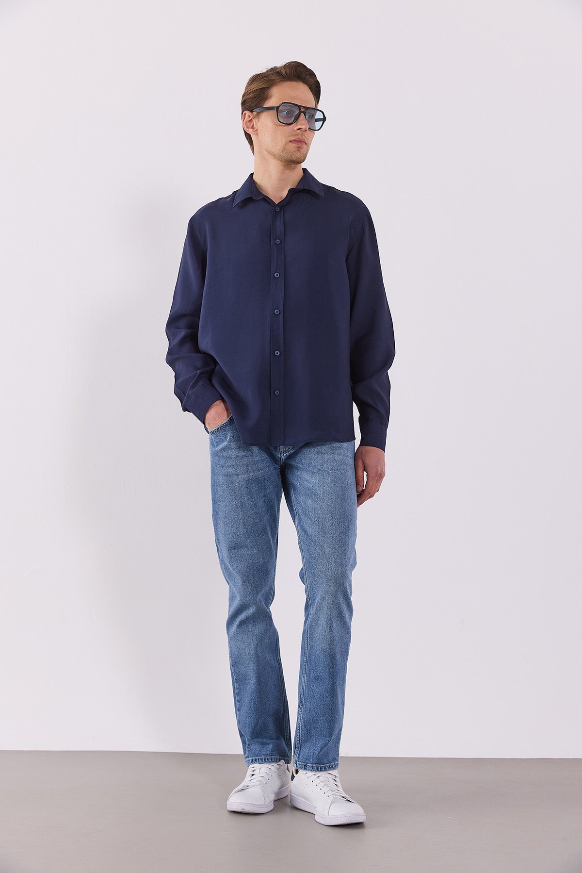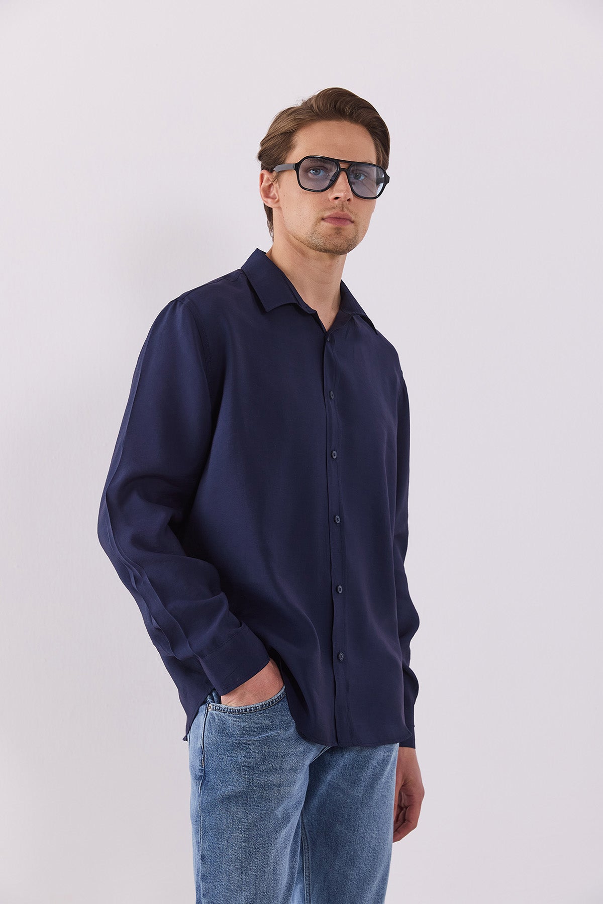 Erkek Nicolas Yumuşak Dokulu Regular Fit Gömlek (CUPRO) - Lacivert