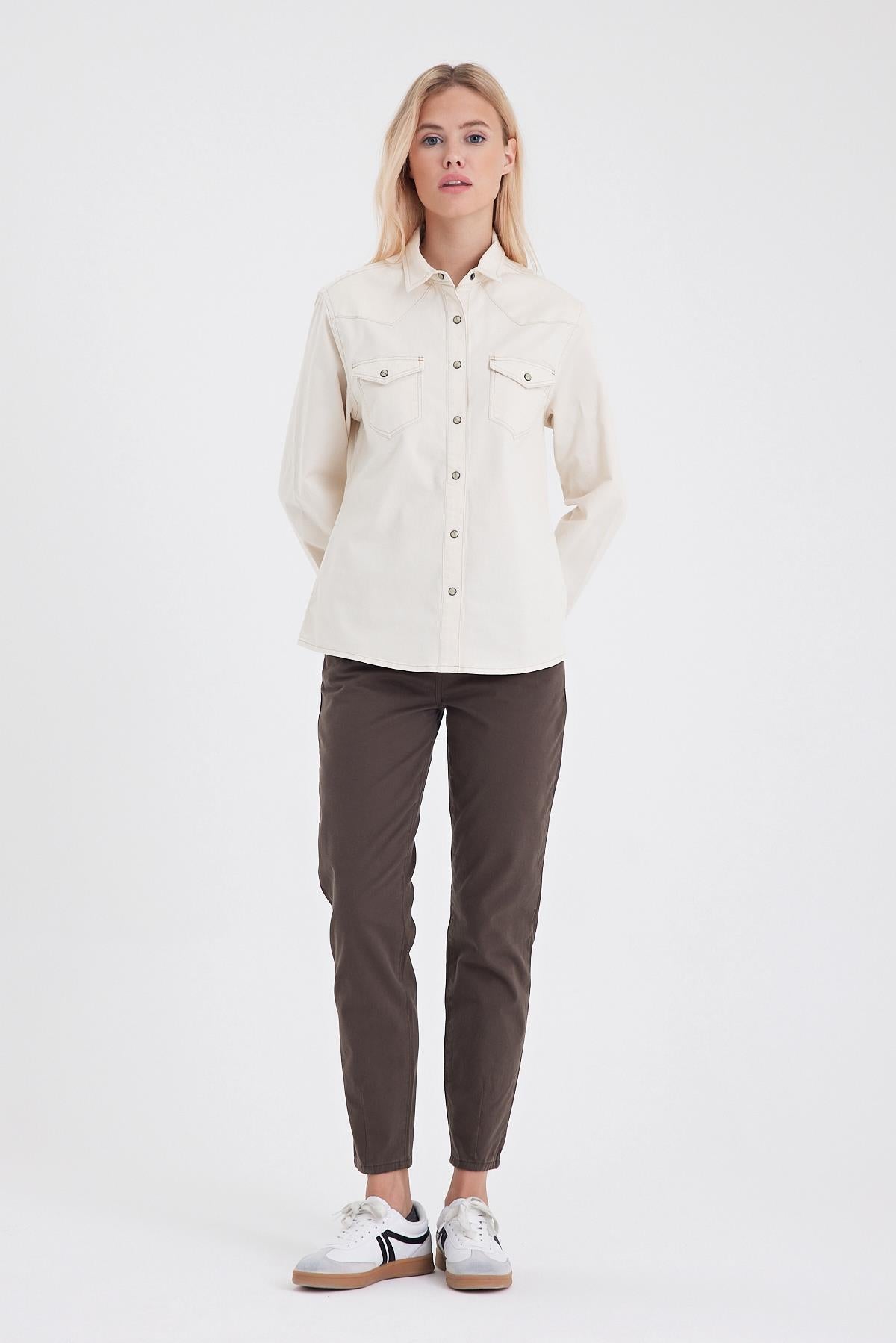 Kadın Norah Beli Lastikli Gabardin Pantolon - Ağaç Kabuğu