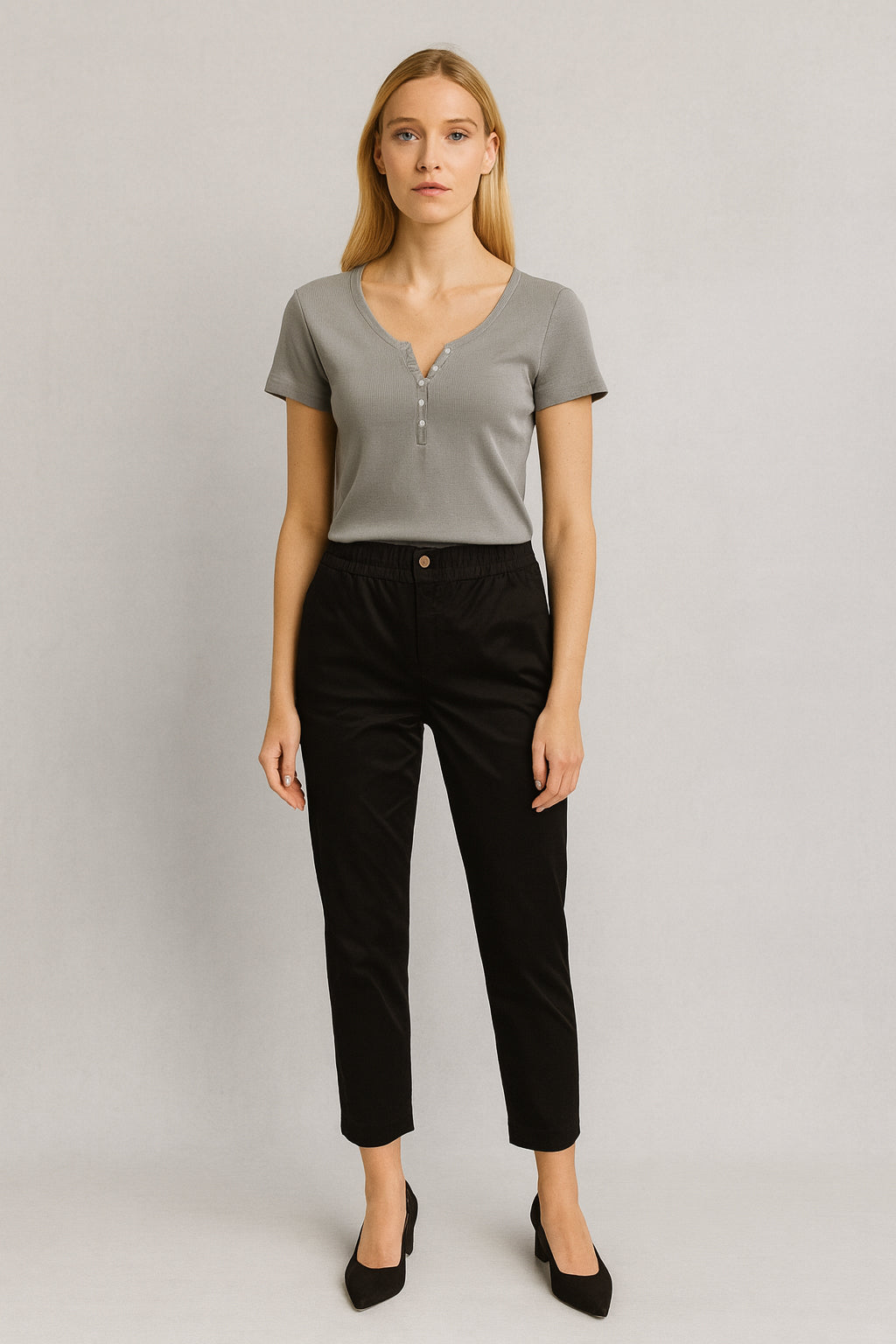Günlük şıklığını rahatlıkla yakalayacağın Norah pantolon, gabardin kumaşıyla dayanıklı ve konforlu. Beli lastikli tasarımı sayesinde kolayca giyilir, elastan dokusu ise hareket özgürlüğü sağlar. Hem ofiste hem günlük hayatta rahatlıkla tercih edebileceğin şık bir parça!
