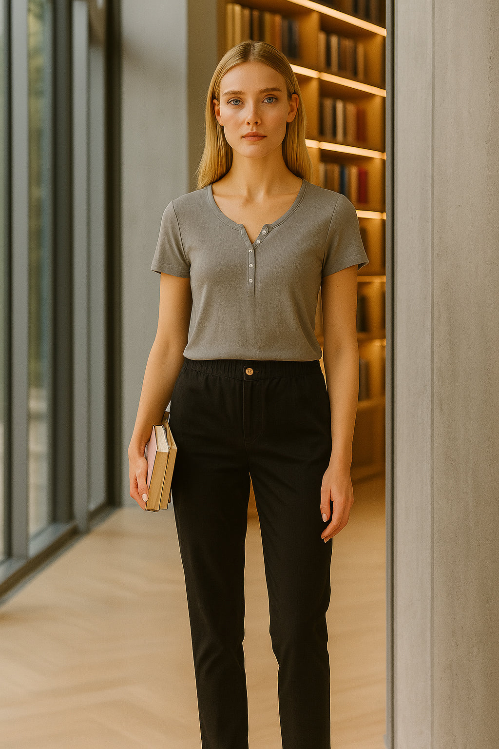 Moda trendlerini takip eder ama bireysel stile değer verir.