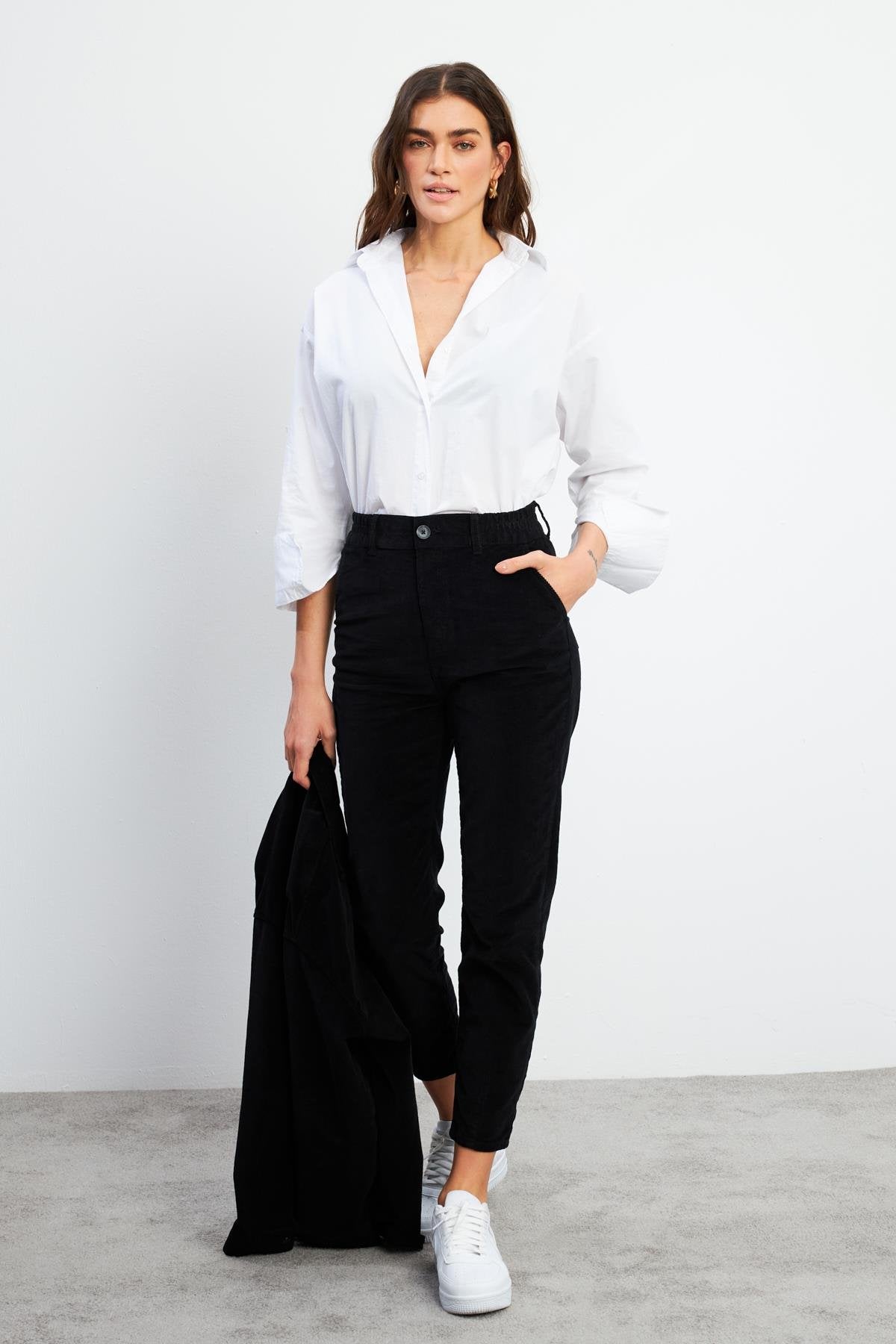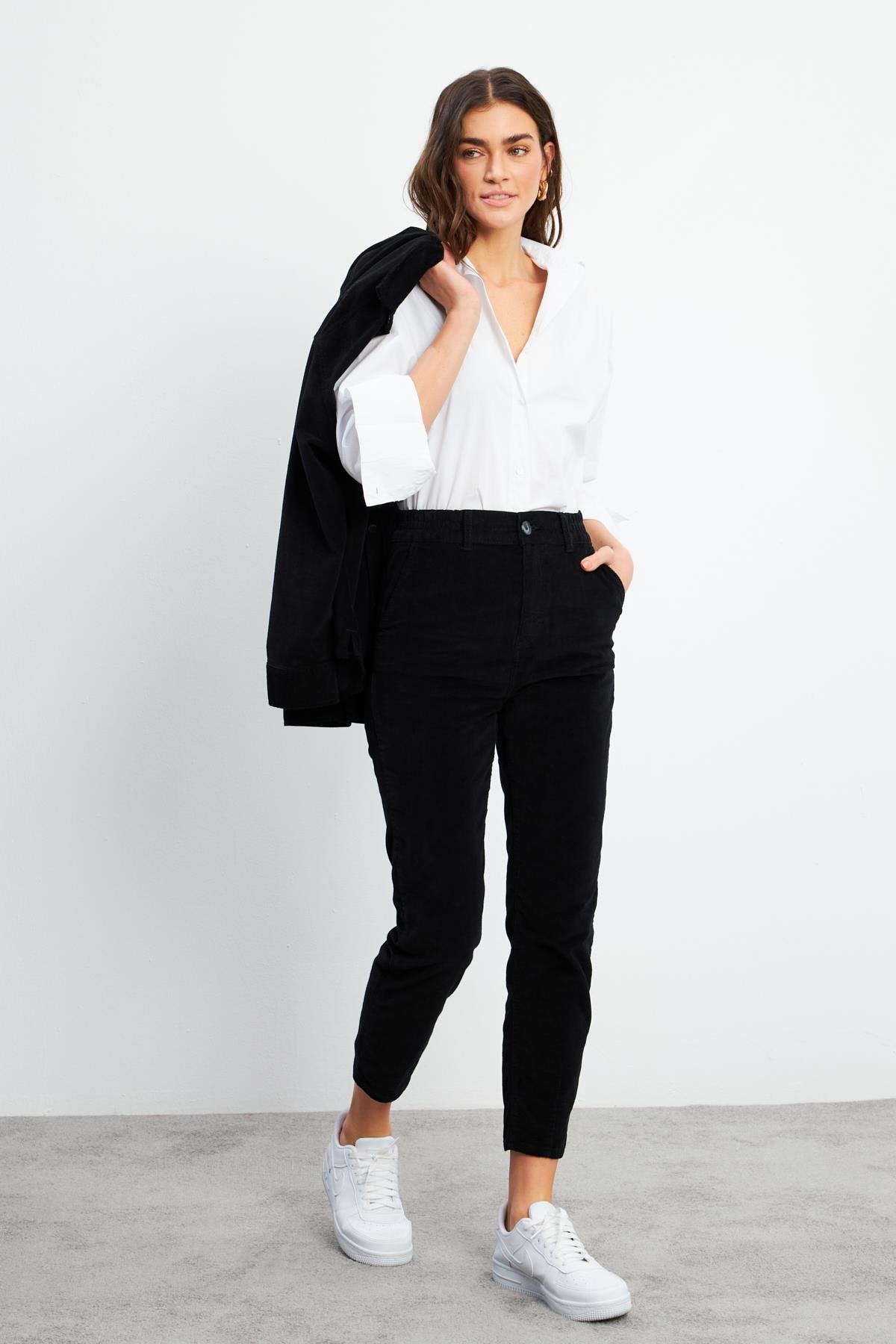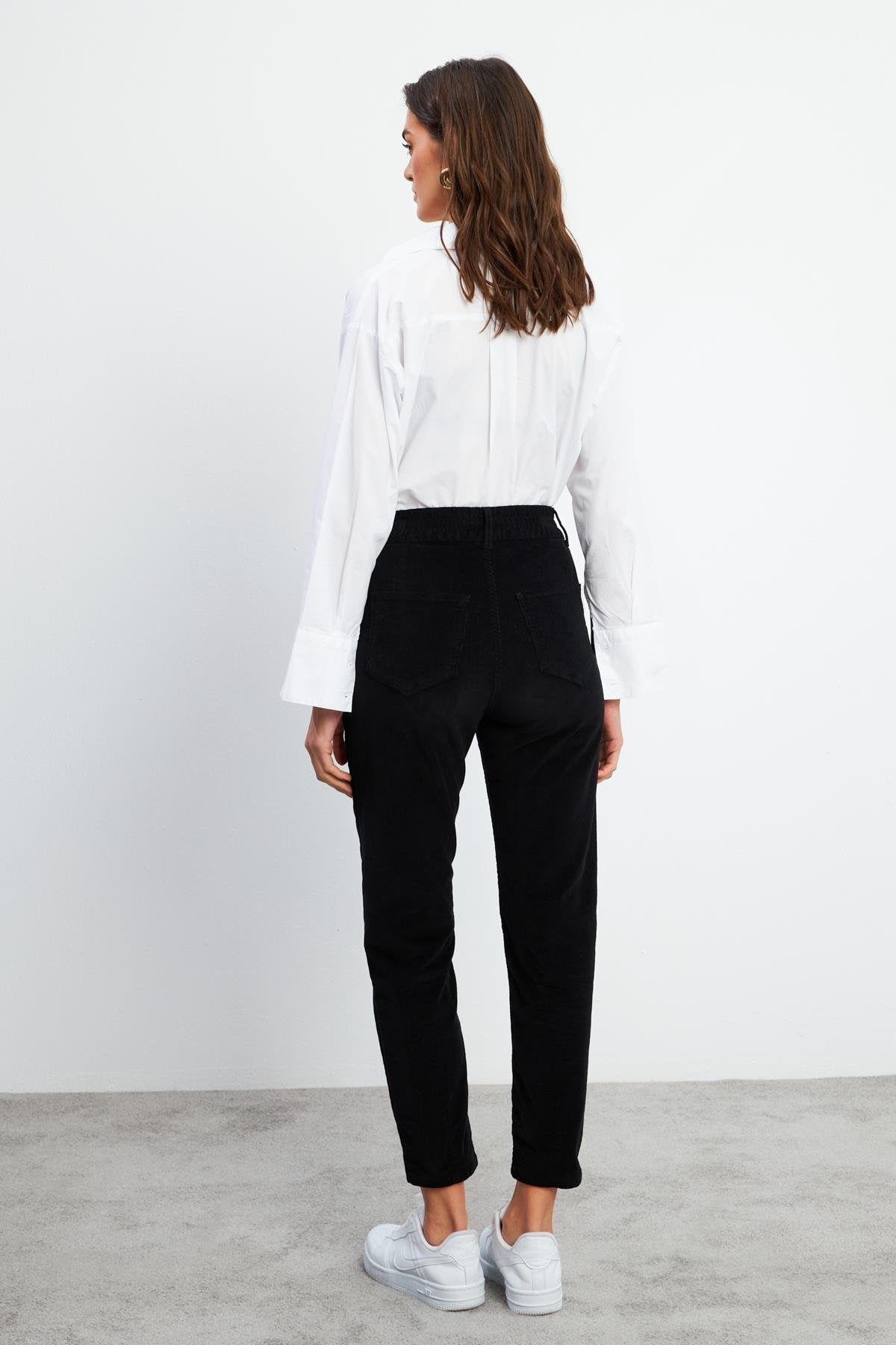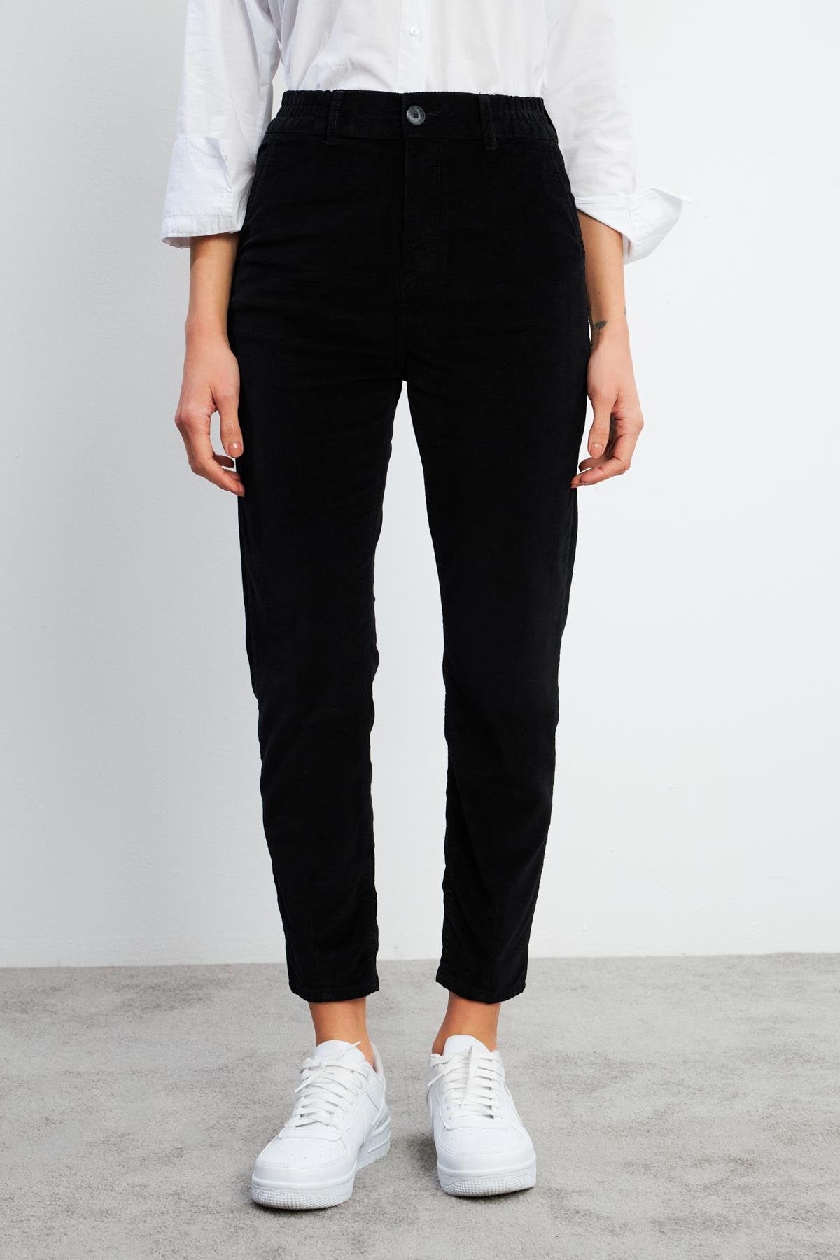 Kadın Norah Beli Lastikli Kadife Pantolon - Siyah