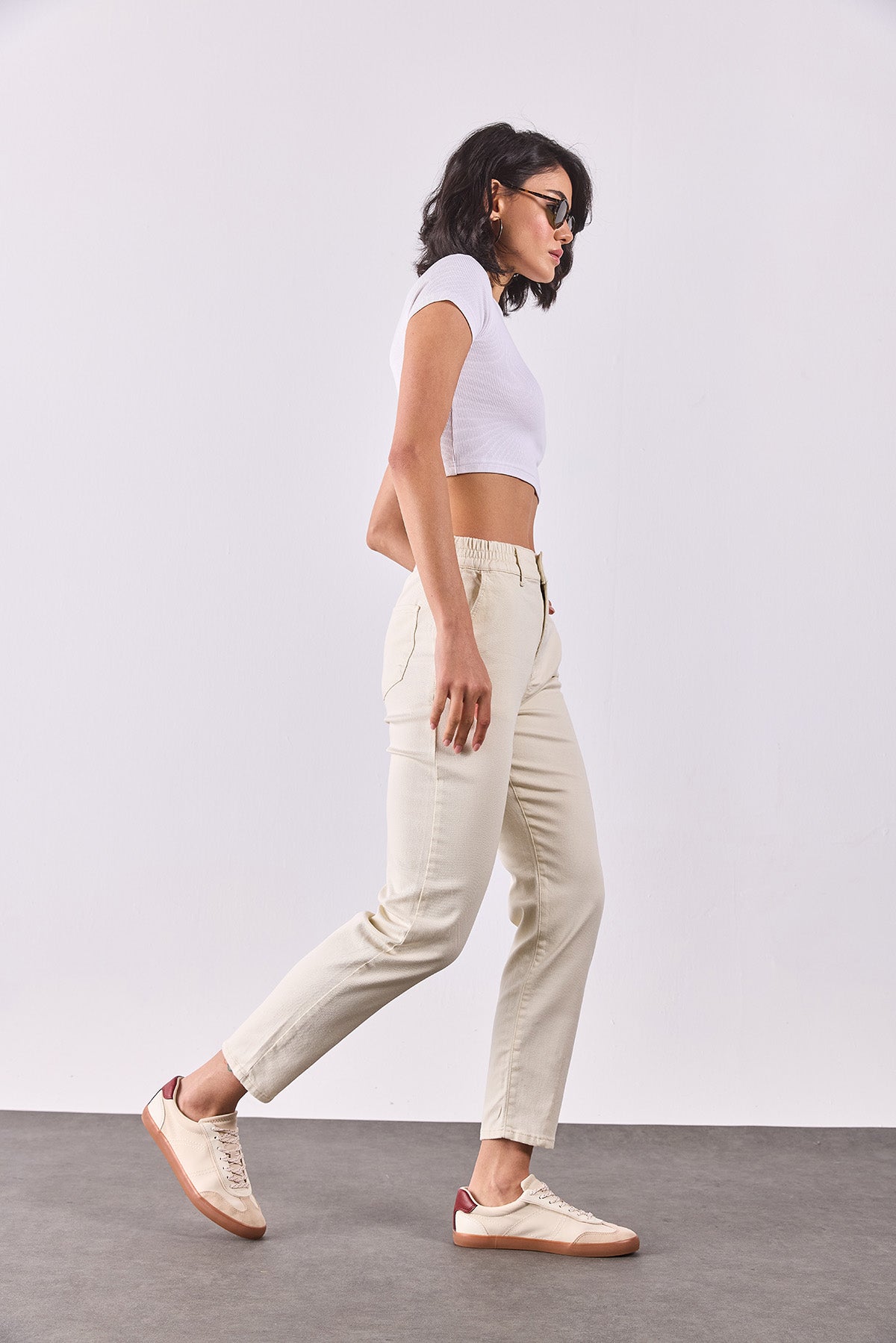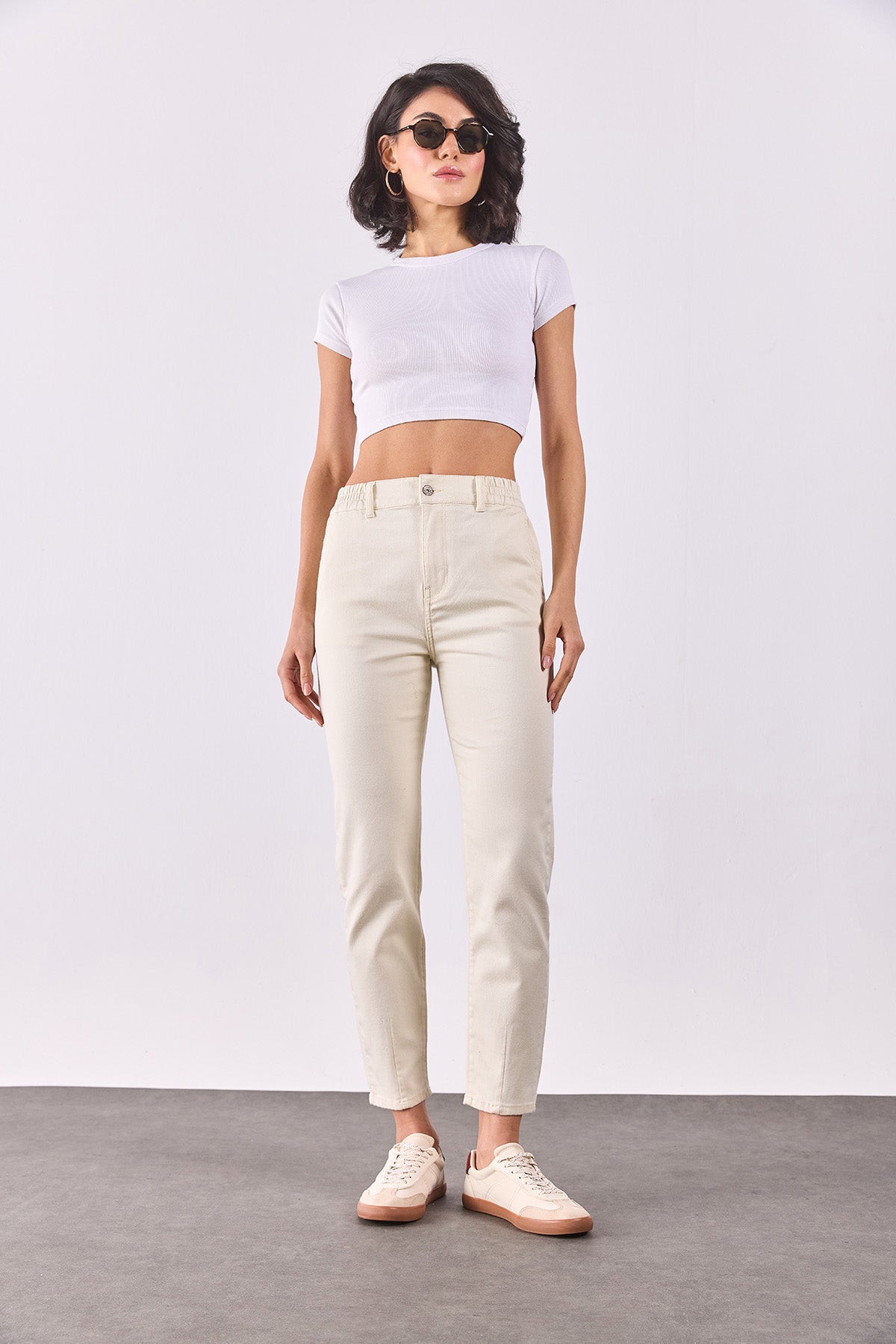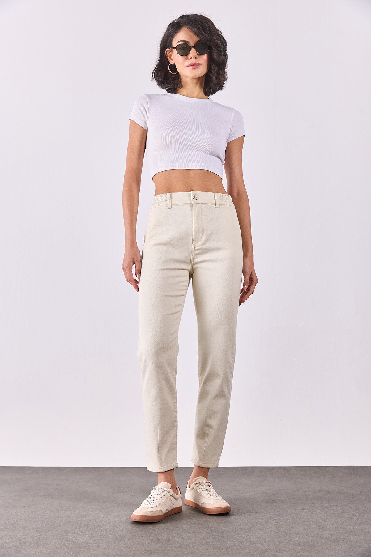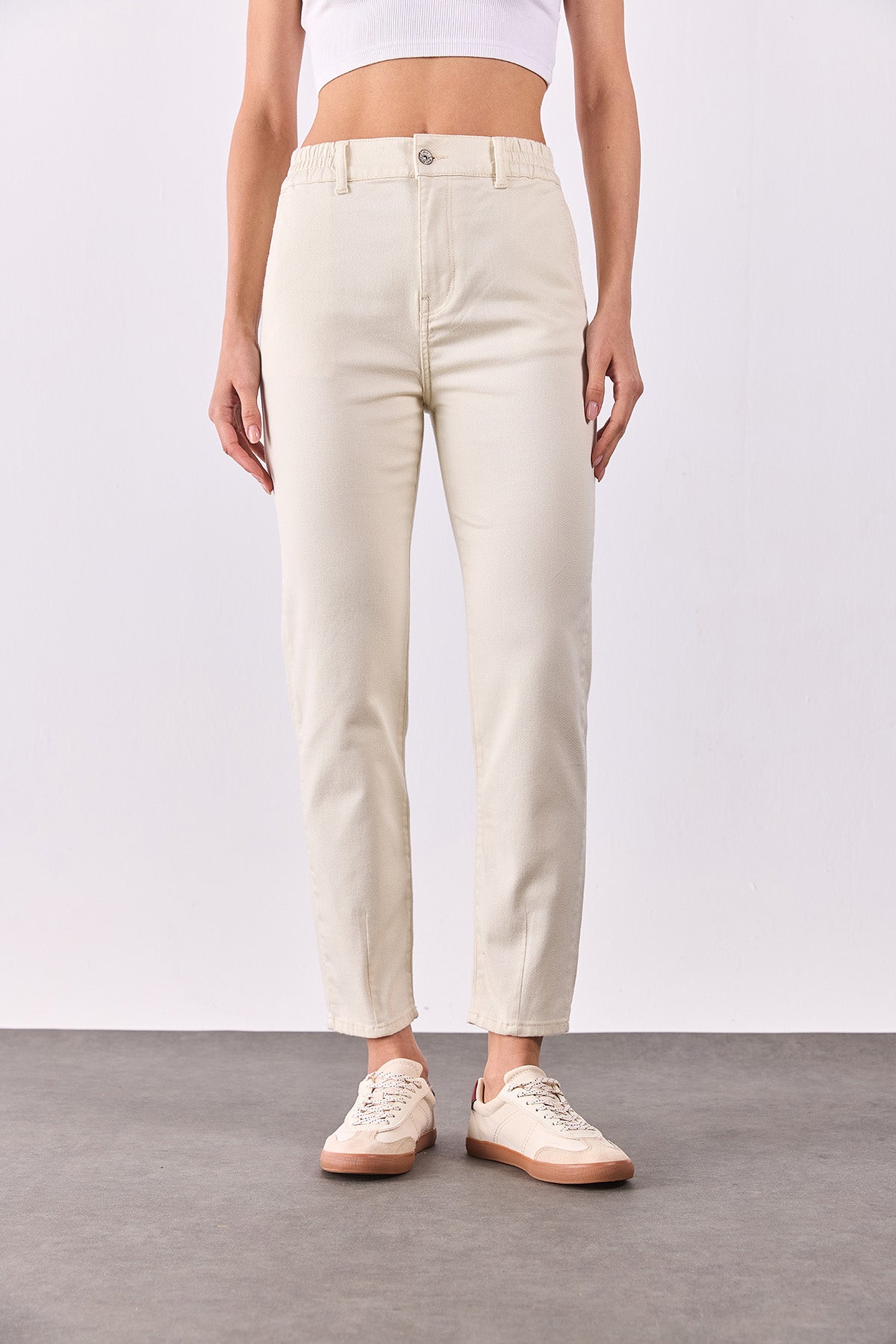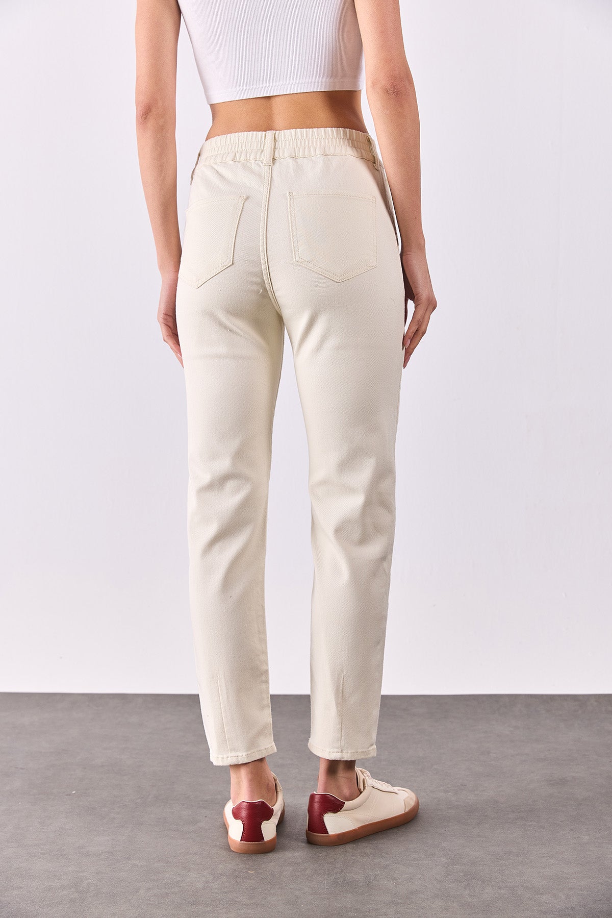 Kadın Norah Beli Lastikli Renkli Jean Pantolon - Kemik
