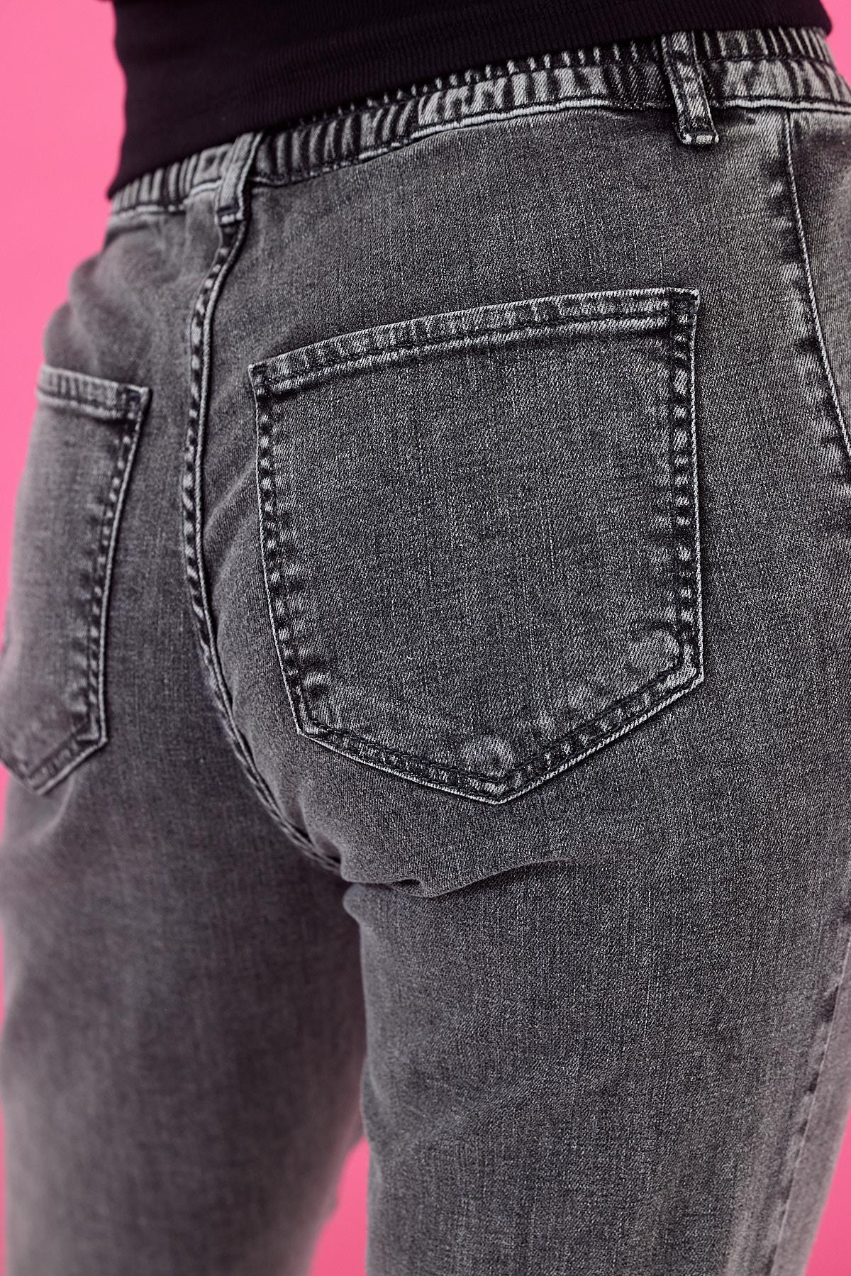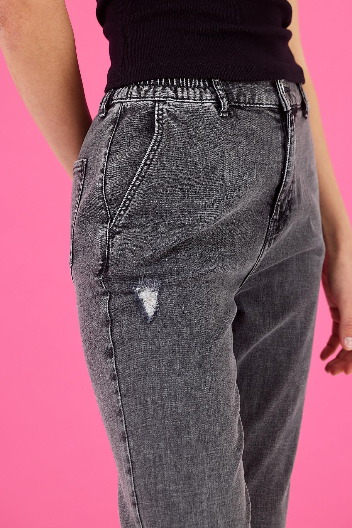 Kadın Norah Black Beli Lastikli Yırtıklı Jean Pantolon - Black