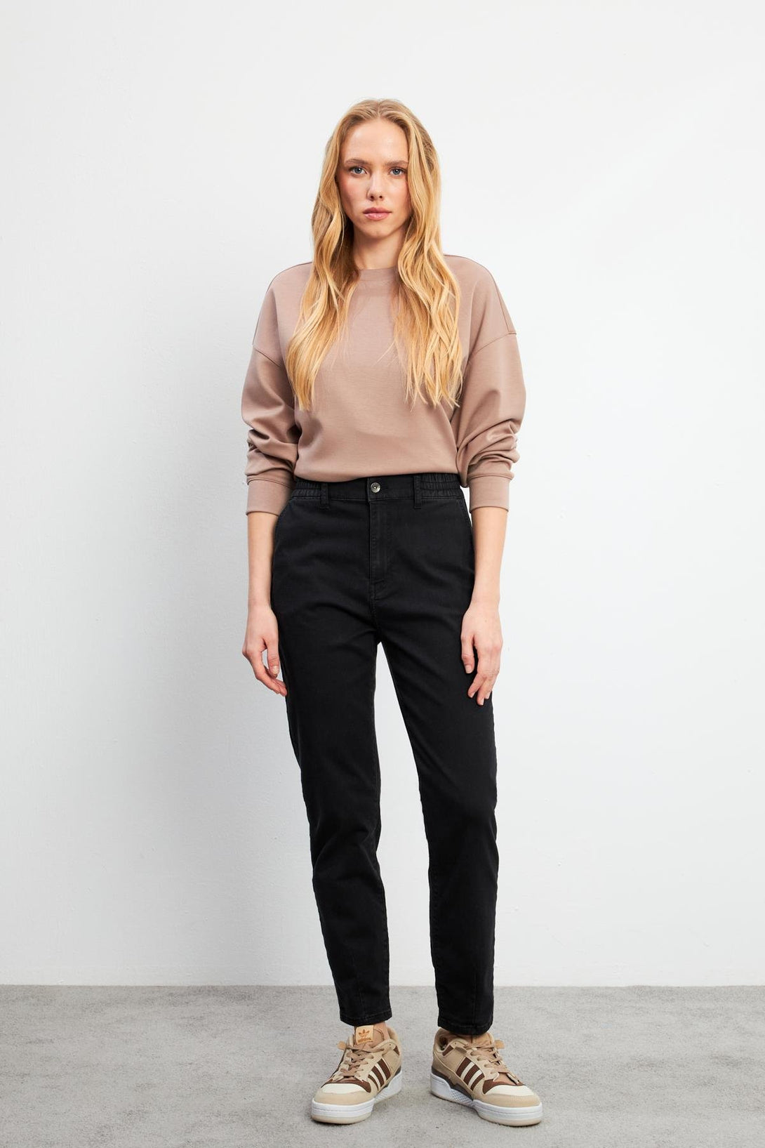 Kadın Norah Carbon Black Beli Lastikli Jean Pantolon - Carbon Black