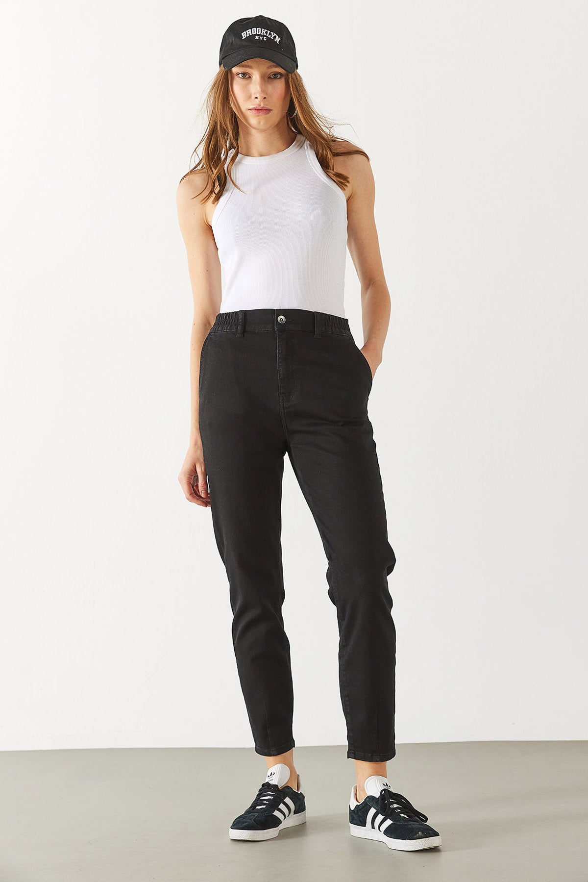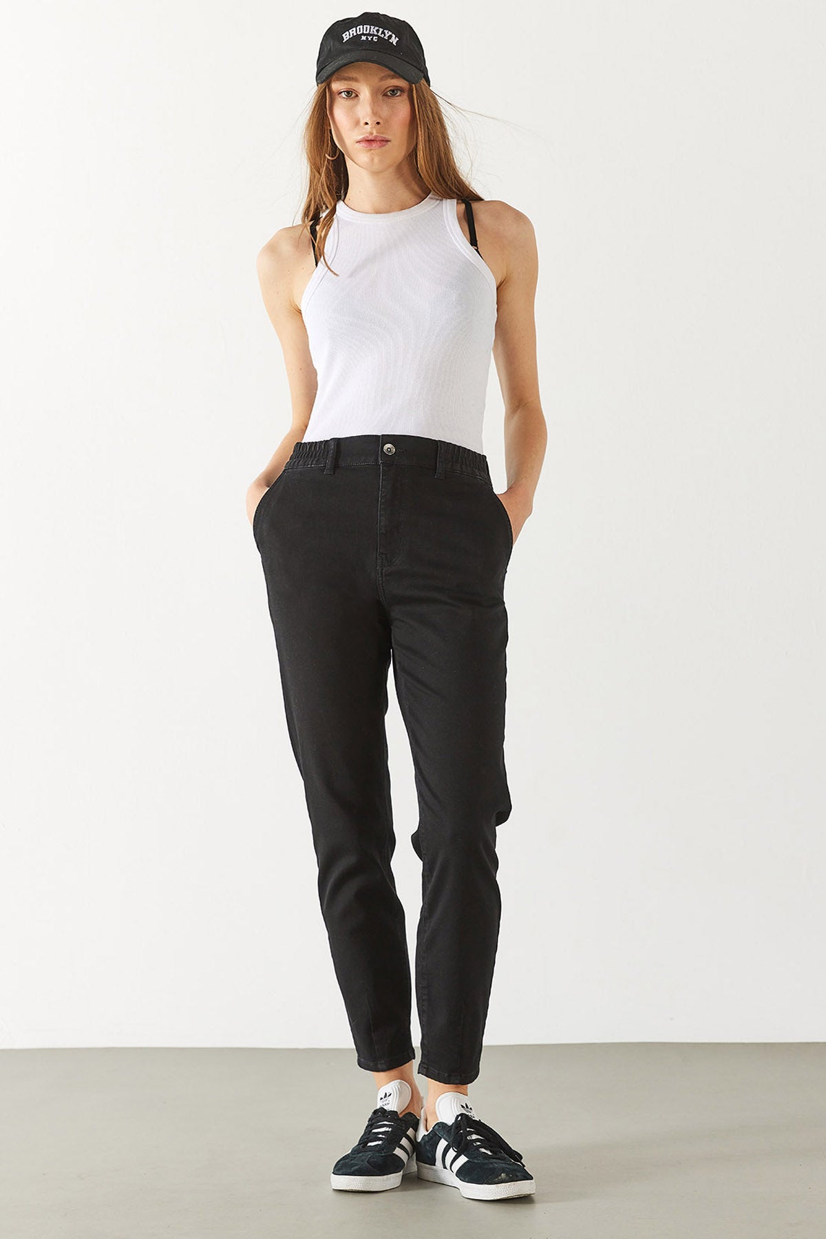 Kadın Norah Carbon Black Beli Lastikli Jean Pantolon - Carbon Black